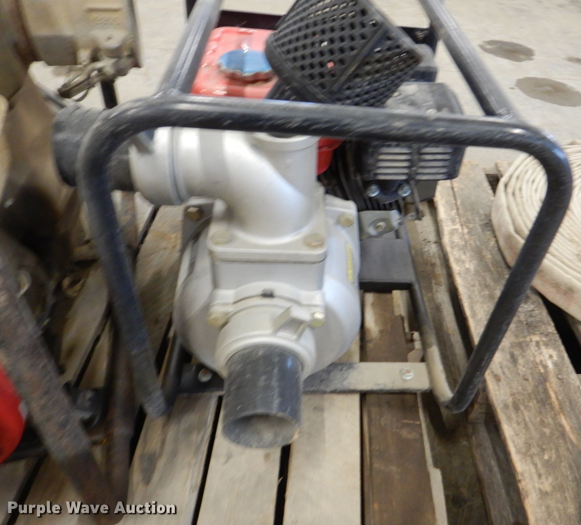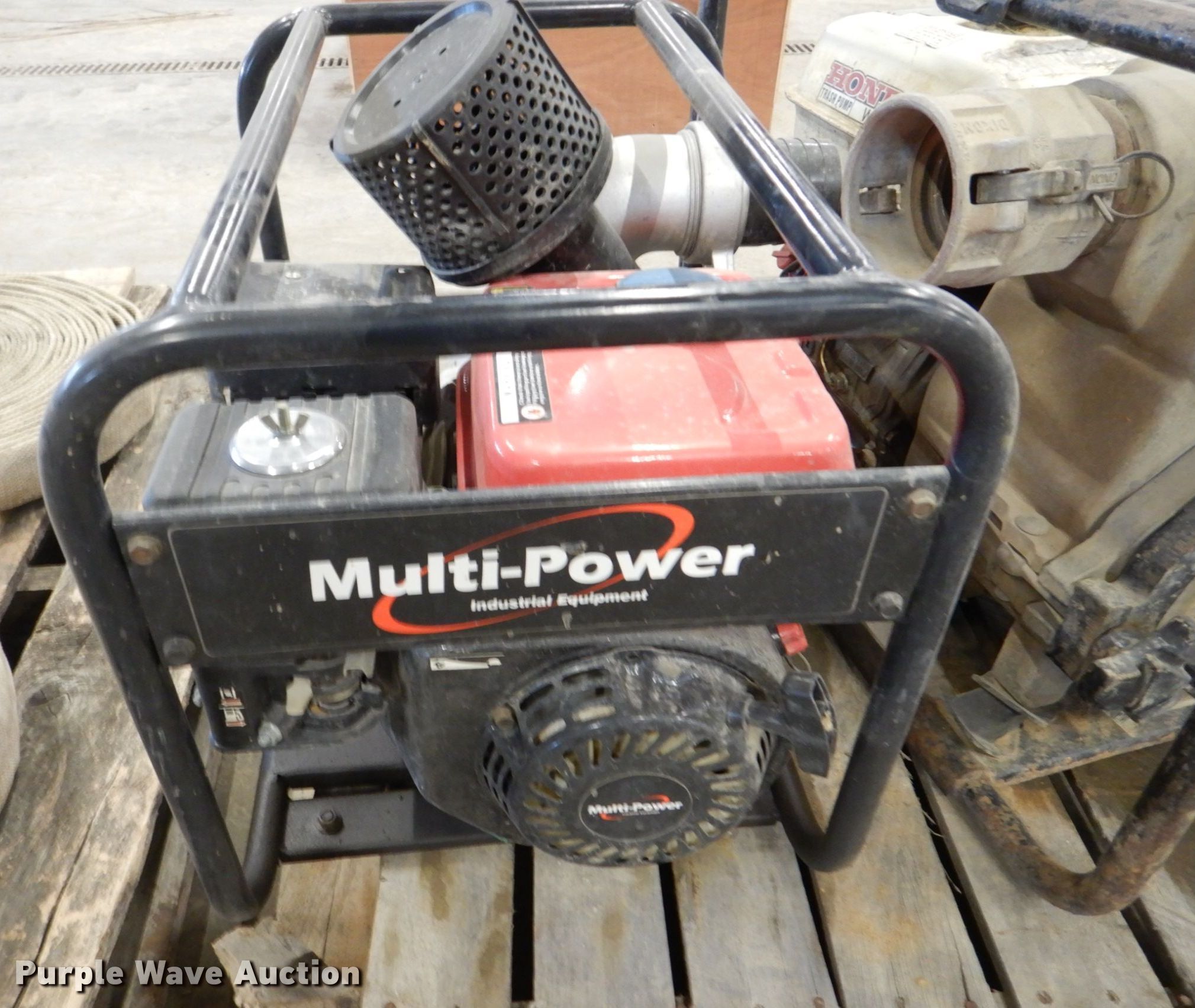 Purple Wave is selling a used Pump in Iowa. This item is a (2) trash pumps with the following: Multi-Power WH30CX, Wahoo single cylinder gas engine, Outlet: 3", Honda WT30X, Single cylinder gas engine, Outlet: 3", (12) 2" hoses