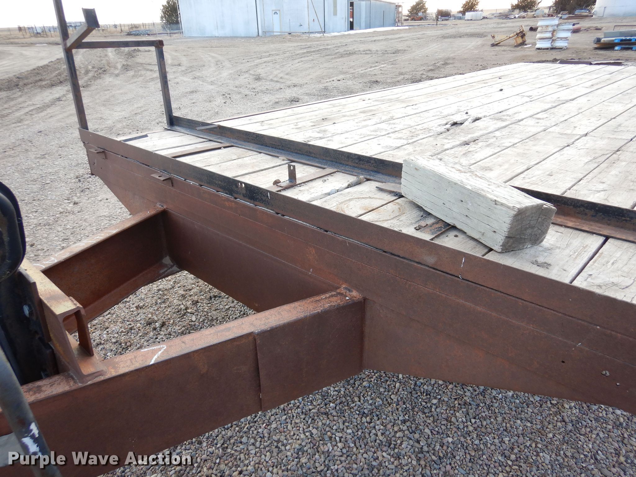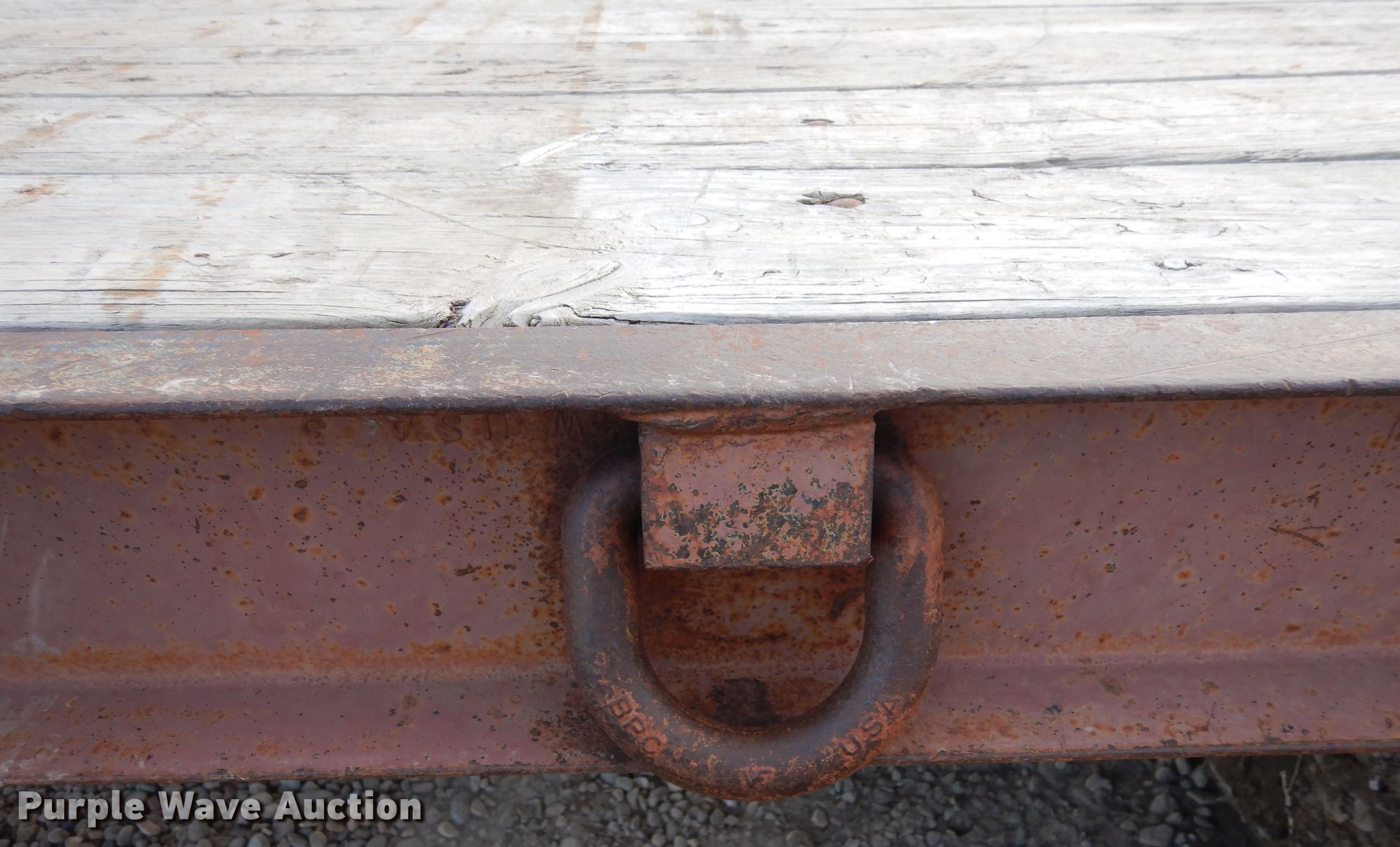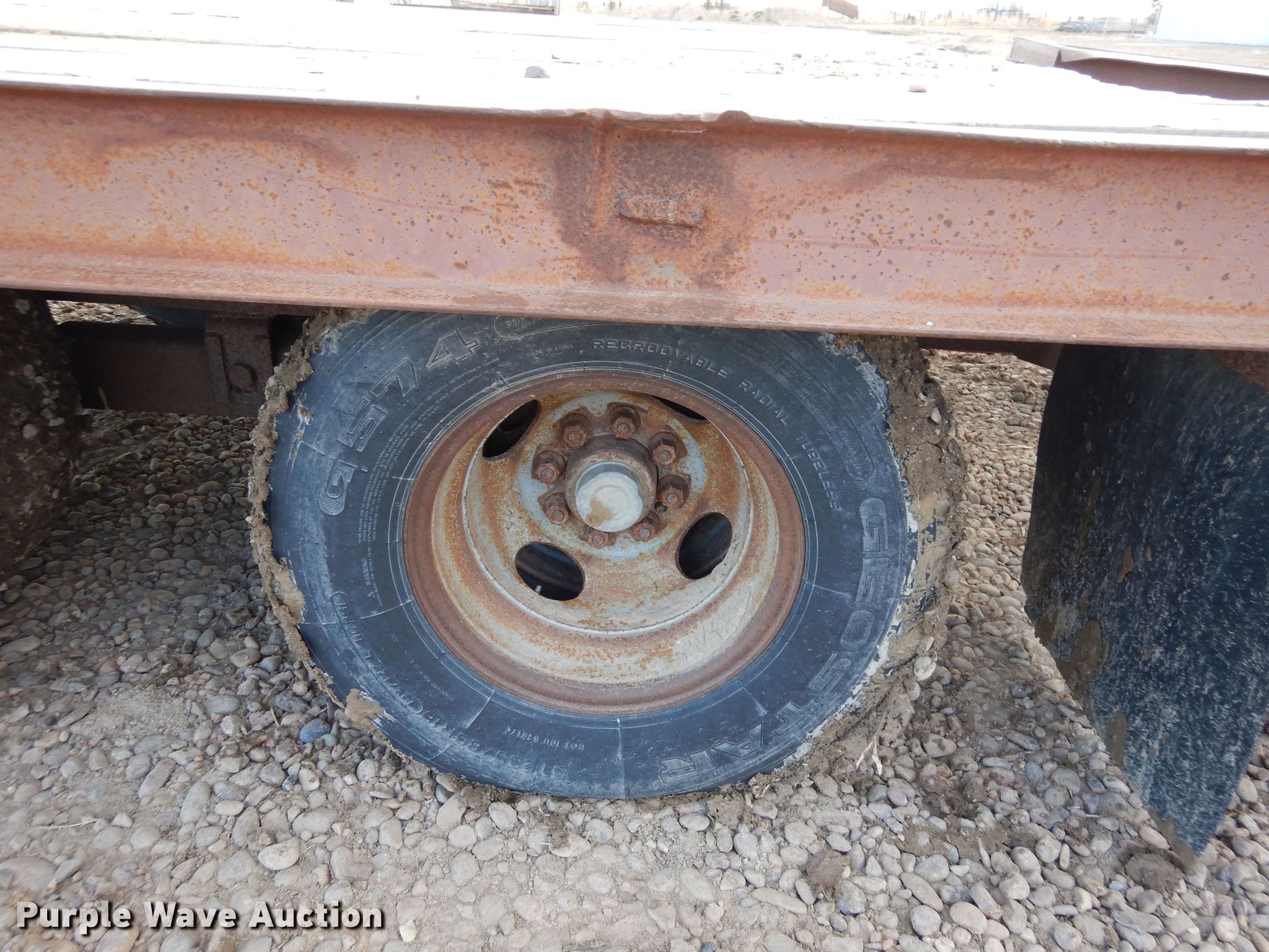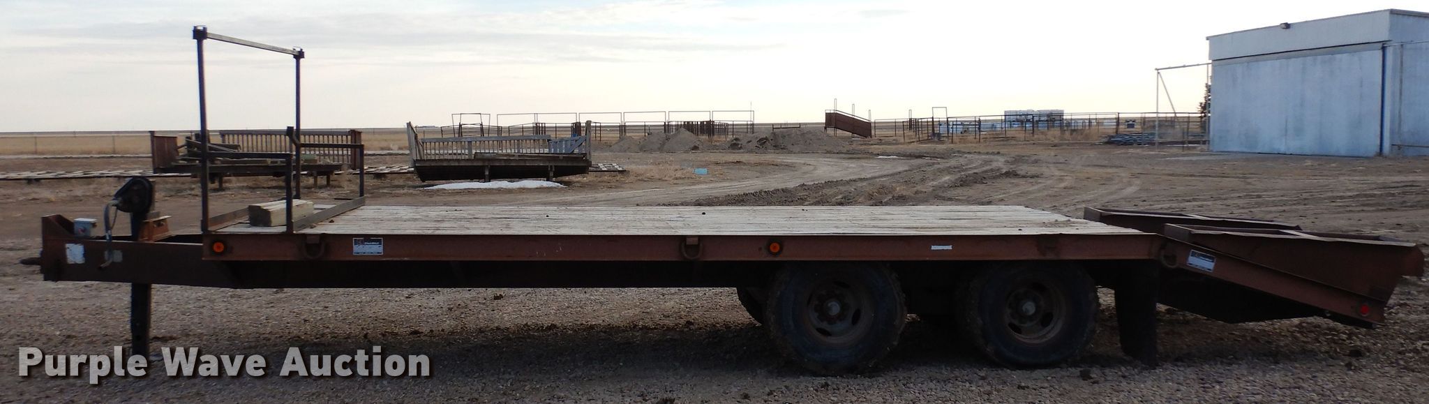 1993 Belshe equipment trailer. VIN: 16JF01823P1024292. Dimensions Overall: 29' 2" L x 95" W, Deck: 18' L x 95" W, Tail length: 5', Ramps: Manual Length: 4' 6". Features Deck type: Wood. Chassis Hitch: Pintle, Landing gear: Single, Suspension: Spring, Brakes: Electric, Axles: Tandem, GVWR: 18,000 lbs, GAWR: 9,000 lbs. Tires Steel wheels, Size: 235/85R16. Kansas title. Title distribution may be delayed up to 14 days from verification of funds. TLT Metals. 2949 CR 24. Tribune, KS 67879