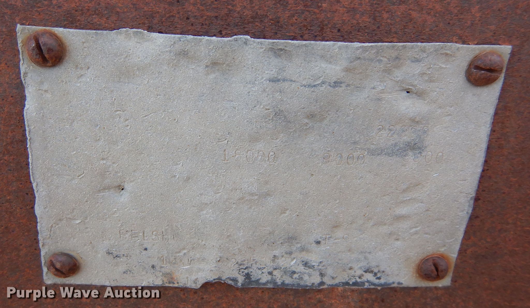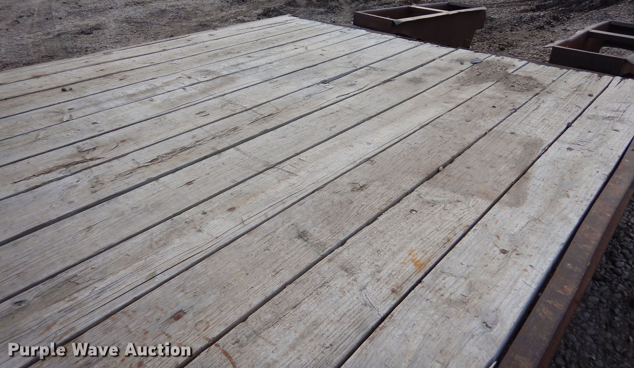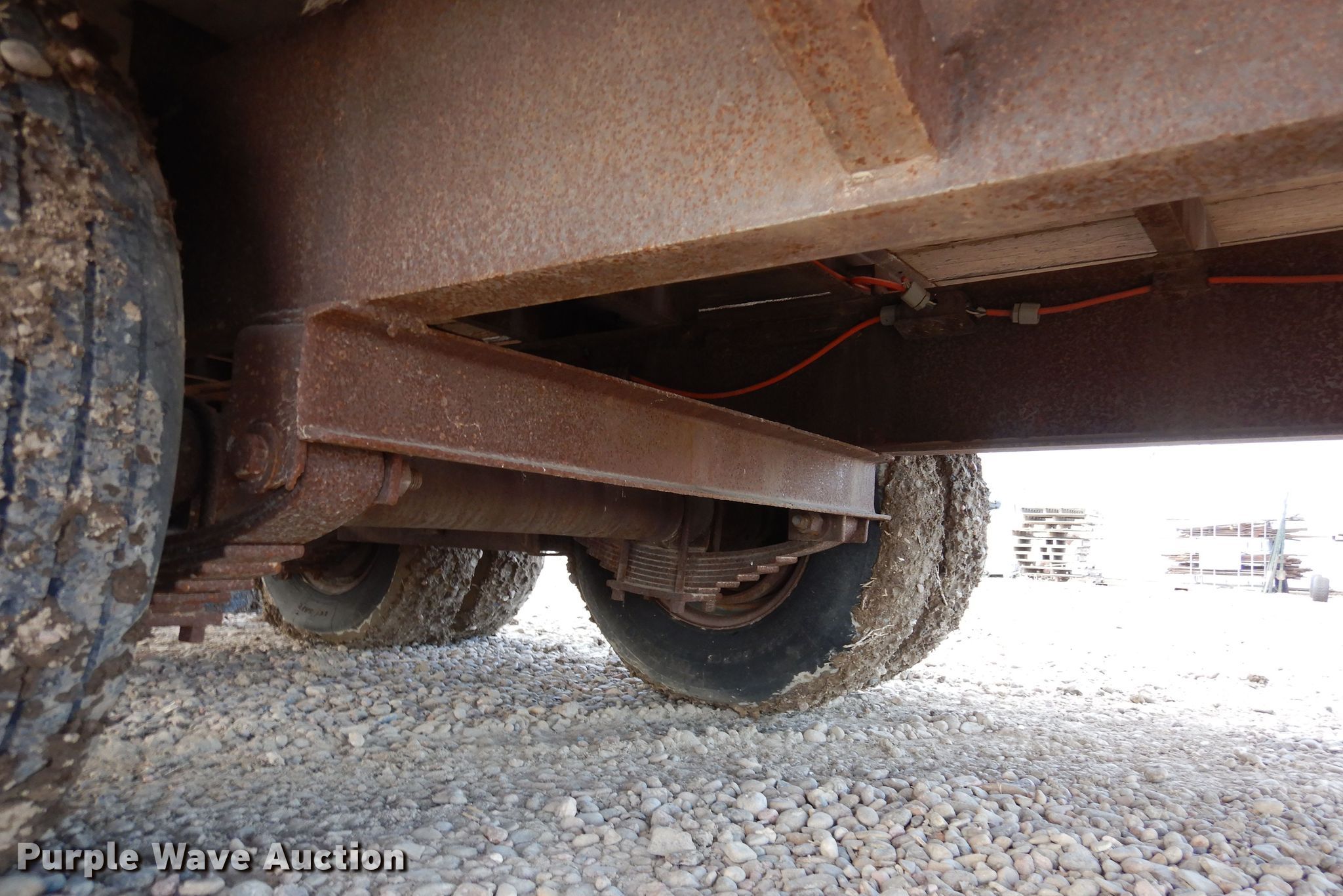 1993 Belshe equipment trailer. VIN: 16JF01823P1024292. Dimensions Overall: 29' 2" L x 95" W, Deck: 18' L x 95" W, Tail length: 5', Ramps: Manual Length: 4' 6". Features Deck type: Wood. Chassis Hitch: Pintle, Landing gear: Single, Suspension: Spring, Brakes: Electric, Axles: Tandem, GVWR: 18,000 lbs, GAWR: 9,000 lbs. Tires Steel wheels, Size: 235/85R16. Kansas title. Title distribution may be delayed up to 14 days from verification of funds. TLT Metals. 2949 CR 24. Tribune, KS 67879