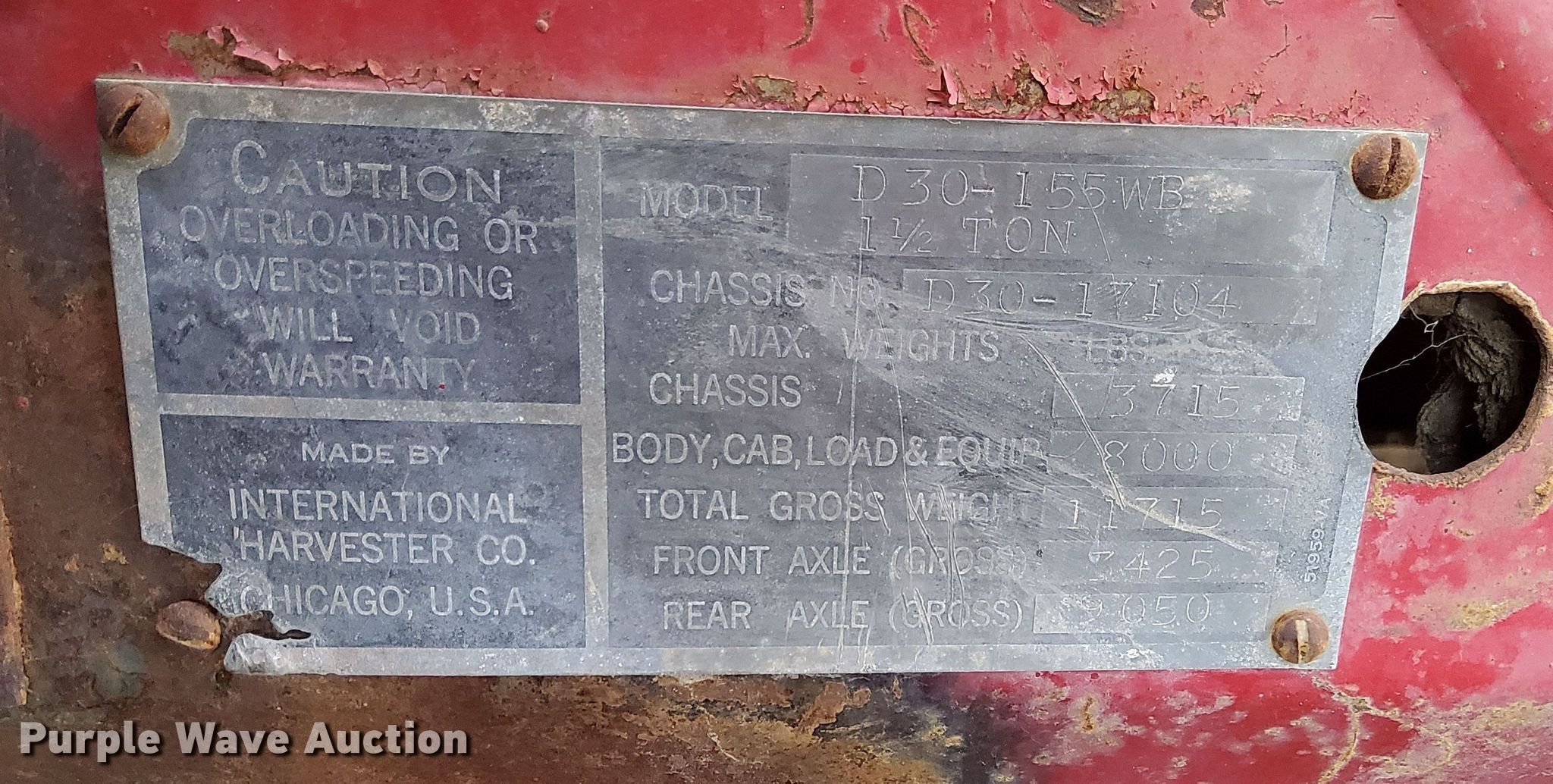 Purple Wave is selling a used Truck Chassis in Kansas. This item is a 1936 International D30 truck cab and chassis with the following: Miles: 72,906 on odometer, VIN: D30-17104