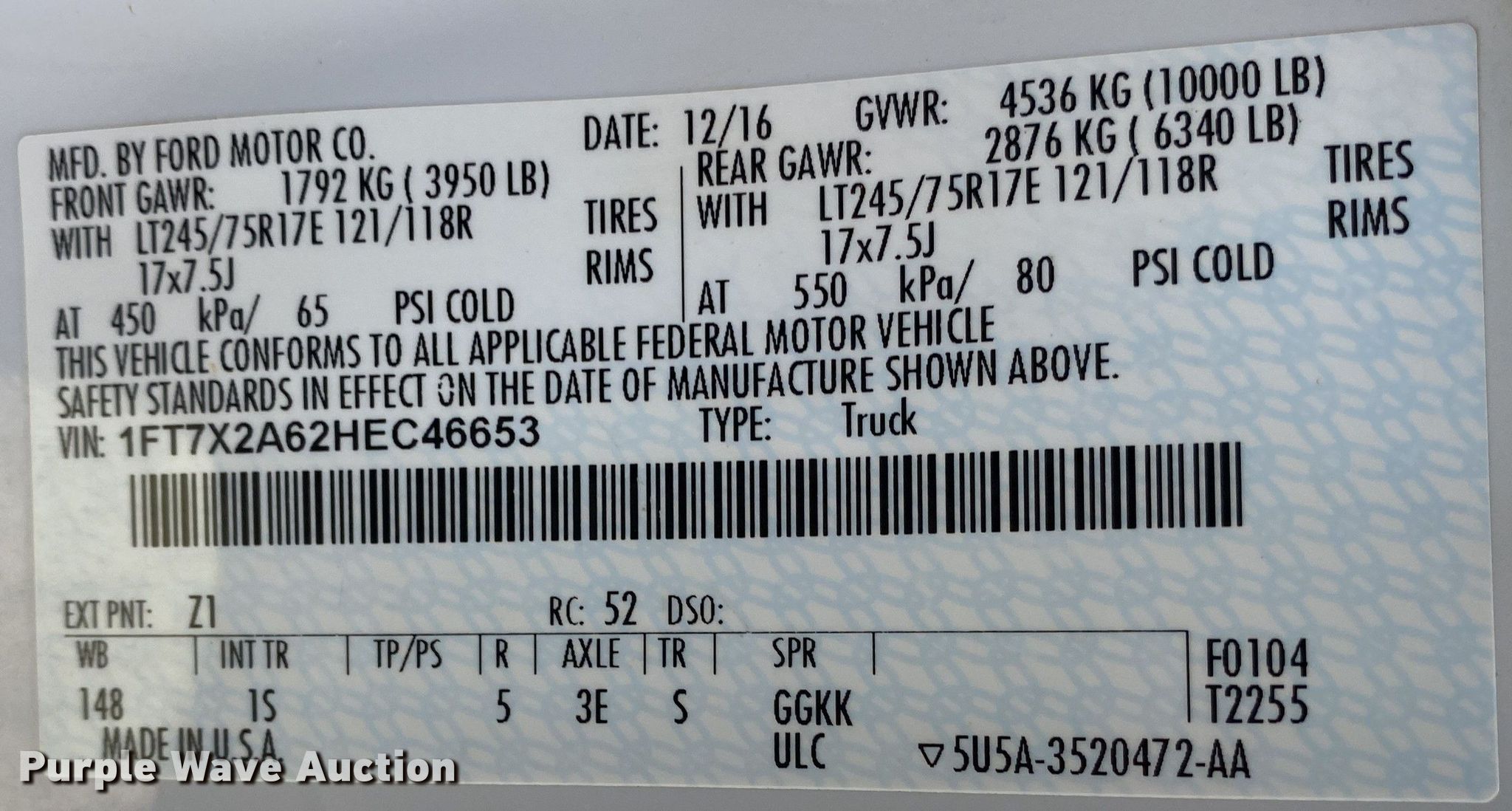 Purple Wave is selling a used 3/4 or 1 Ton Pickup or Van in Oklahoma. This item is a 2017 Ford F250 Super Duty SuperCab pickup truck with the following: Miles: 156,738 on odometer, VIN: 1FT7X2A62HEC46653, Unit #: 02.632