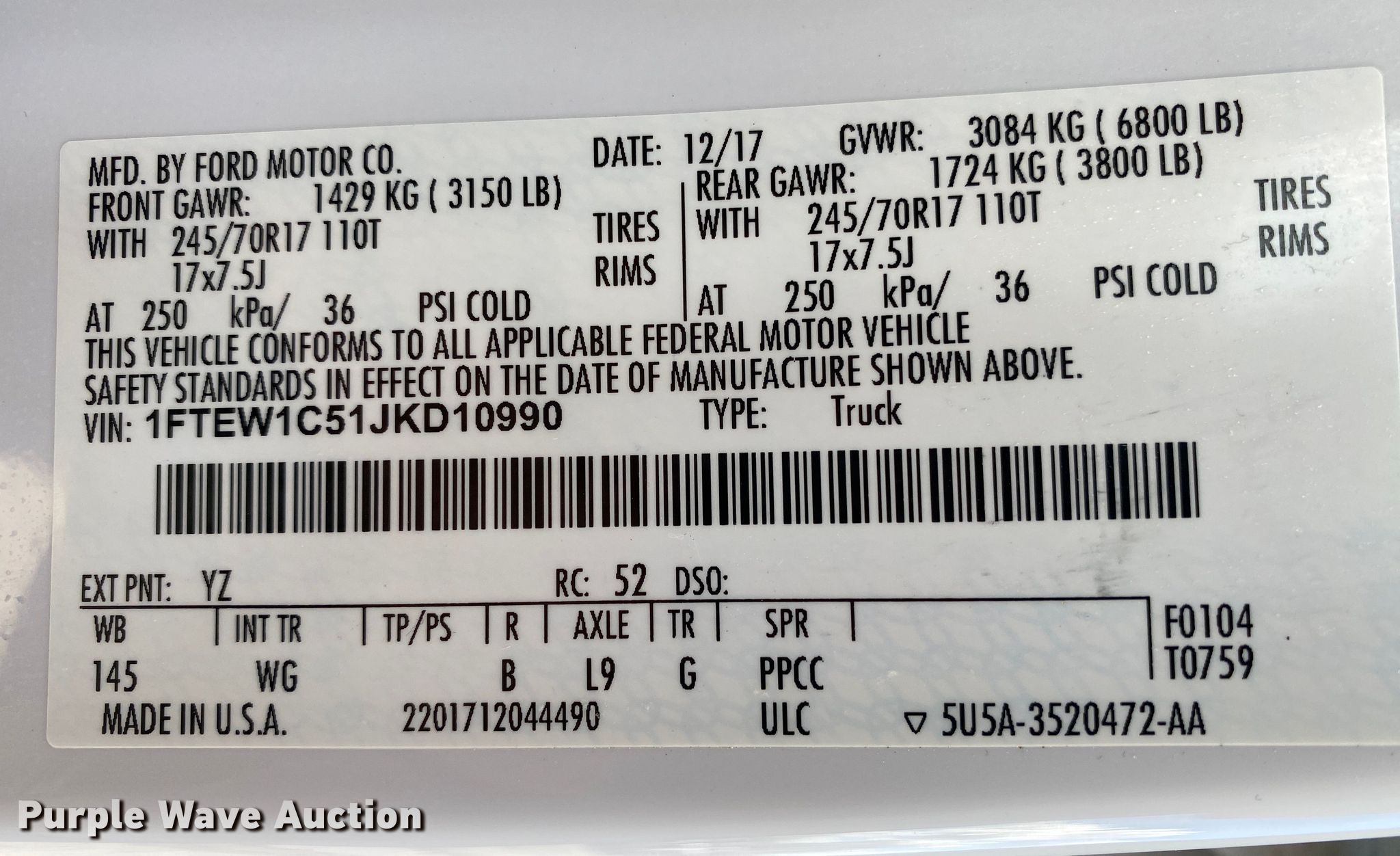 Purple Wave is selling a used 1/2 Ton Pickup or Van in Oklahoma. This item is a 2018 Ford F150 SuperCrew pickup truck with the following: Miles: 175,207 on odometer, VIN: 1FTEW1C51JKD10990, Unit #: 02.694
