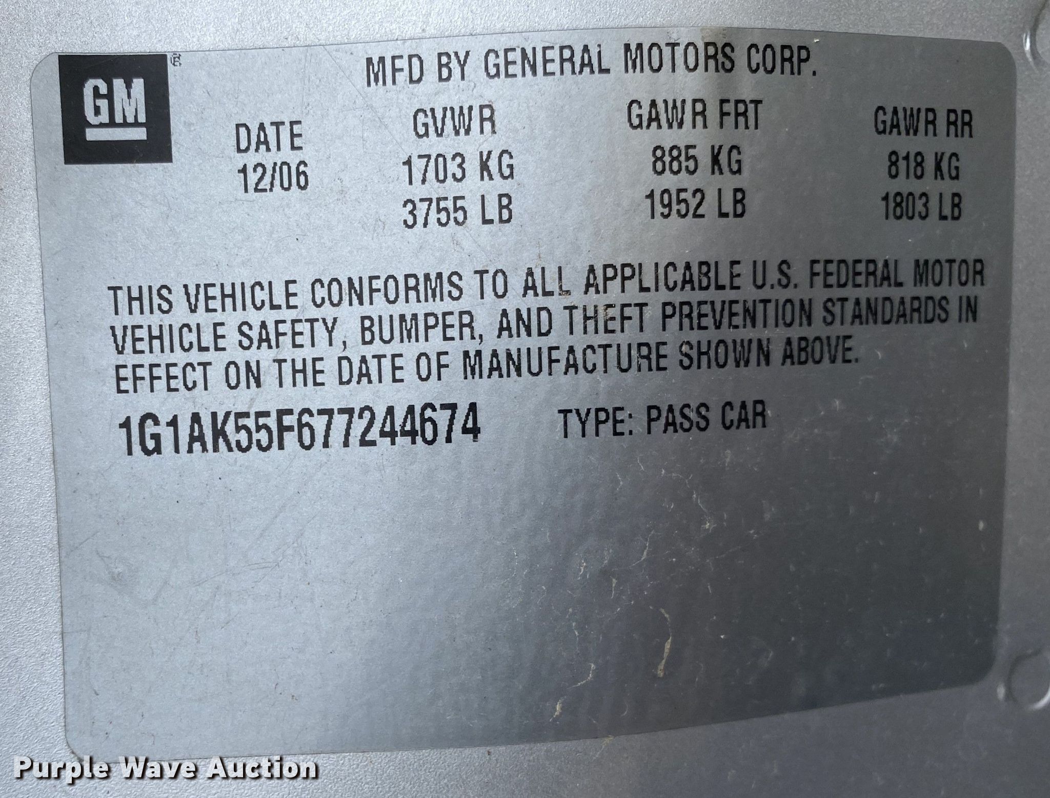 Purple Wave is selling a used Passenger Vehicle in Oklahoma. This item is a 2007 Chevrolet Cobalt LS with the following: Miles: 123,964 on odometer, VIN: 1G1AK55F677244674