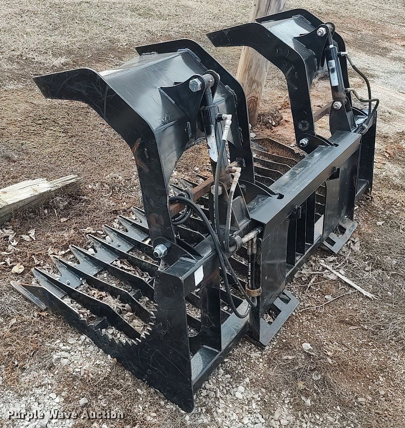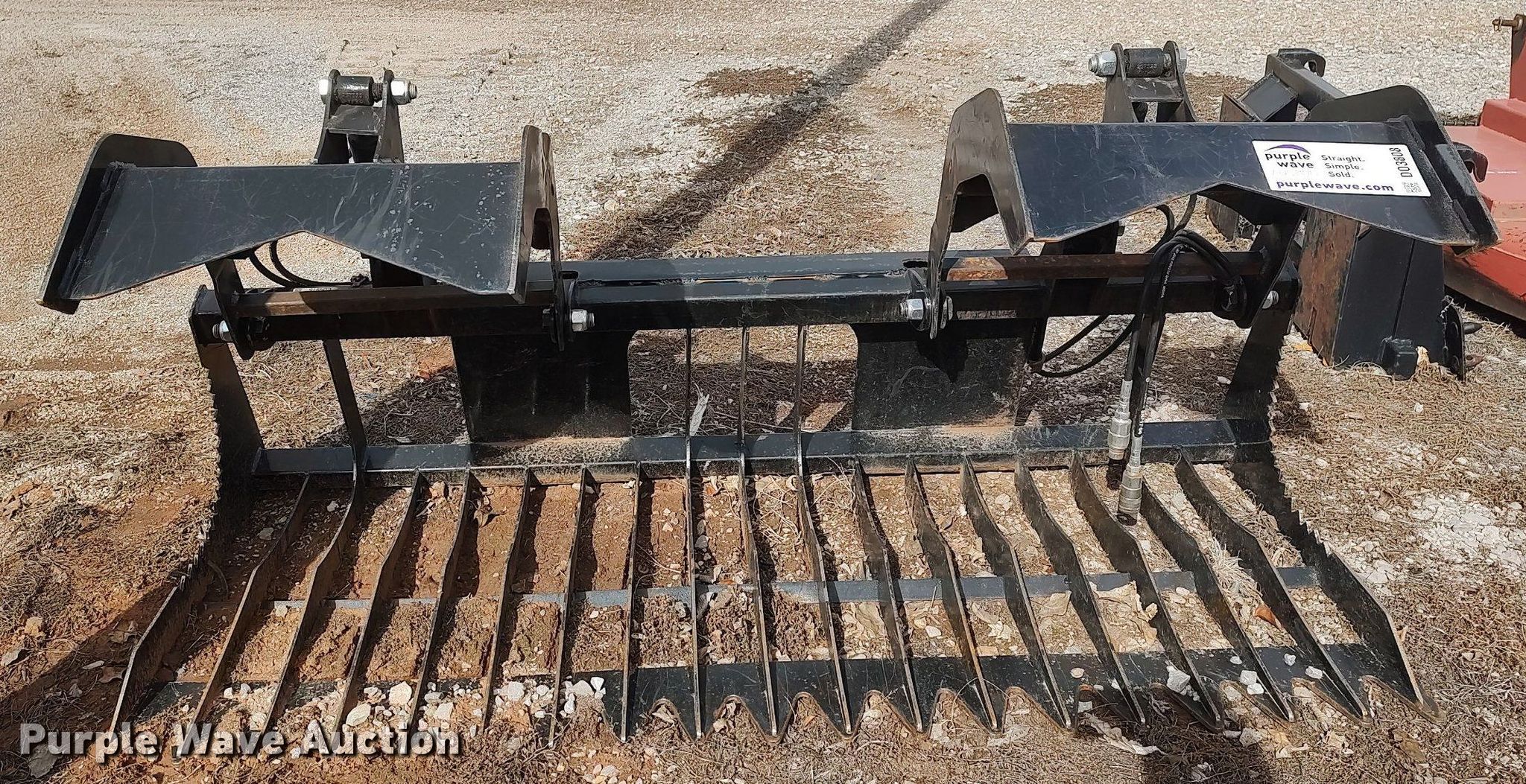 Purple Wave is selling a used Skid Steer Attach. in Oklahoma. This item is a 80" W skid steer rock grapple bucket with the following: 80" W skid steer rock grapple bucket. 2302 South Division Street. Guthrie, OK 73044