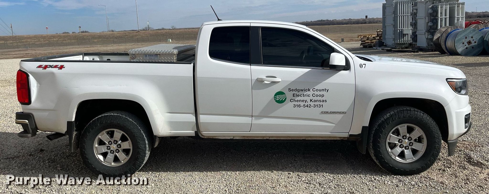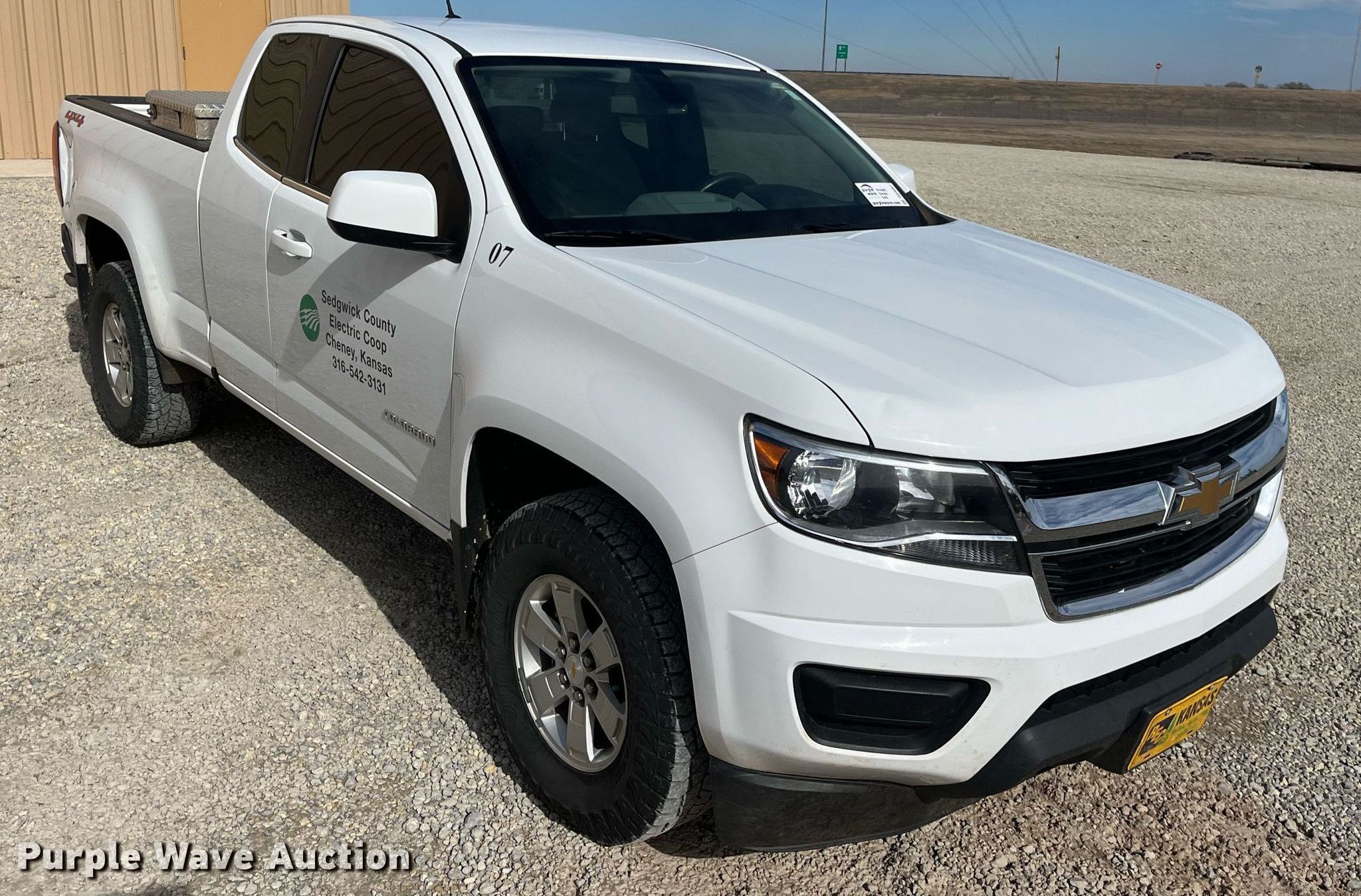 2018 Chevrolet Colorado Ext. Cab pickup truck. Miles: 115,621 on odometer, VIN: 1GCHTBEN5J1242658. Engine Displacement: 3.6L V6 DOHC, Cylinders: 6, Fuel type: Gas. Transmission Automatic, Four wheel drive. Interior AC, Heat, Seat: Power driver, Power windows, Power locks, Cruise control. Tires Size: 265/70R16. Notes Decals will be removed prior to auction. Kansas title. Title distribution may be delayed up to 14 days from verification of funds. Sedgwick County Electric Coop. Cheney, KS 67025