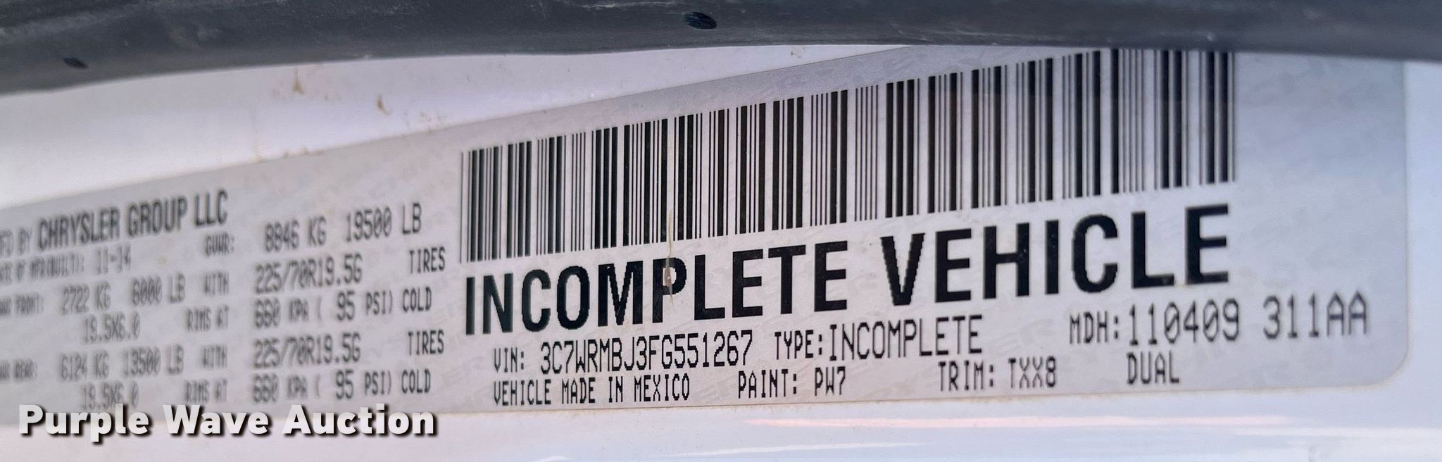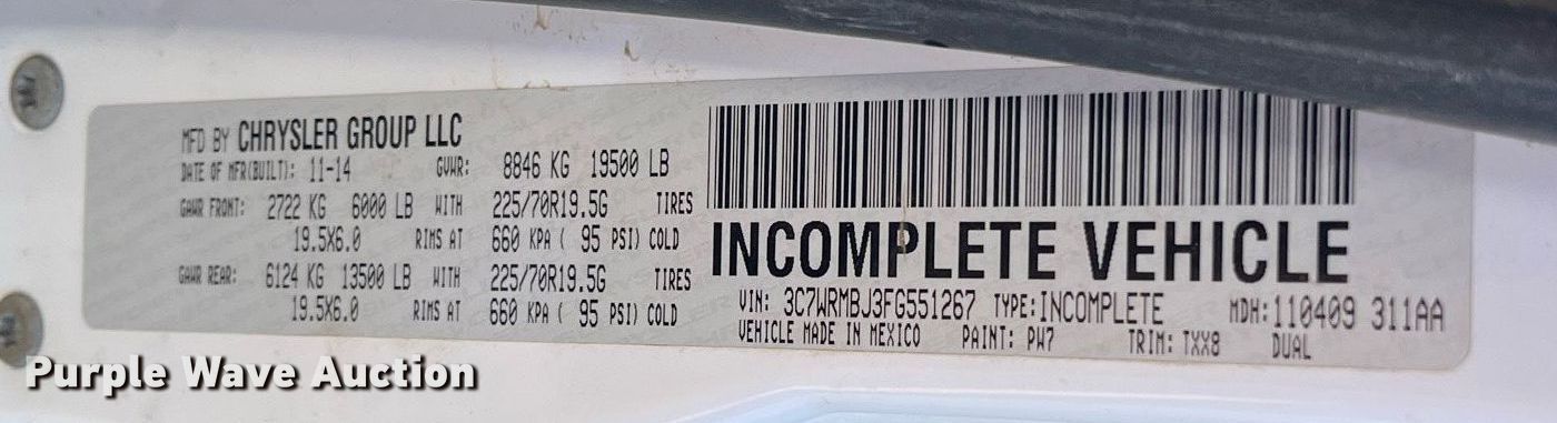 Purple Wave is selling a used Truck Chassis in Kansas. This item is a 2015 Dodge Ram 5500HD truck cab and chassis with the following: Miles: 278,545 on odometer, VIN: 3C7WRMBJ3FG551267