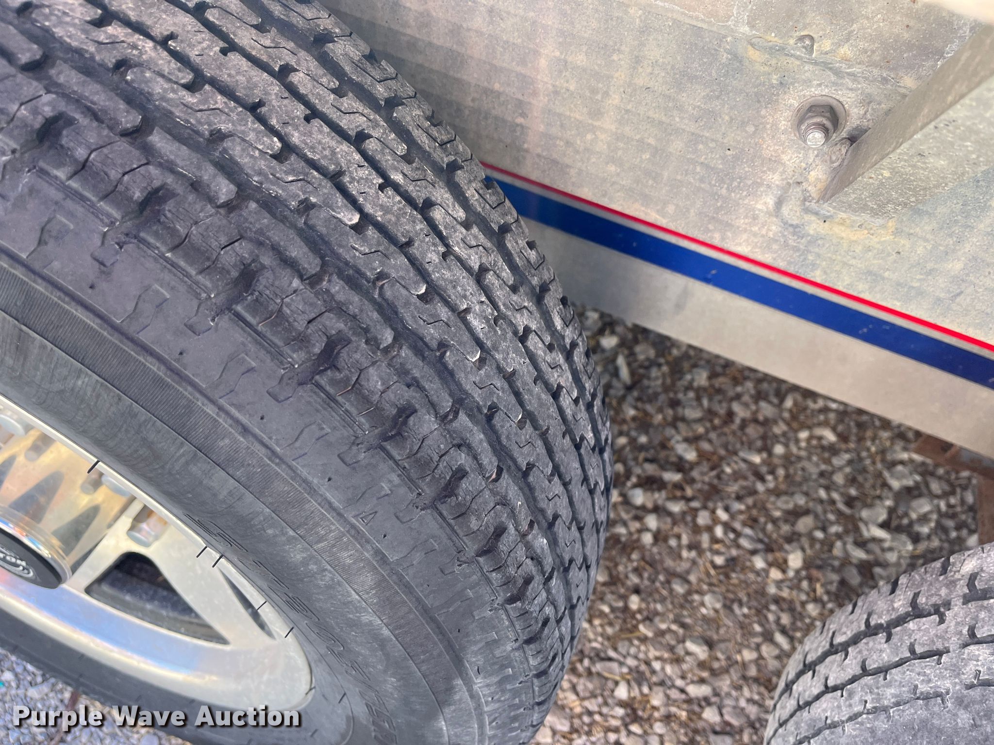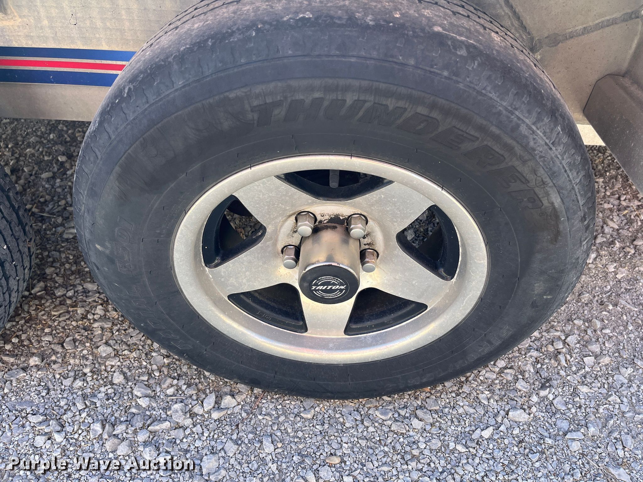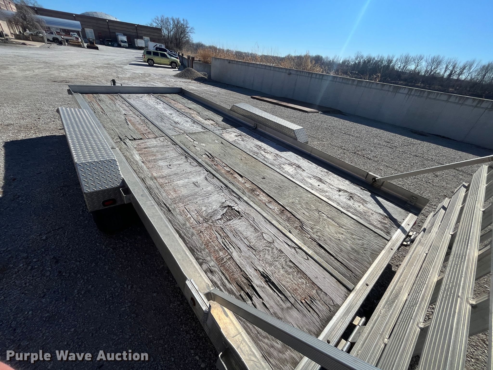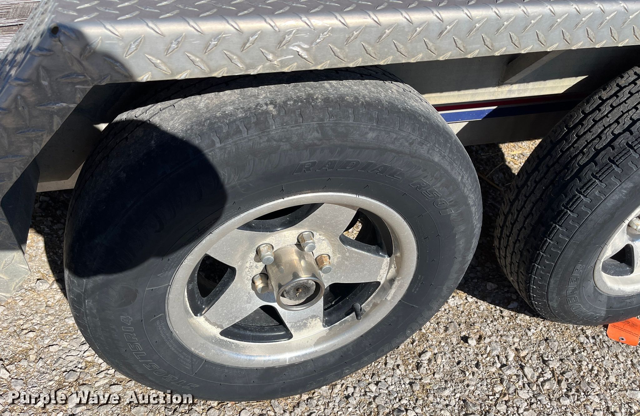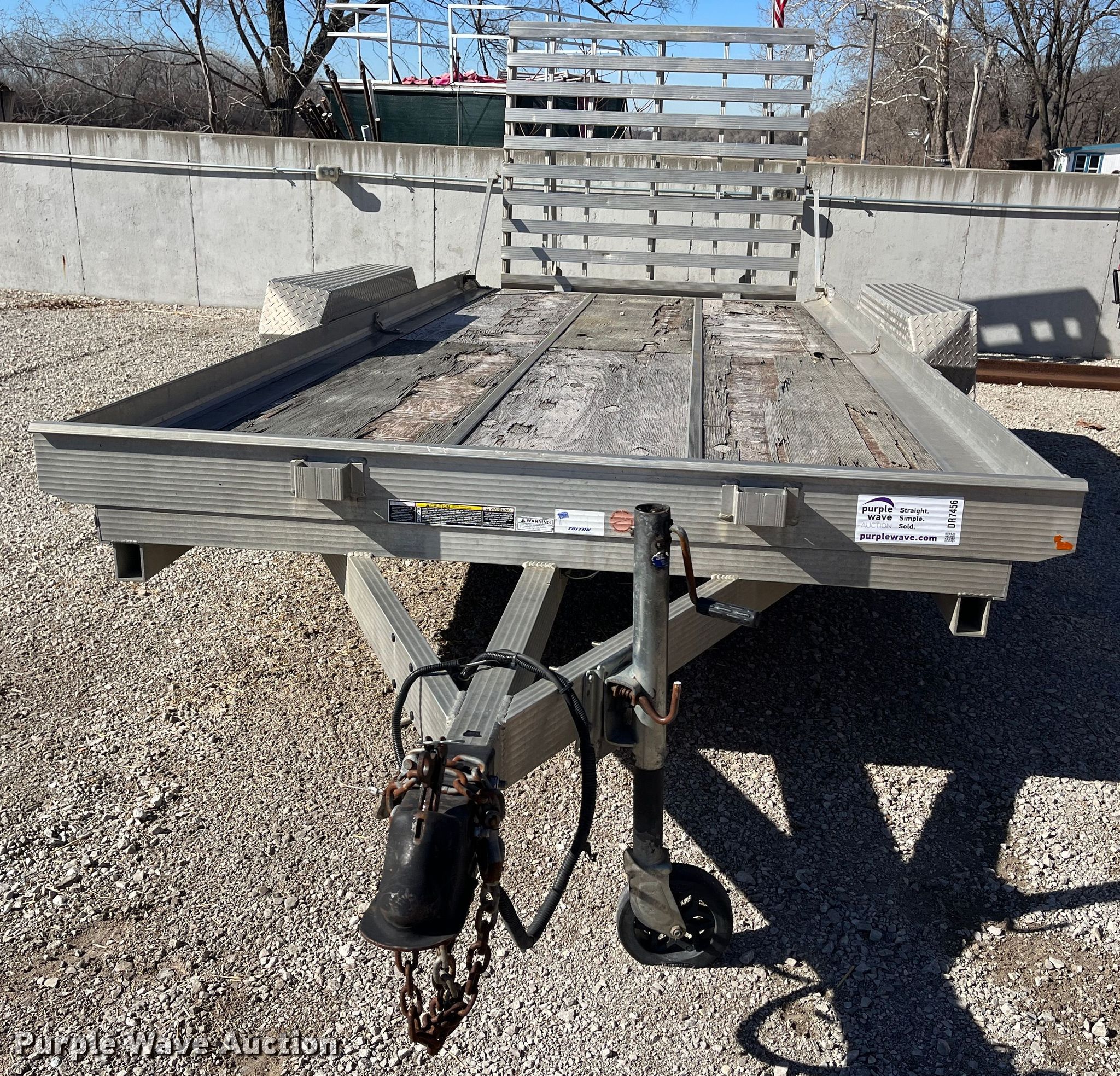 2007 Triton equipment trailer. VIN: 4TCSU216X7HH01285. Dimensions Overall: 19' 8" L x 96" W, Deck: 16' L x 82" W, Ramp: Manual Length: 60". Features Aluminum construction, Deck type: Wood. Chassis Ball hitch: 2 5/16", Landing gear: Single, Brakes: Electric, Axles: Tandem, GVWR: 7,000 lbs, GAWR: 3,500 lbs. Tires Aluminum wheels, Size: 205/75R14. Missouri title. Ball Power Equipment. 7603 Northwest River Park Drive. Parkville, MO 64152