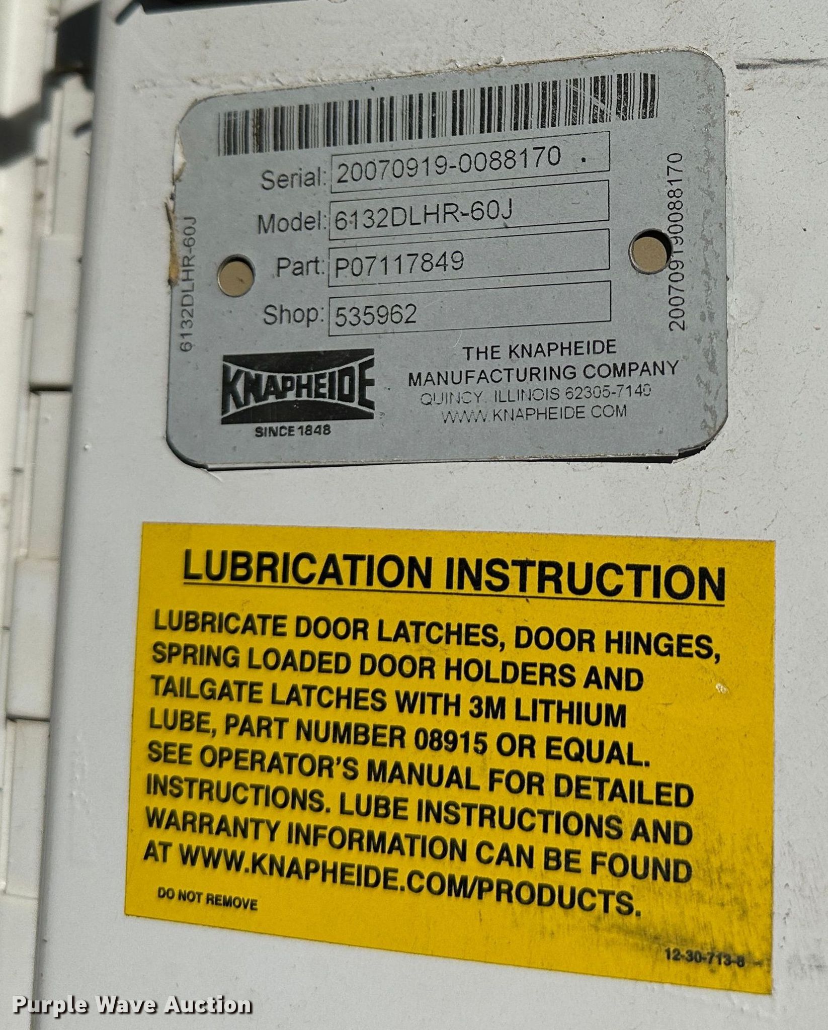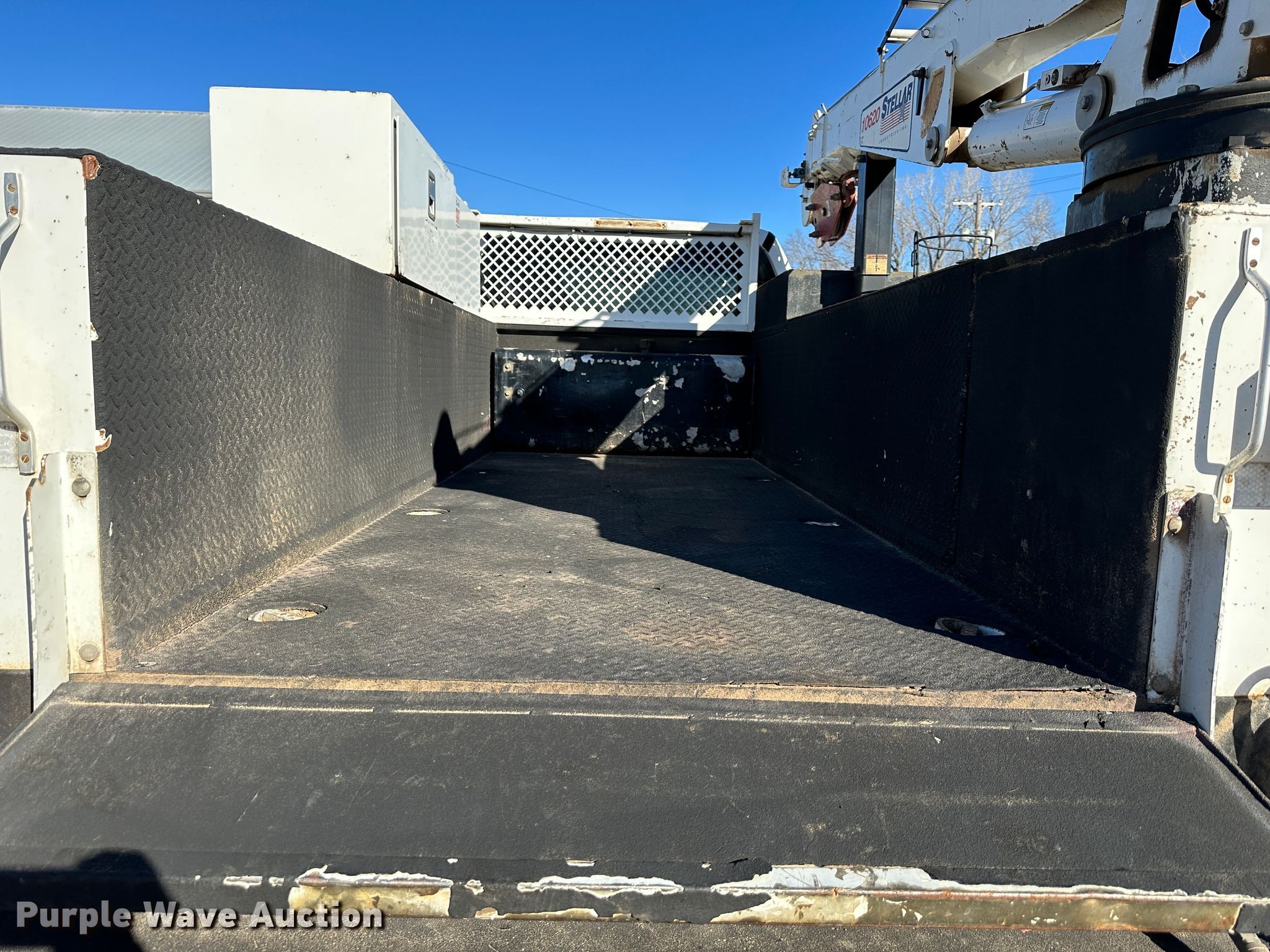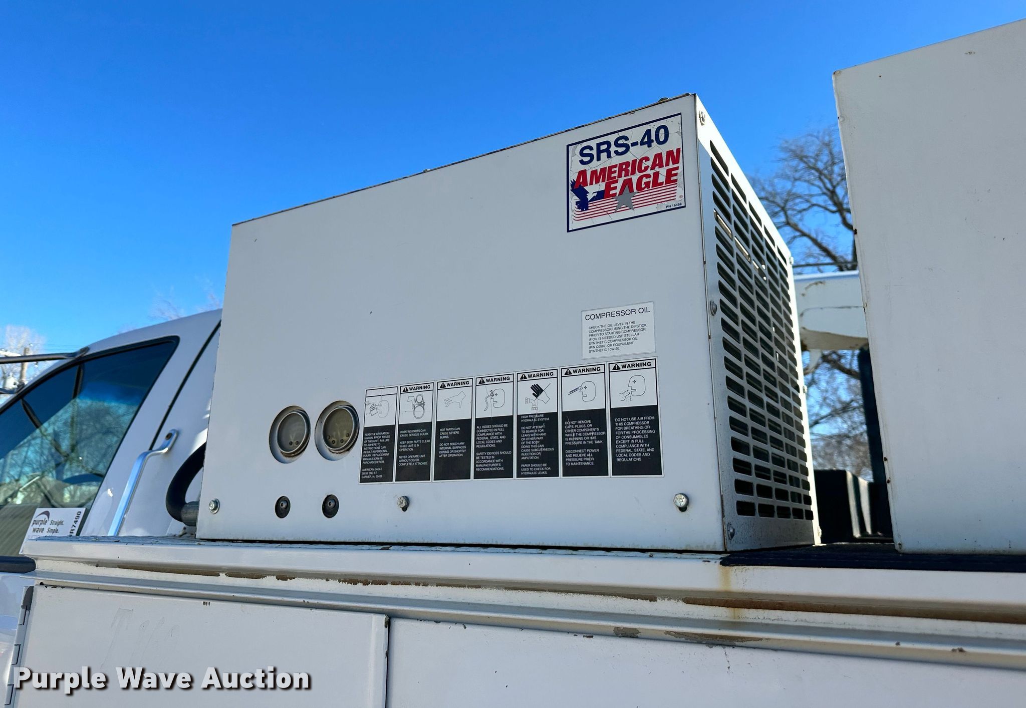 2008 Ford F750 Super Duty utility / service truck. Miles: 196,195 on odometer, VIN: 3FRWF75H08V067946. Engine Cummins ISB-07, Displacement: 6.7L, Cylinders: 6, Fuel type: Diesel. Transmission Manual, Speed: 7. Chassis Axles: Single, Suspension: Spring, Brakes: Air. Interior AC, Heat, Power windows, Power locks, Cruise control, Auxiliary controls. Features Bed Knapheide, 11' L x 96" W, Air compressor American eagle SRS-40, Crane Stellar 10620. Tires Size: 295/75R22.5. Kansas title. Ebert construction. 103 W Valley St. Wamego, KS 66547