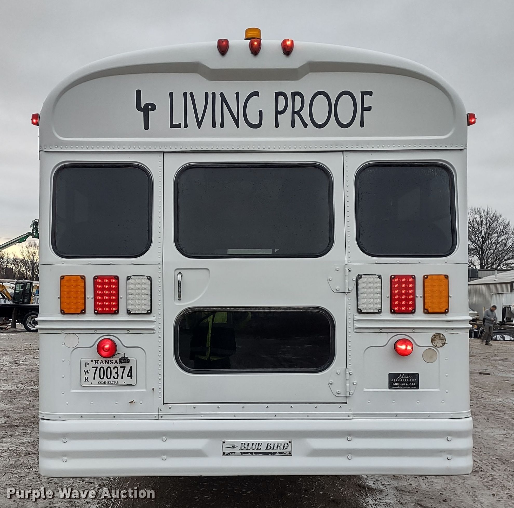 1998 Blue Bird TC2000 school bus. Miles: 108,108 on odometer, Hours: 7,541 on meter, VIN: 1BAAGCSA4WF077302. Engine Cummins ISB, Displacement: 5.9L, Cylinders: 6, Fuel type: Diesel. Transmission Automatic. Chassis Axles: Single, Suspension: Spring, Brakes: Air, GVWR: 28,000 lbs. Interior Heat, Passengers: 44. Tires Size: 10R22.5. Kansas title. Title distribution may be delayed up to 14 days from verification of funds. Living Proof Ministries. 32401 Harmony Road. Paola, KS 66071
