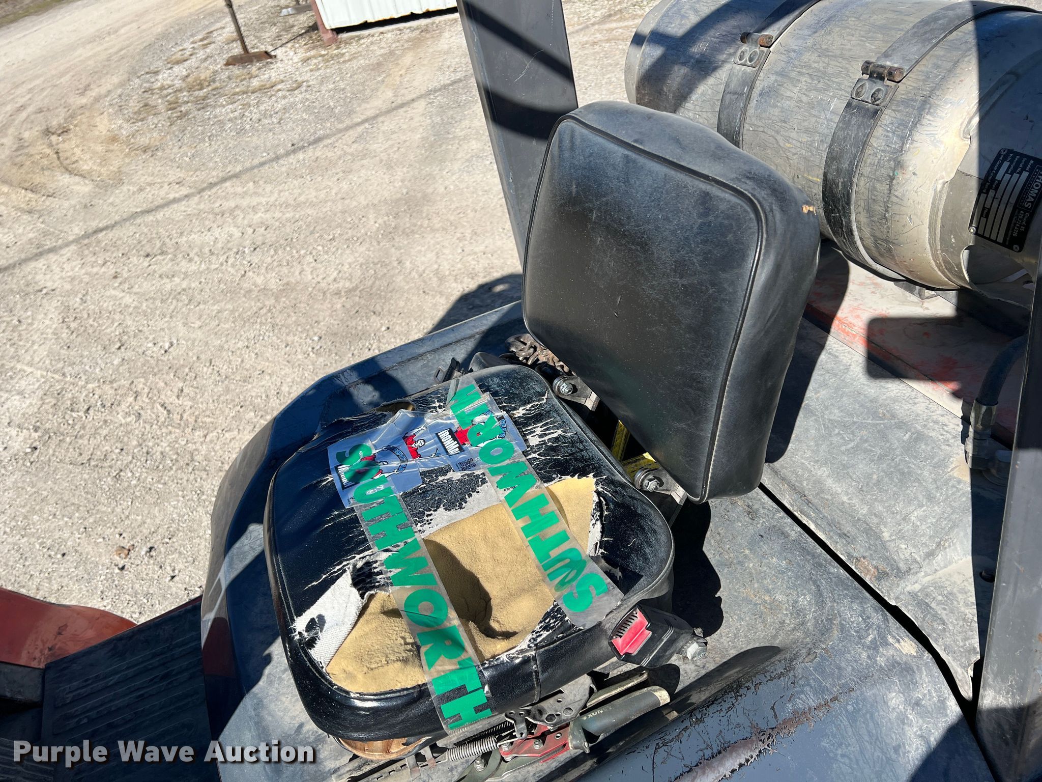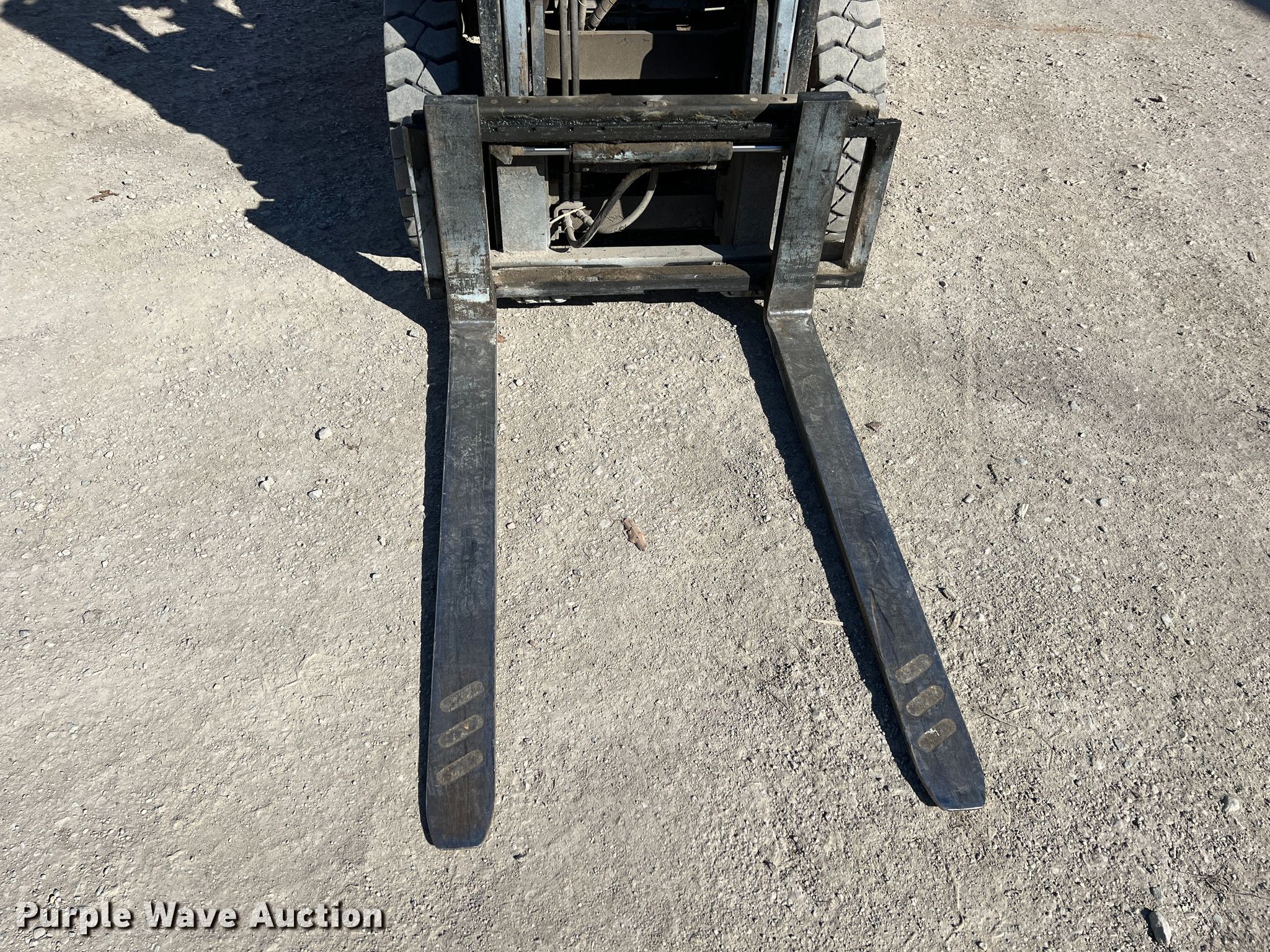 Toyota forklift. Engine. Cylinders: 4, Fuel type: LPG LP bottle: Not included. Transmission Powershift. Operators station OROPS. Features Mast stages: 3, Side shift, Mast tilt, Fork length: 48". Tires Front: 7.00-12, Rear: 6.00-9/4.00, Solid. Thomas Manufacturing. 414 S Cherokee St. Girard, KS 66743