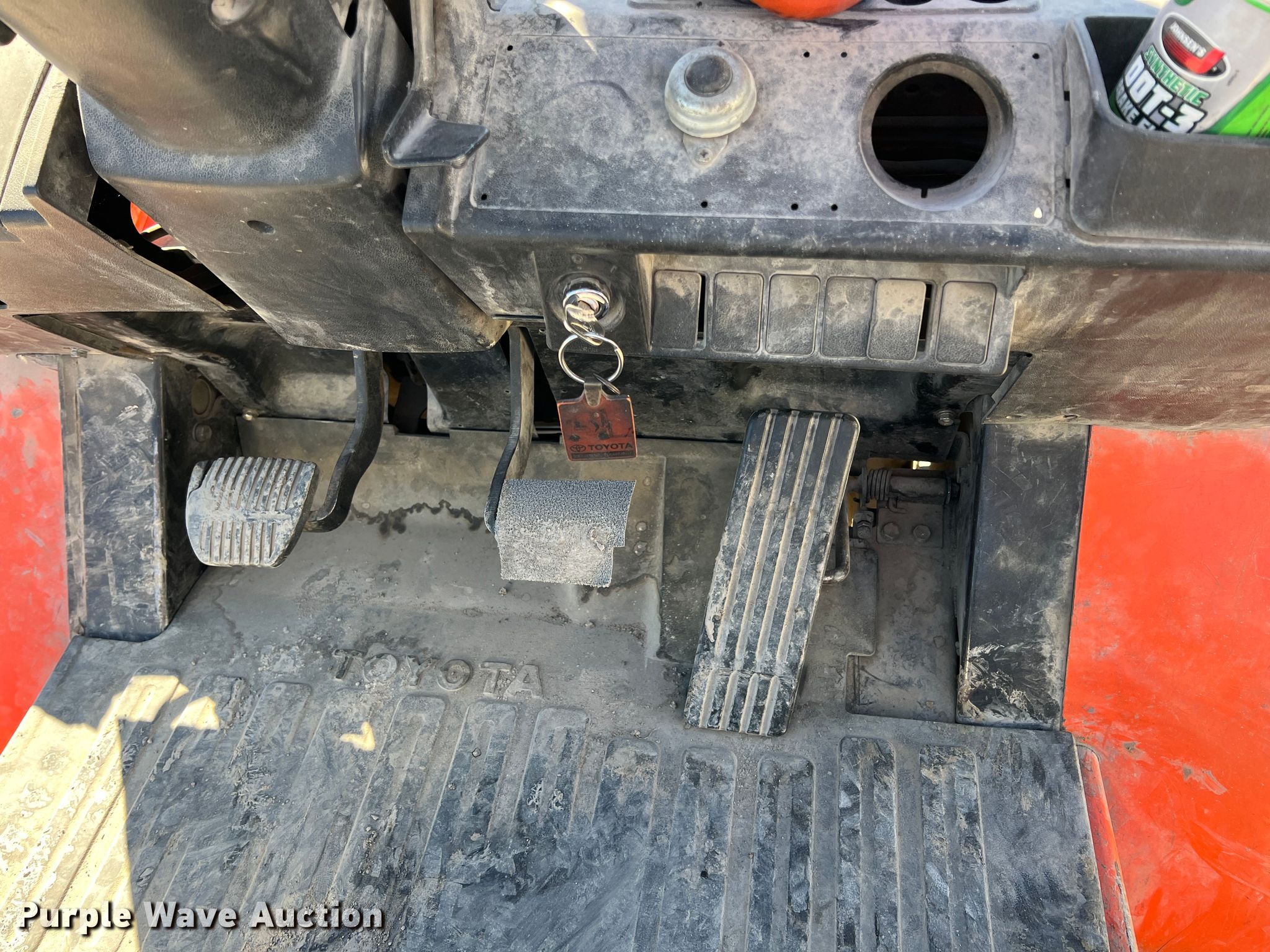 Take a look at this used Toyota forklift being sold on March 15th, 2023 in the SOLD! March 15 Vehicles and Equipment Auction made by Toyota. Take a look at all of the item information below or take a look at similar auctions for Cushion Tire or Pneumatic Forklift.