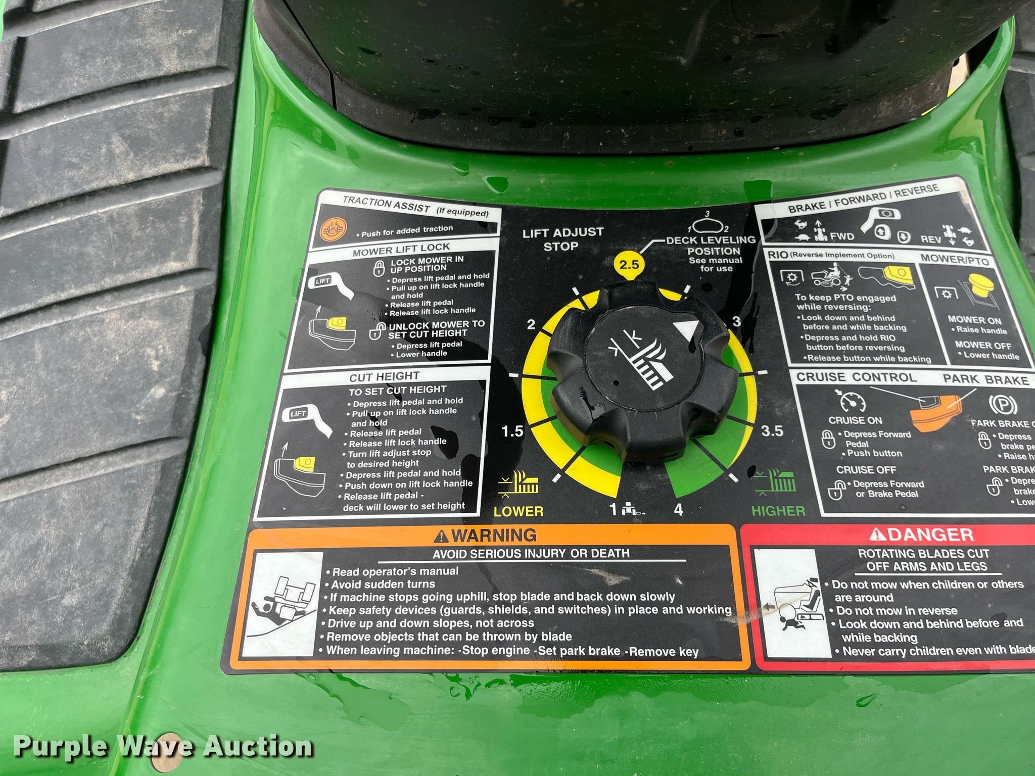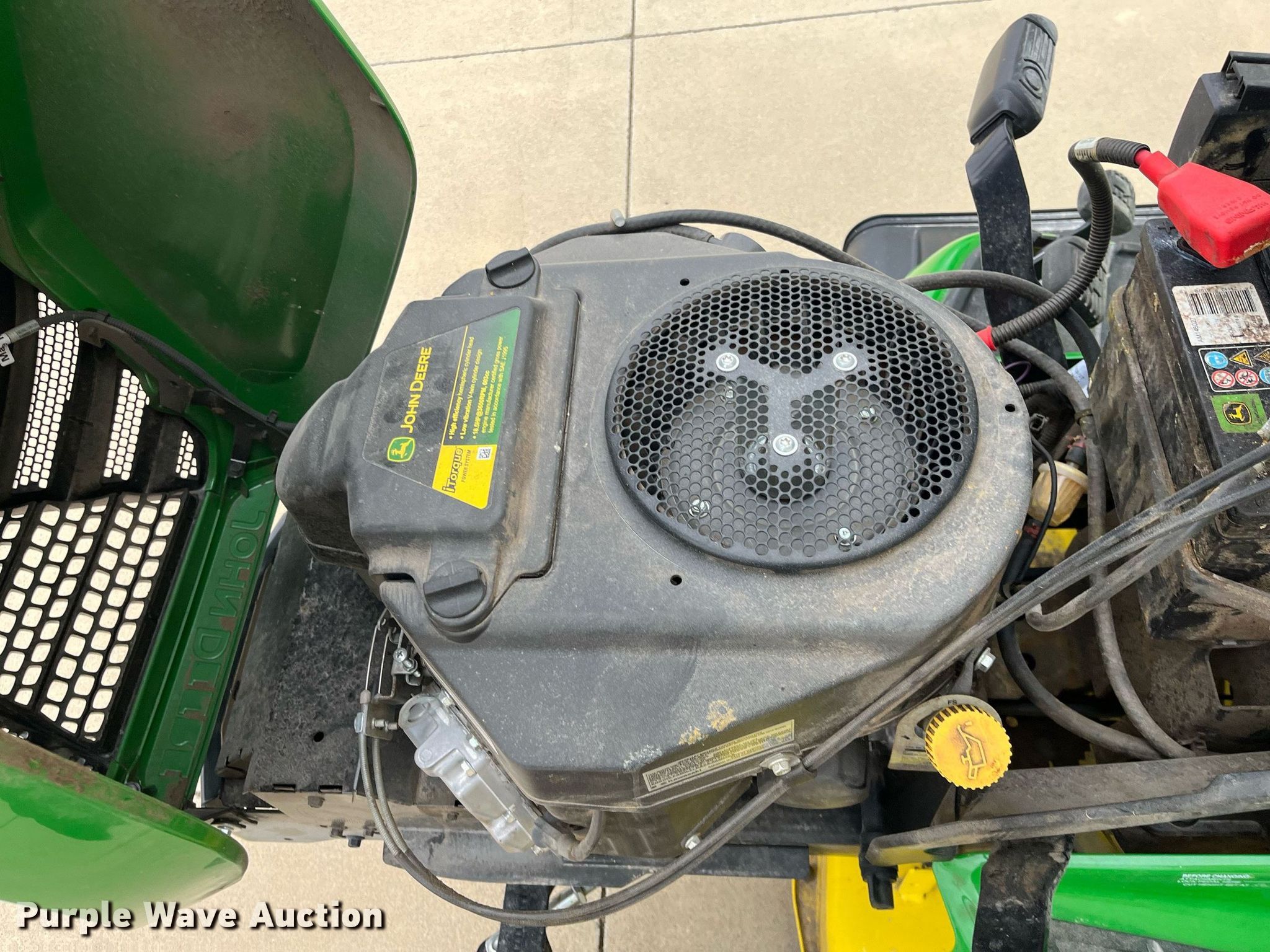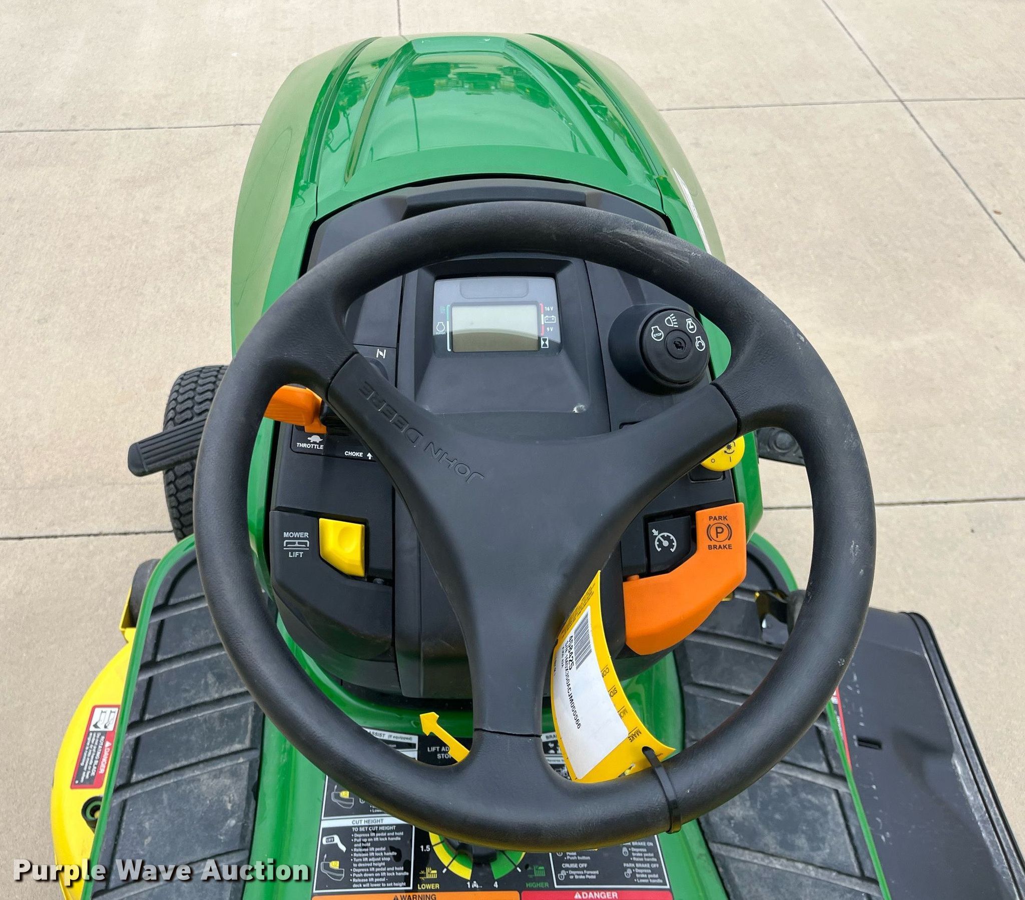 Purple Wave is selling a used Lawn Mower in Kansas. This item is a John Deere X350 lawn mower with the following: Hours: 2 on meter, Cutting width: 42", Serial: 1M0X350ACJM055566