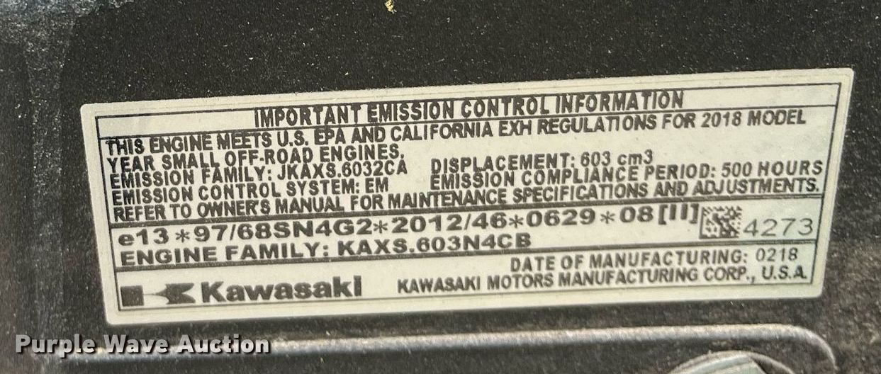 John Deere X350 lawn mower. Hours: 2 on meter, Cutting width: 42", Serial: 1M0X350ACJM055566. Engine Kawasaki, Displacement: 603 cc, Cylinders: 2, Fuel type: Gas, HP: 18.5. Transmission Hydrostatic. Features Rear drawbar. Tires Front: 15x6.00-6, Rear: 20x10.00-8. PrairieLand Partners. 2401 Northview Road. McPherson, KS 67460