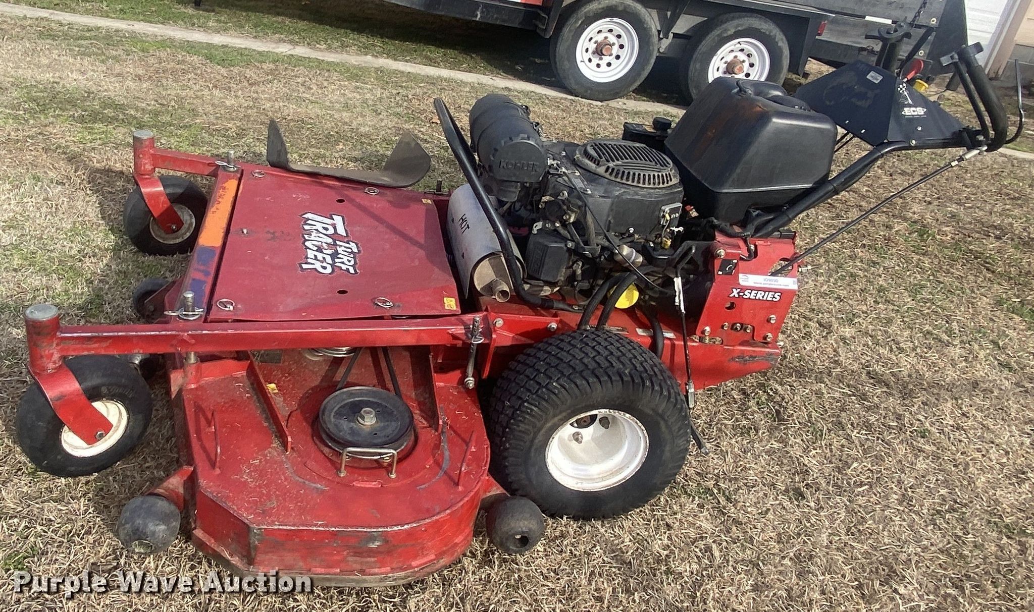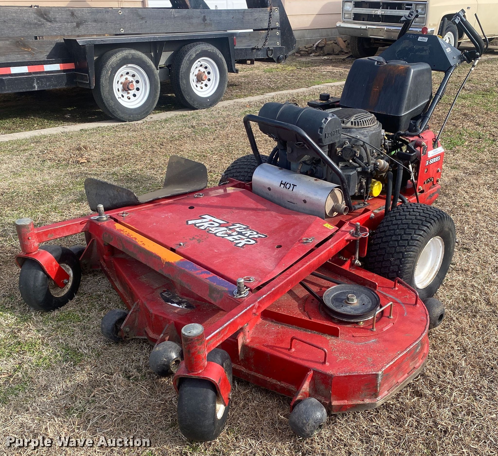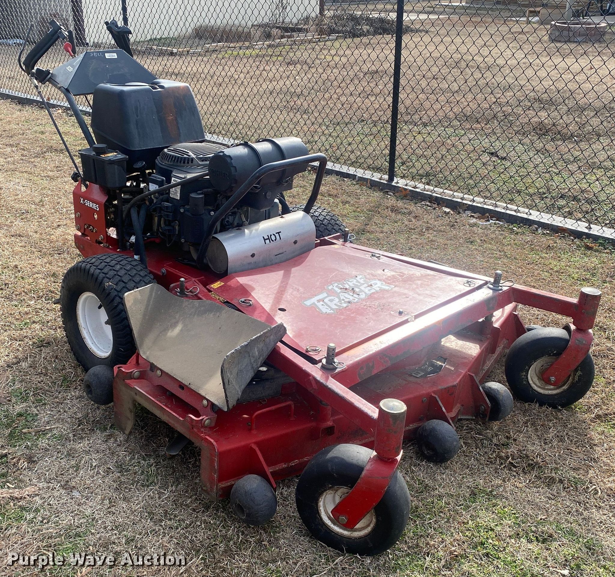 Purple Wave is selling a used Commercial Turf Mower in Oklahoma. This item is a Exmark X Series ZTR lawn mower with the following: Hours: 1,088 on meter, Cutting width: 60", Serial: 315618000