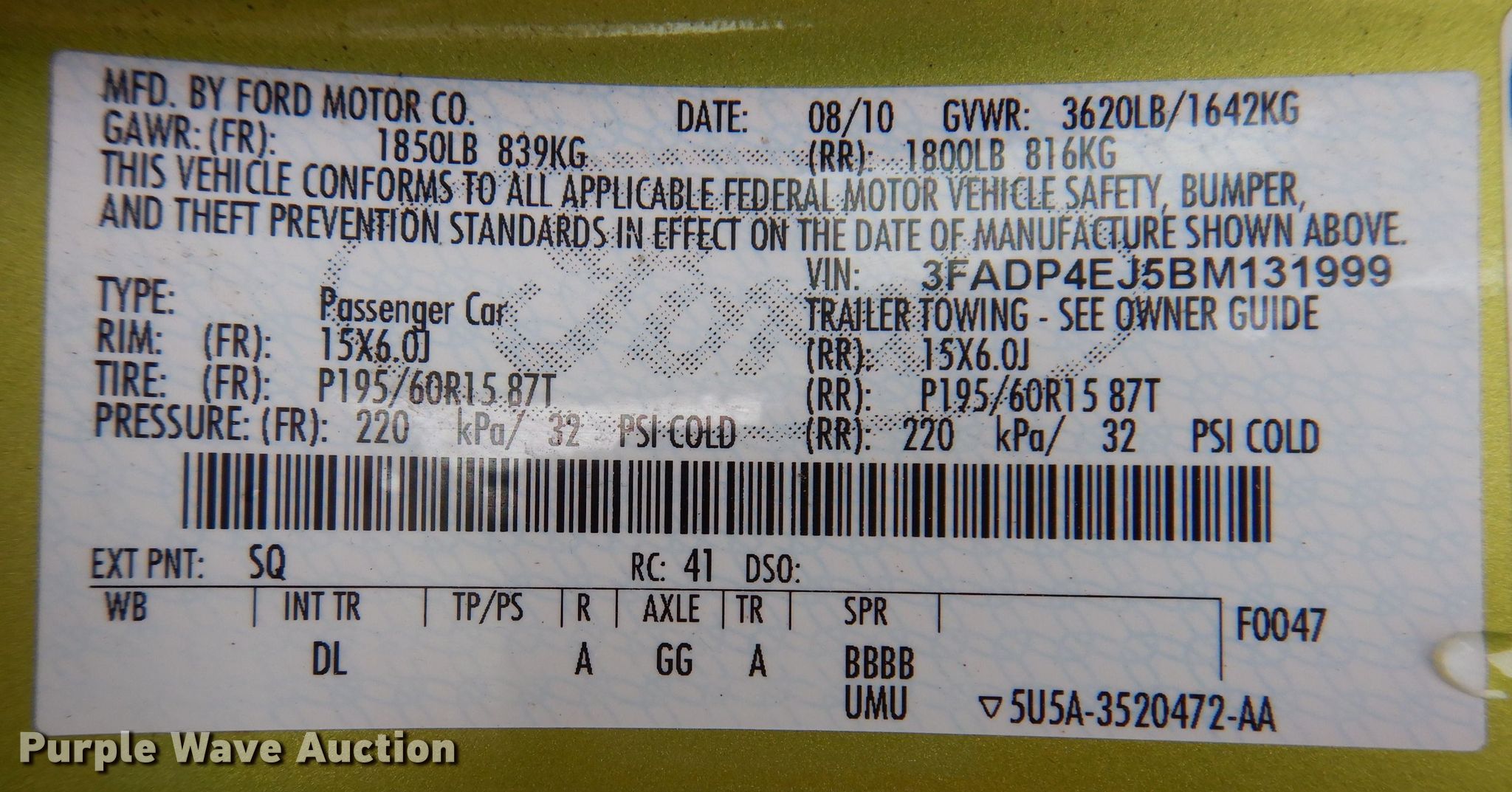 - VIN: 3FADP4EJ5BM131999