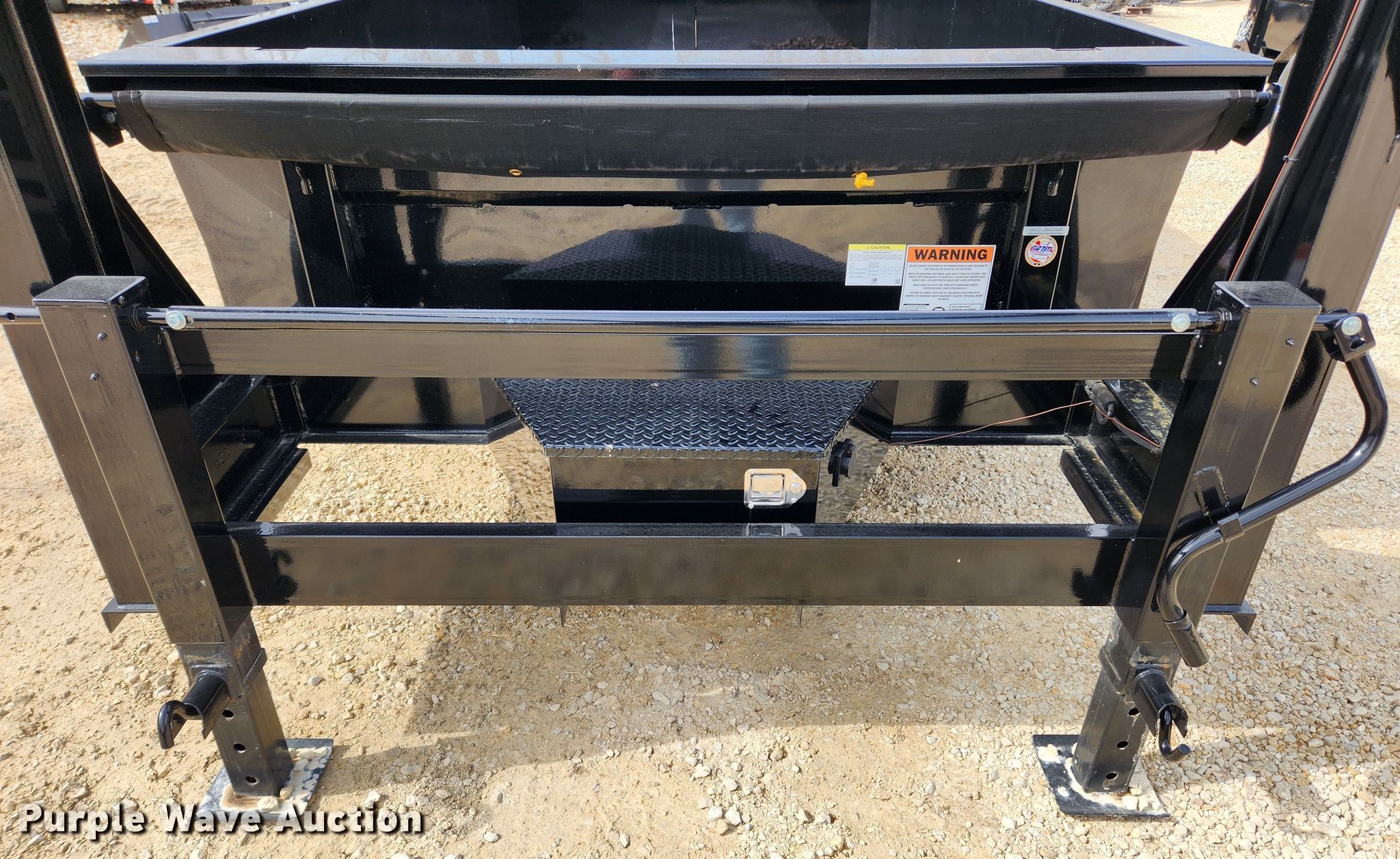 2022 Liberty LD14K83X14B8 dump trailer. VIN: 5M4LD1428NF034609. Dimensions Overall: 24' L x 101" W, Body: 14' L x 83" W, Side height: 24". Features Body type: Steel, Ram: Single, End gate: Manual, Roll tarp. Chassis Hitch: Gooseneck, Landing gear: Dual, Suspension: Spring, Brakes: Electric, Axles: Tandem, GVWR: 14,000 lbs, GAWR: 7,000 lbs. Tires Steel wheels, Size: 235/80R16. Notes Unused. Seller is an Missouri licensed motor vehicle dealer. Transfer of ownership documentation will be a manufacturer's certificate of origin that will be assigned and distributed by the dealer. Please contact the seller for distribution questions. CSR Truck and Equipment Sales. Marthasville, MO 63357