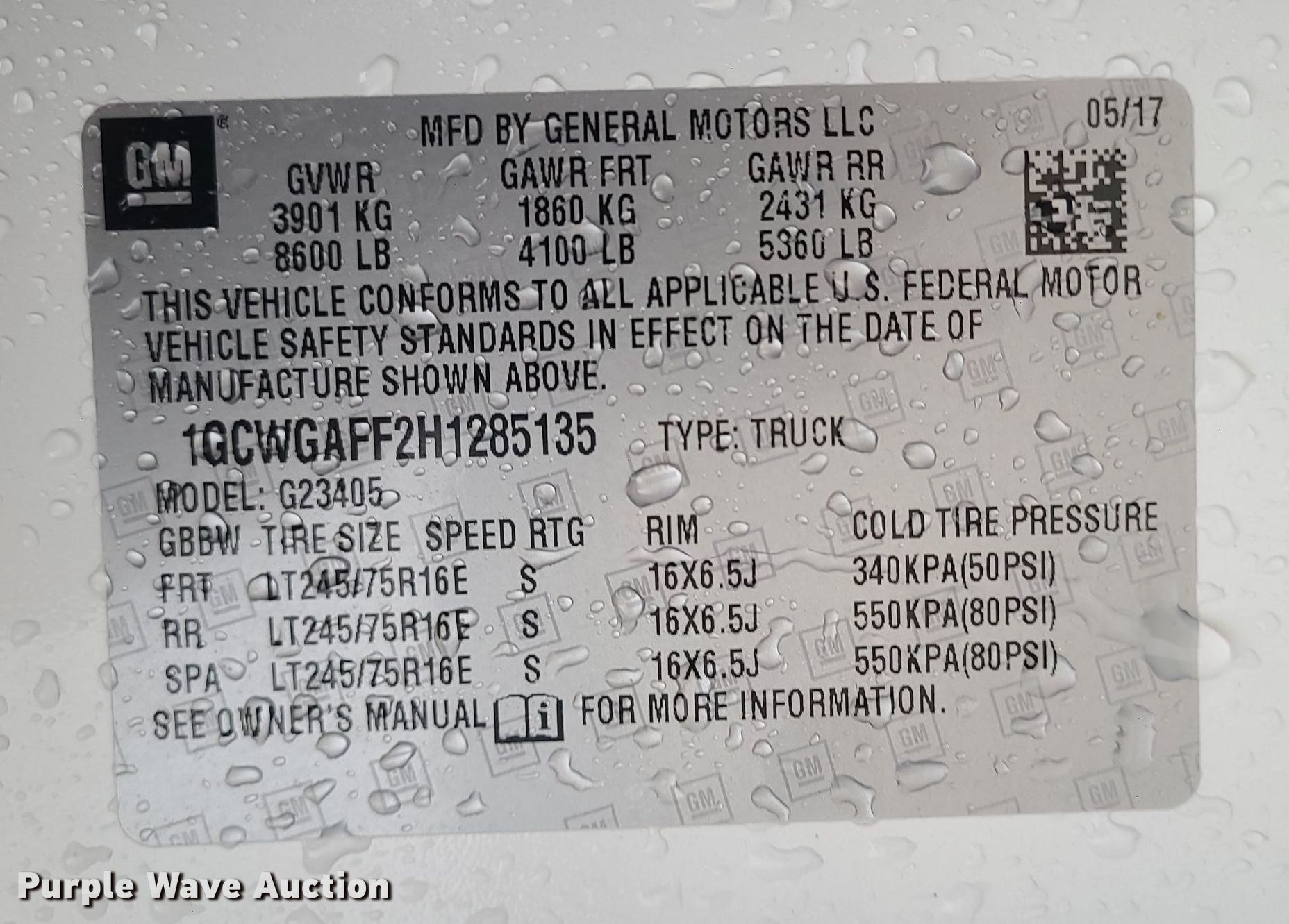 - VIN: 1GCWGAFF2H1285135