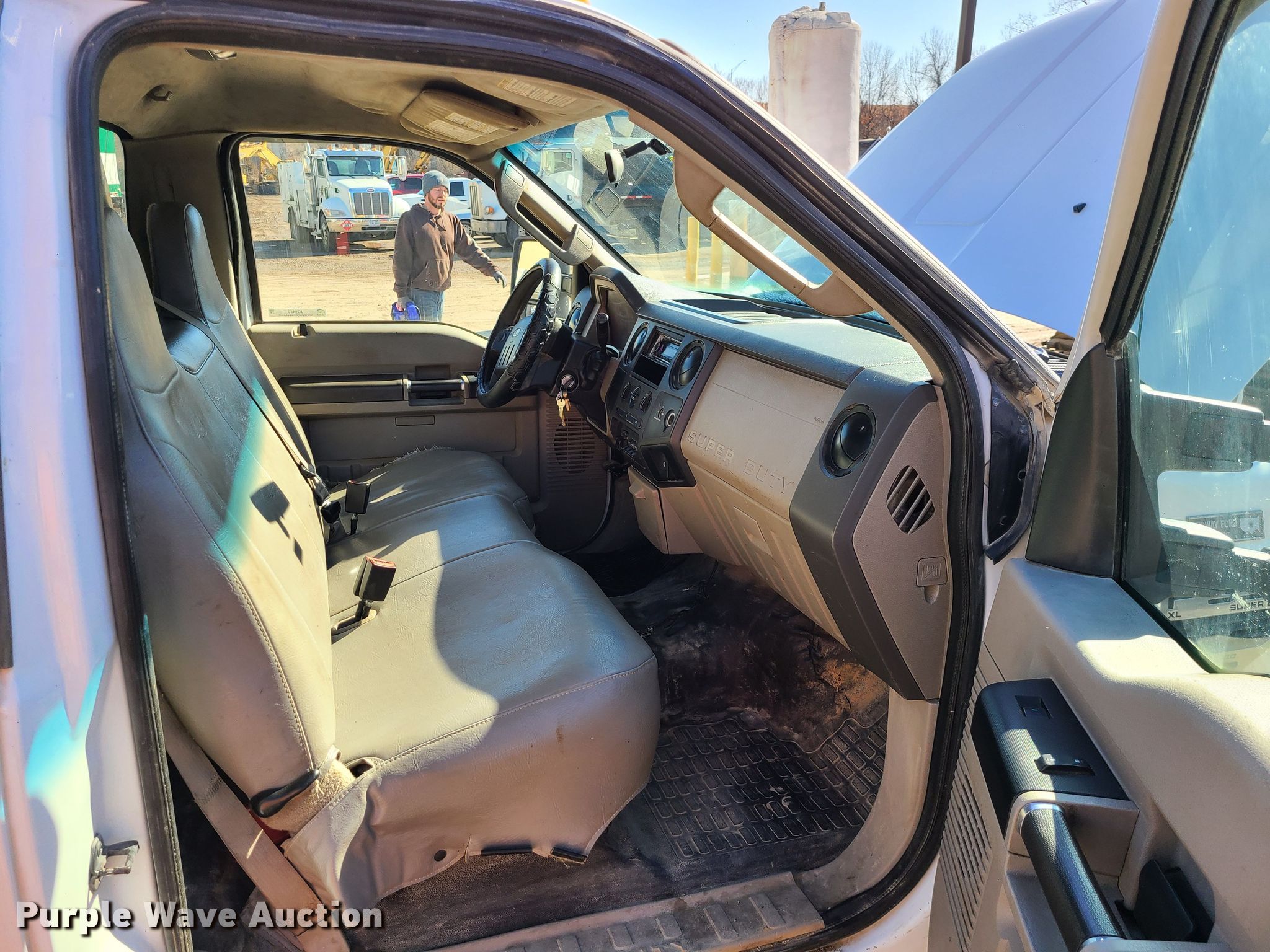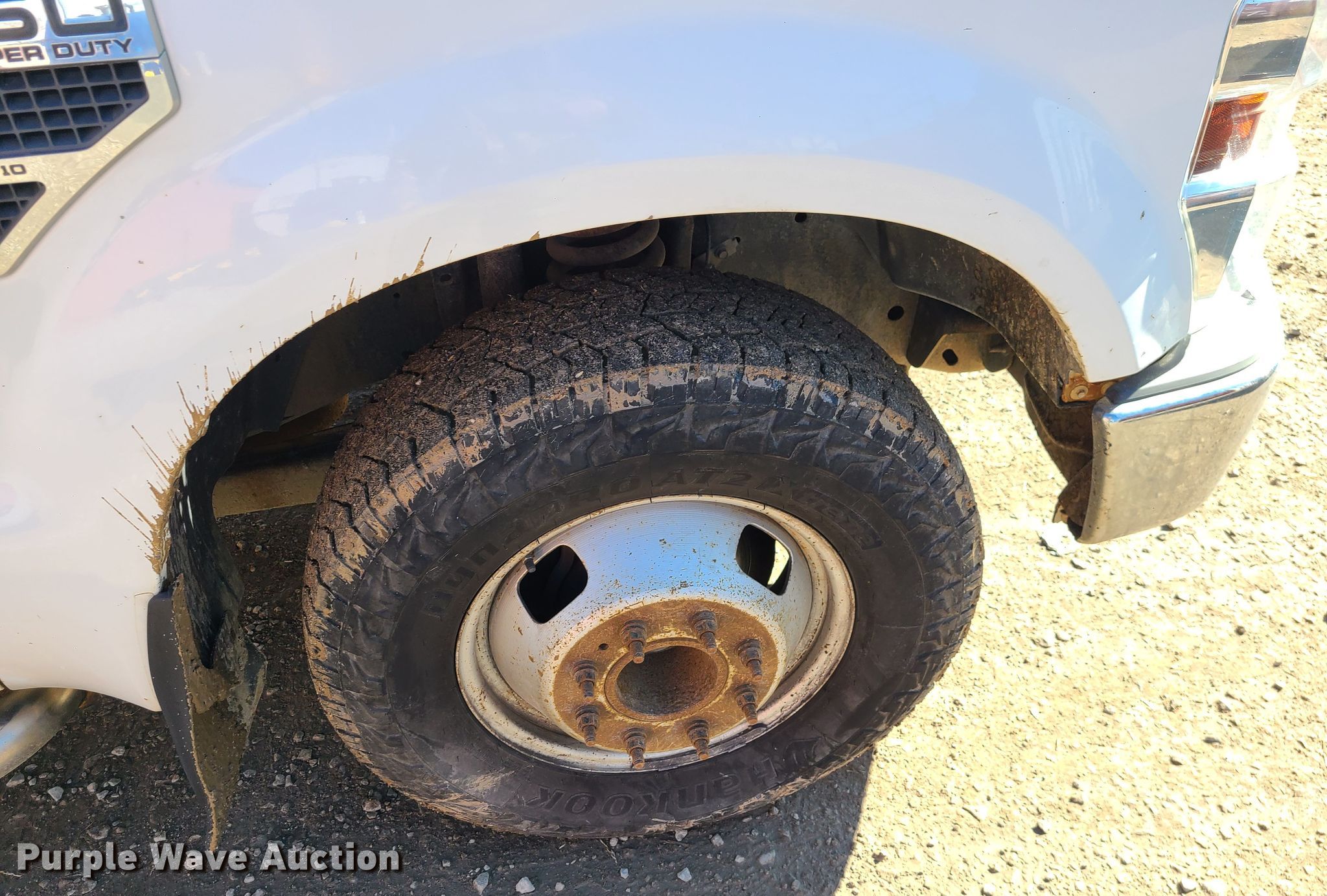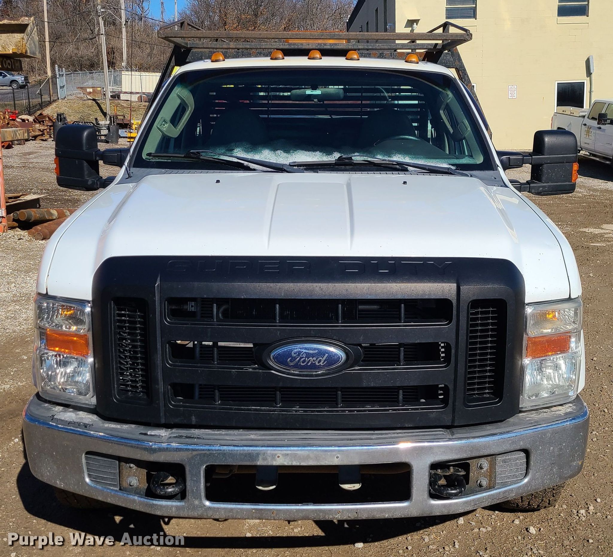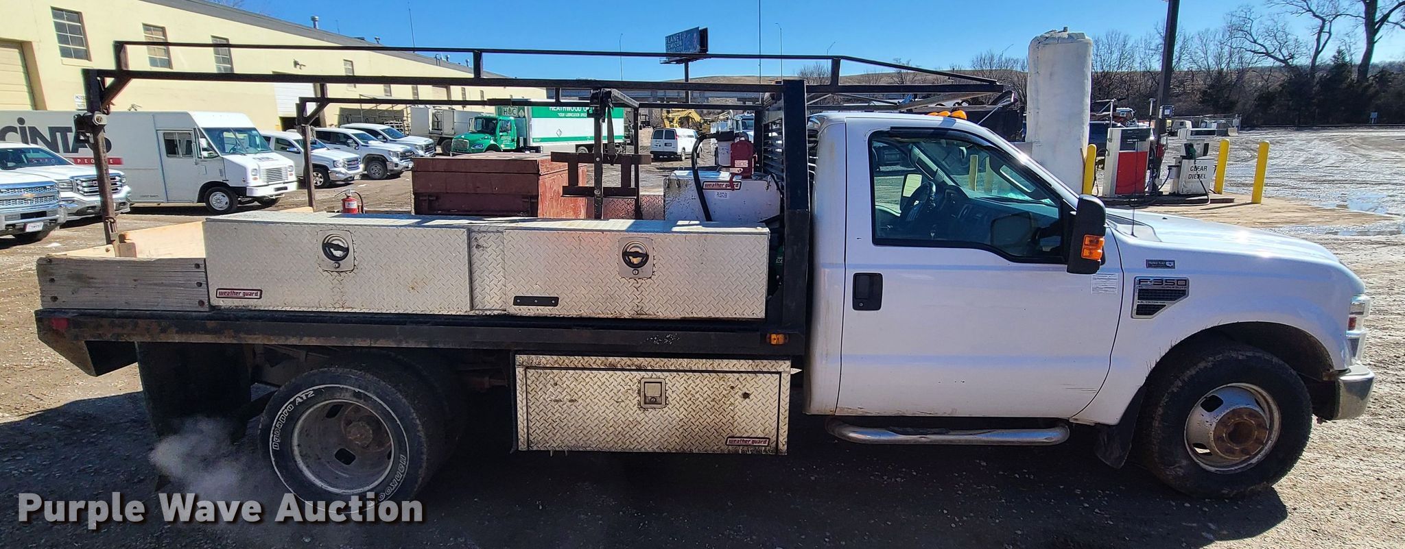 2008 Ford F350 Super Duty flatbed pickup truck. Miles: 371,460 on odometer, VIN: 1FDWF36Y88EE32286. Engine Displacement: 6.8L V10 SOHC, Cylinders: 8, Fuel type: Gas. Transmission Automatic. Interior AC, Heat, Power windows, Power locks. Features Flatbed 11' L x 94" W, Auxiliary fuel tank. Tires Size: 245/75R17. Notes Dash warning indicator: Airbag, Transmission issues, slips. Missouri title. Title distribution may be delayed up to 14 days from verification of funds. Kissick Construction Company. 8131 Indiana Ave. Kansas City, MO 64132