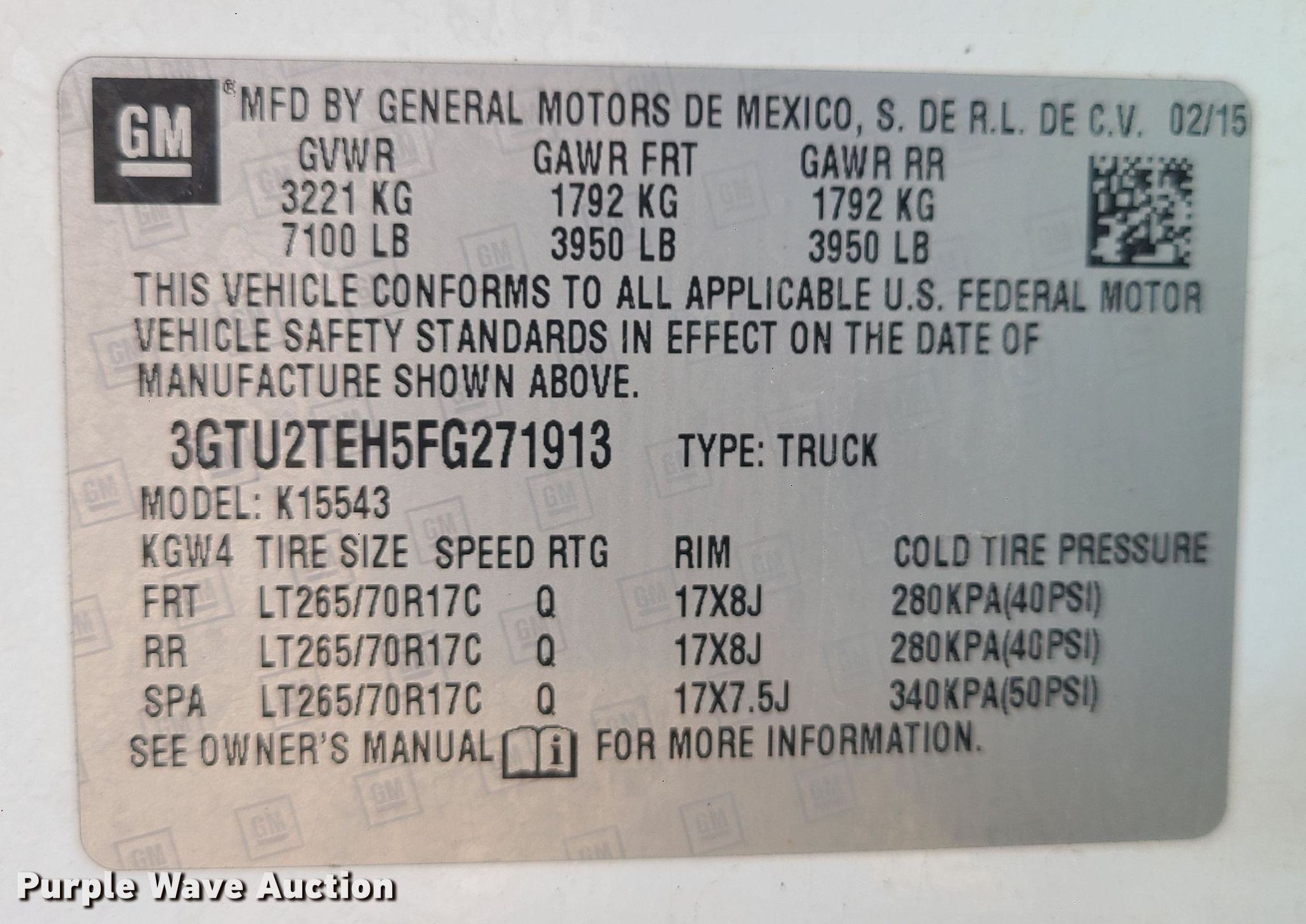 Purple Wave is selling a used 1/2 Ton Pickup or Van in Missouri. This item is a 2015 GMC Sierra 1500 Crew Cab pickup truck with the following: Miles: 228,042 on odometer, VIN: 3GTU2TEH5FG271913