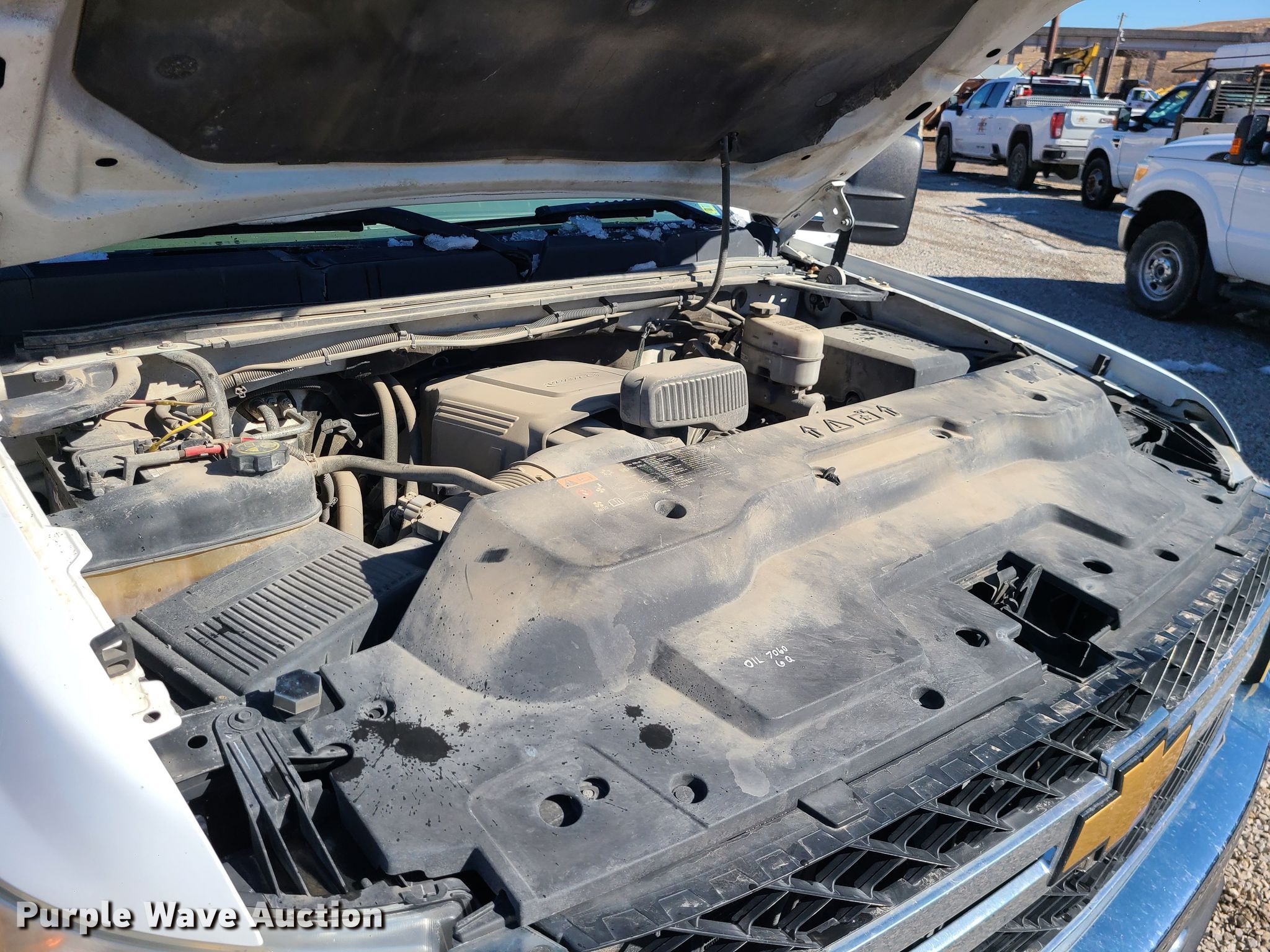 2013 Chevrolet Silverado 2500HD Crew Cab utility bed pickup truck. Miles: 213,798 on odometer, VIN: 1GC1CVCG4DF205597. Engine Displacement: 6.0L V8 OHV, Cylinders: 8, Fuel type: Gas. Transmission Automatic. Interior AC, Heat, Power windows, Power locks, Cruise control. Features Utility bed 8' L x 80" W, Auxiliary fuel tank. Tires Size: 265/70R17. Notes Dash warning indicator: Check engine, TPMS, ABS. Missouri title. Title distribution may be delayed up to 14 days from verification of funds. Kissick Construction Company. 8131 Indiana Ave. Kansas City, MO 64132