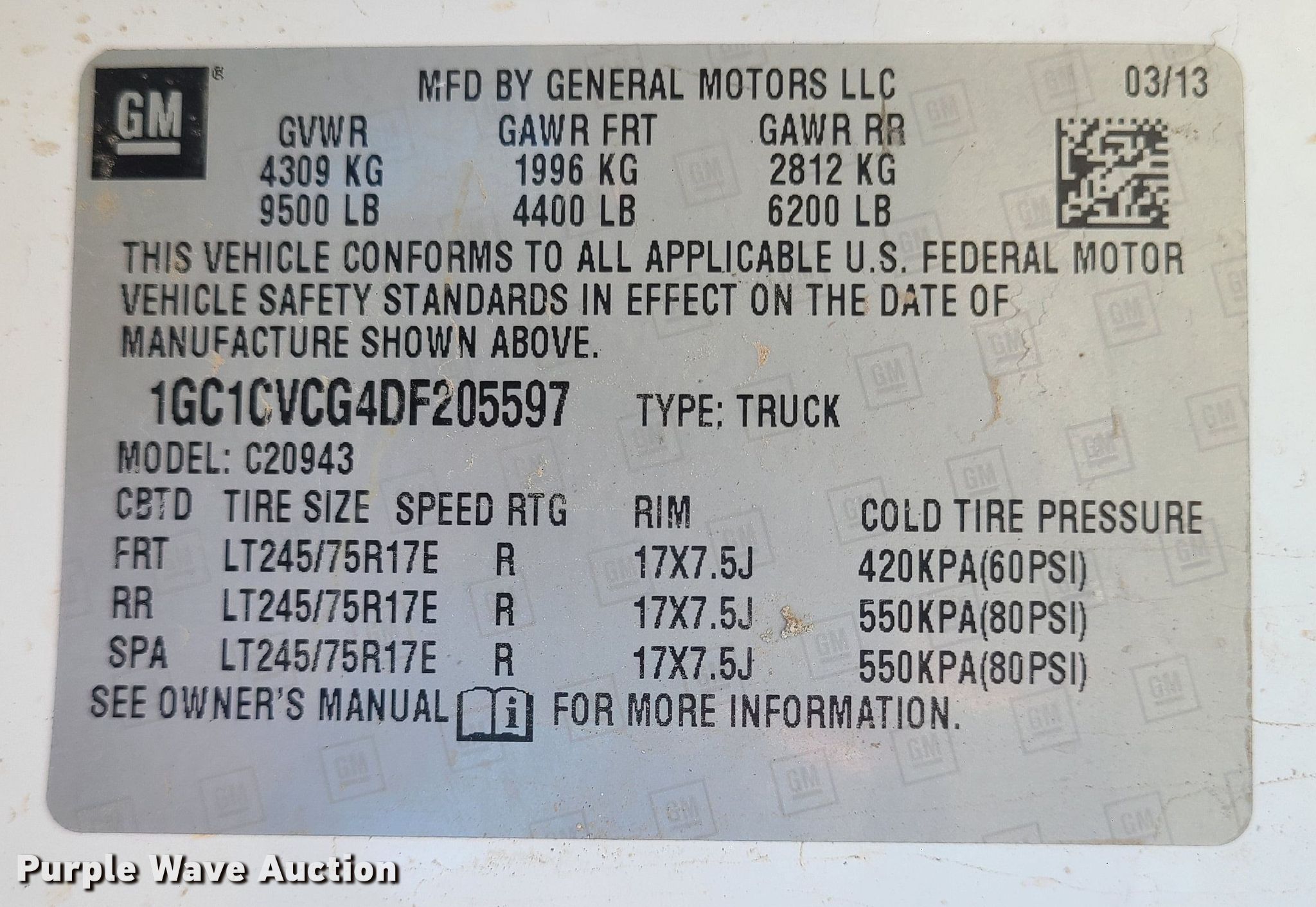 - VIN: 1GC1CVCG4DF205597