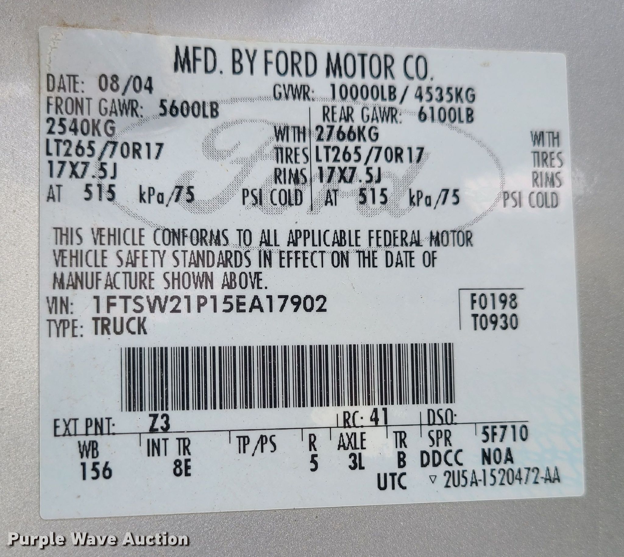 Purple Wave is selling a used 3/4 or 1 Ton Pickup or Van in Missouri. This item is a 2005 Ford F250 Super Duty Crew Cab pickup truck with the following: Miles: 170,006 on odometer, VIN: 1FTSW21P15EA17902
