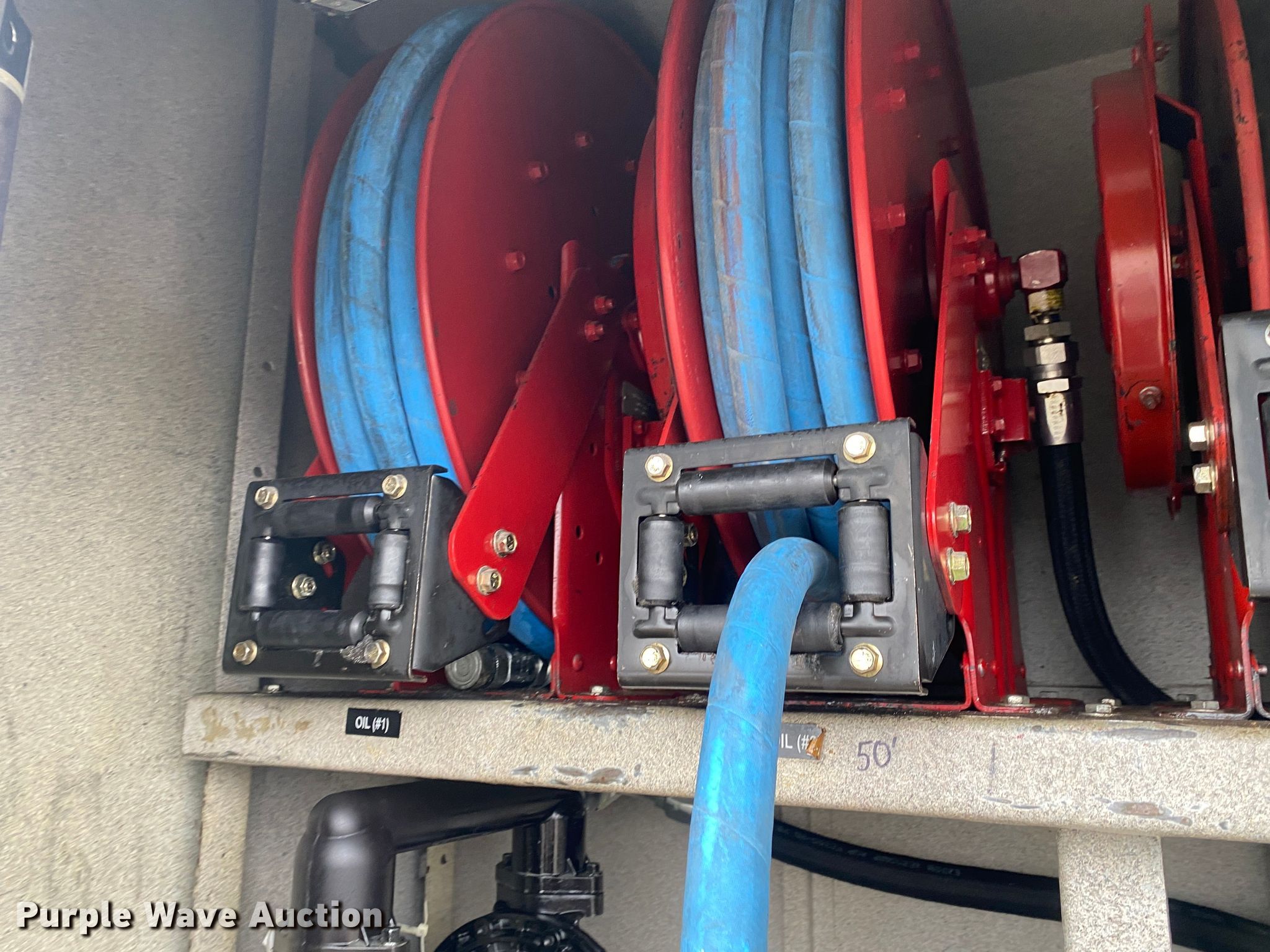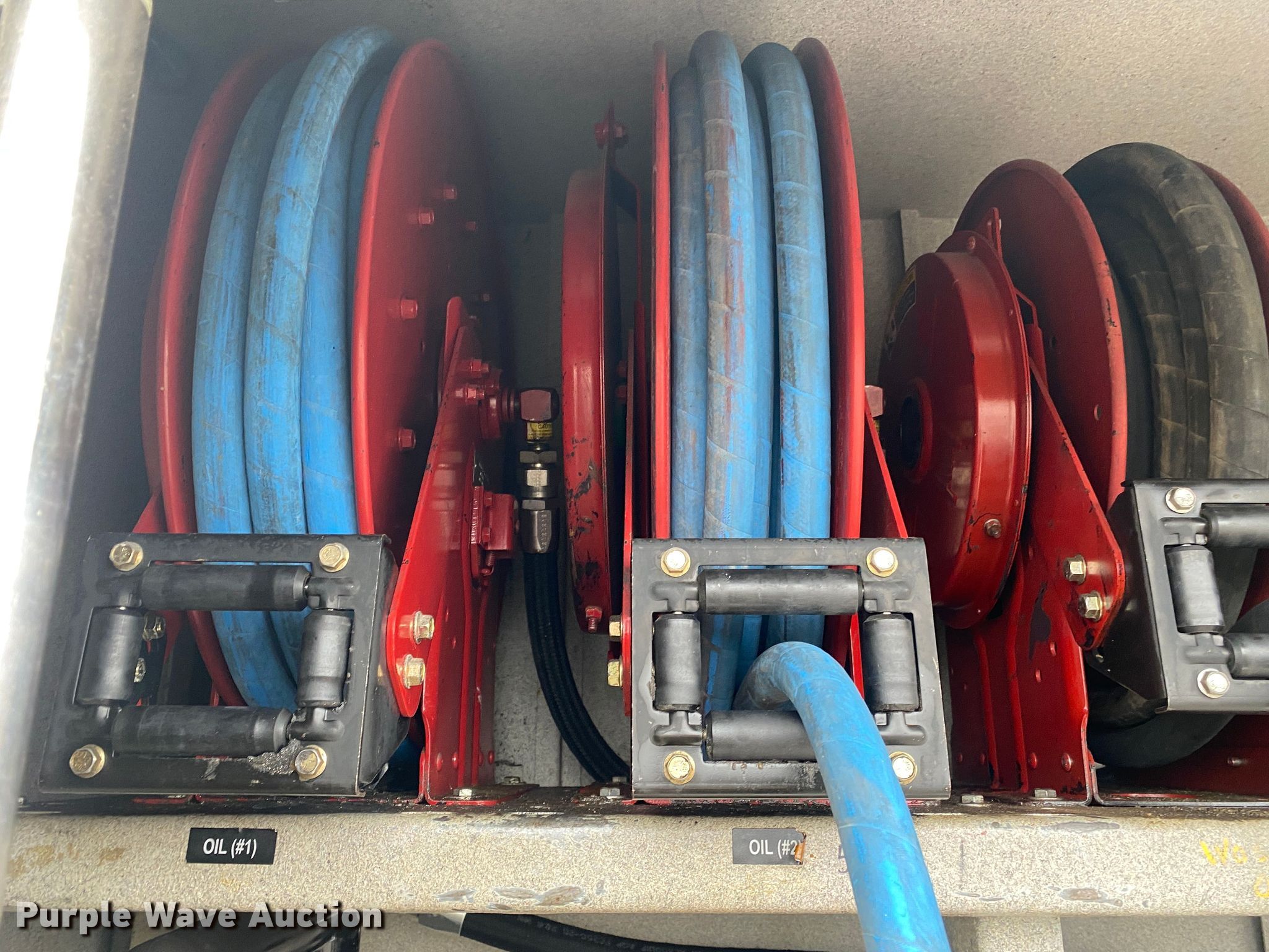 2011 Ford F750 Super Duty fuel / lube truck. Miles: 59,453 on odometer, VIN: 3FRXF7FC5BV550508. Engine Cummins ISB, Displacement: 6.7L, Cylinders: 6, Fuel type: Diesel, HP: 240. Transmission Manual, Speed: 6. Chassis Axles: Single, Suspension: Spring, Brakes: Air, PTO, GVWR: 33,000 lbs, Wheelbase: 194". Interior AC, Heat, Cruise control, Auxiliary controls. Features Bed / tank 16' 6" L x 94" W, Compartments: 6, Hose reels: 5, Oil/lube reservoirs Hydraulic fluid, Motor oil, Used oil.. Tires Size: 11R22.5. Oklahoma title. Title distribution may be delayed up to 14 days from verification of funds. 15107 North 137th East Avenue. Collinsville, OK 74021