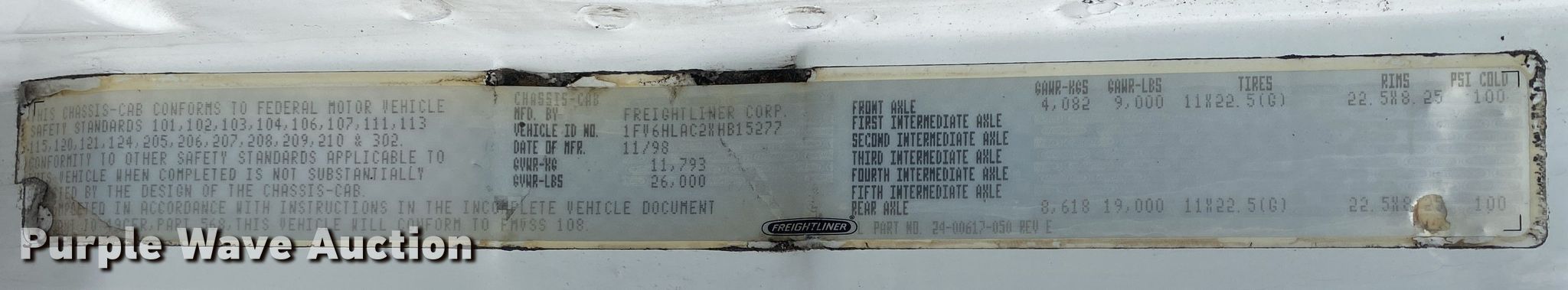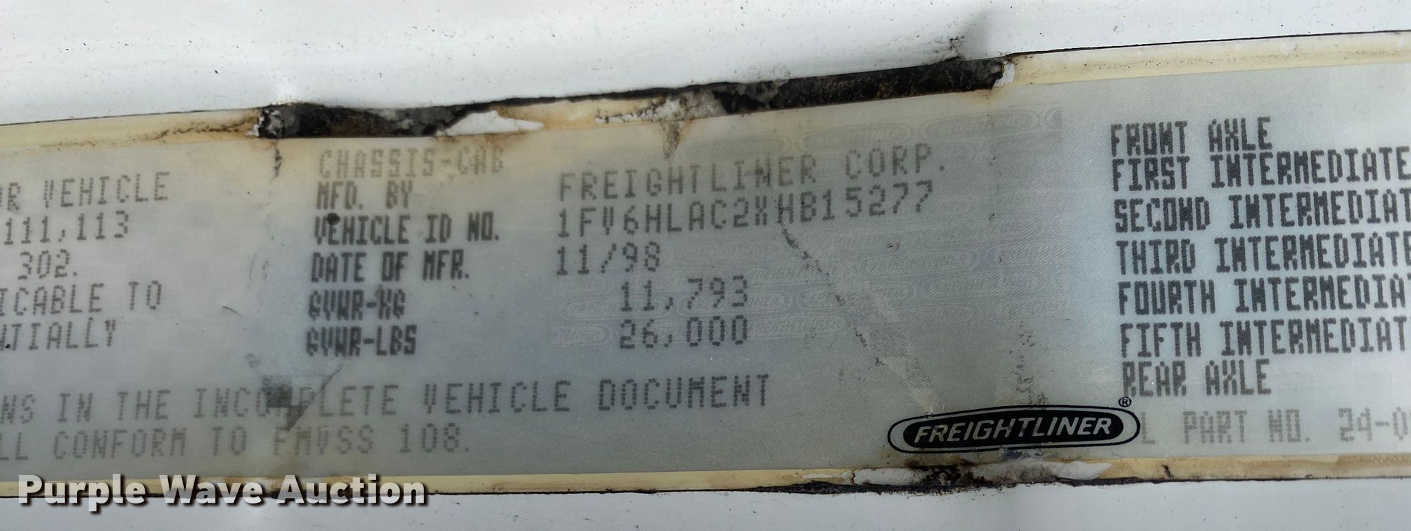Purple Wave is selling a used Box Truck in Oklahoma. This item is a 1999 Freightliner FL70 box truck with the following: Miles: 198,418 on odometer, VIN: 1FV6HLAC2XHB15277