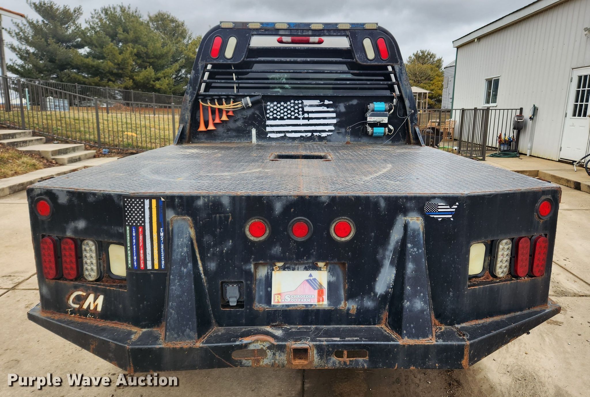 2008 GMC Sierra 2500HD Crew Cab flatbed pickup truck. Miles: 298,600 on odometer, VIN: 1GTHK23618F192482. Engine Displacement: 6.6L V8 16V, Cylinders: 8, Fuel type: Diesel. Transmission Allison, Automatic, Four wheel drive. Interior AC, Heat, Seat: Power driver, Heated mirrors, Power windows, Power locks, Cruise control. Features Flatbed CM, 7' L x 80" W, Hitch: Gooseneck. Tires Size: 36x12.50-16.5. Notes Contents in flatbed toolboxes not included, Dash warning indicator: Check engine, TPMS, Dead battery, Speedometer glass missing, Possible injector issues. Missouri title. Title distribution may be delayed up to 14 days from verification of funds. Schroeder Sod Farms. 5354 Missouri 94. Saint Charles, MO 63301