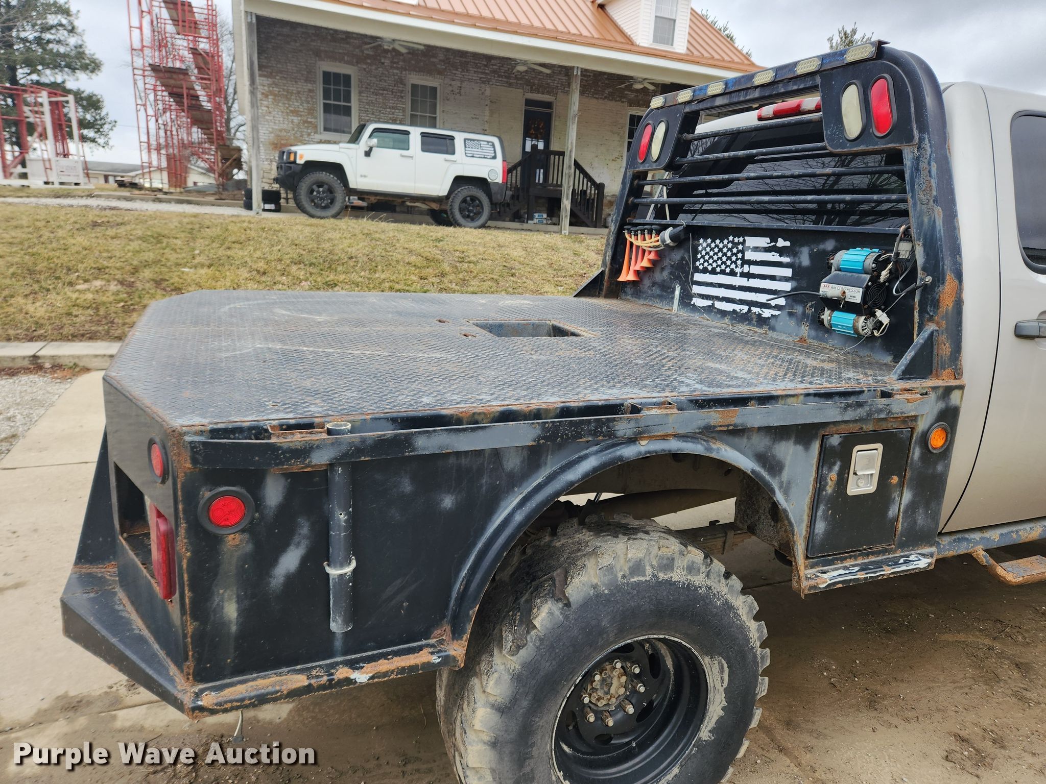 This 2008 GMC Sierra 2500HD Crew Cab flatbed pickup truck will sell to the highest bidder regardless of price.