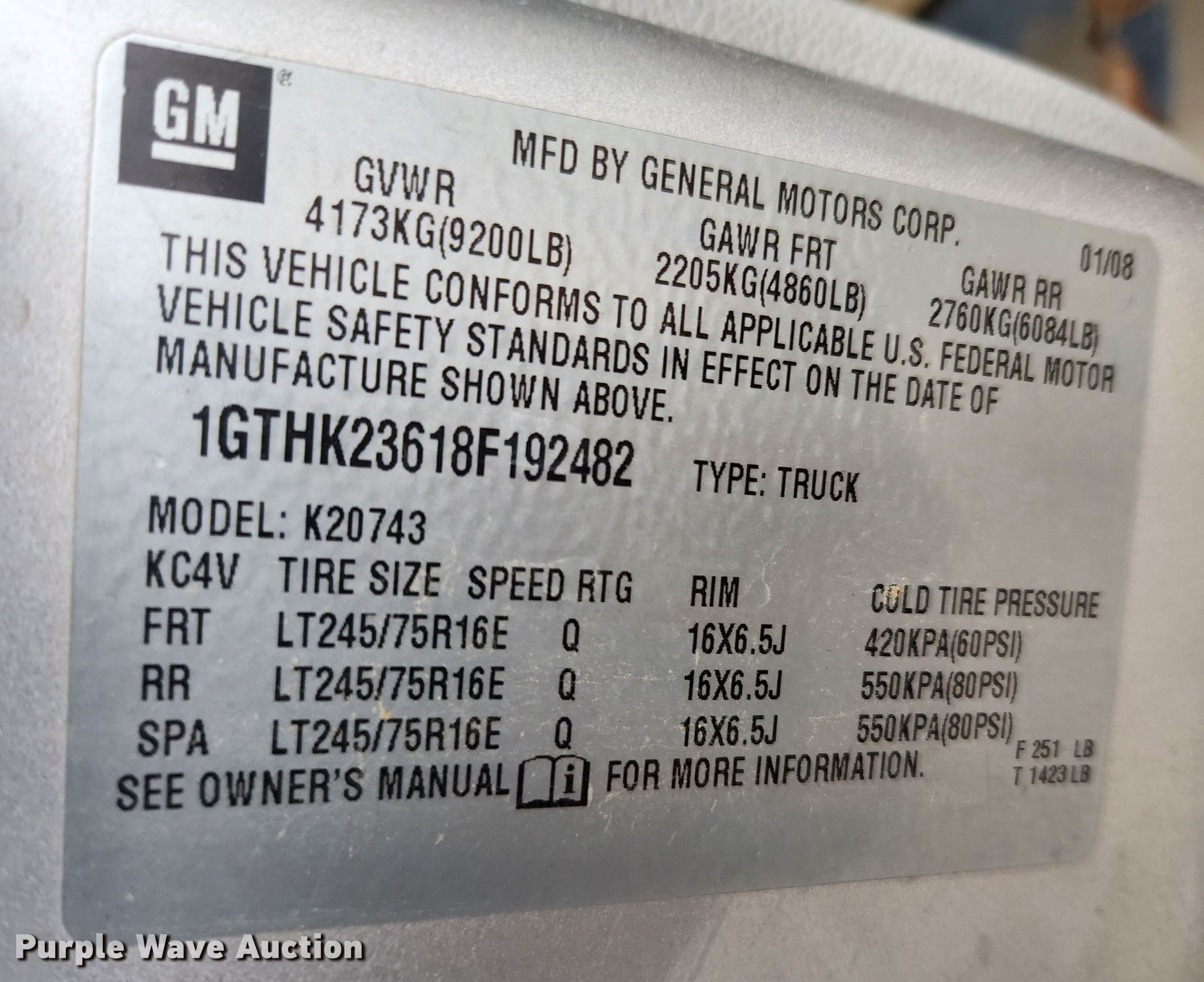 - VIN: 1GTHK23618F192482