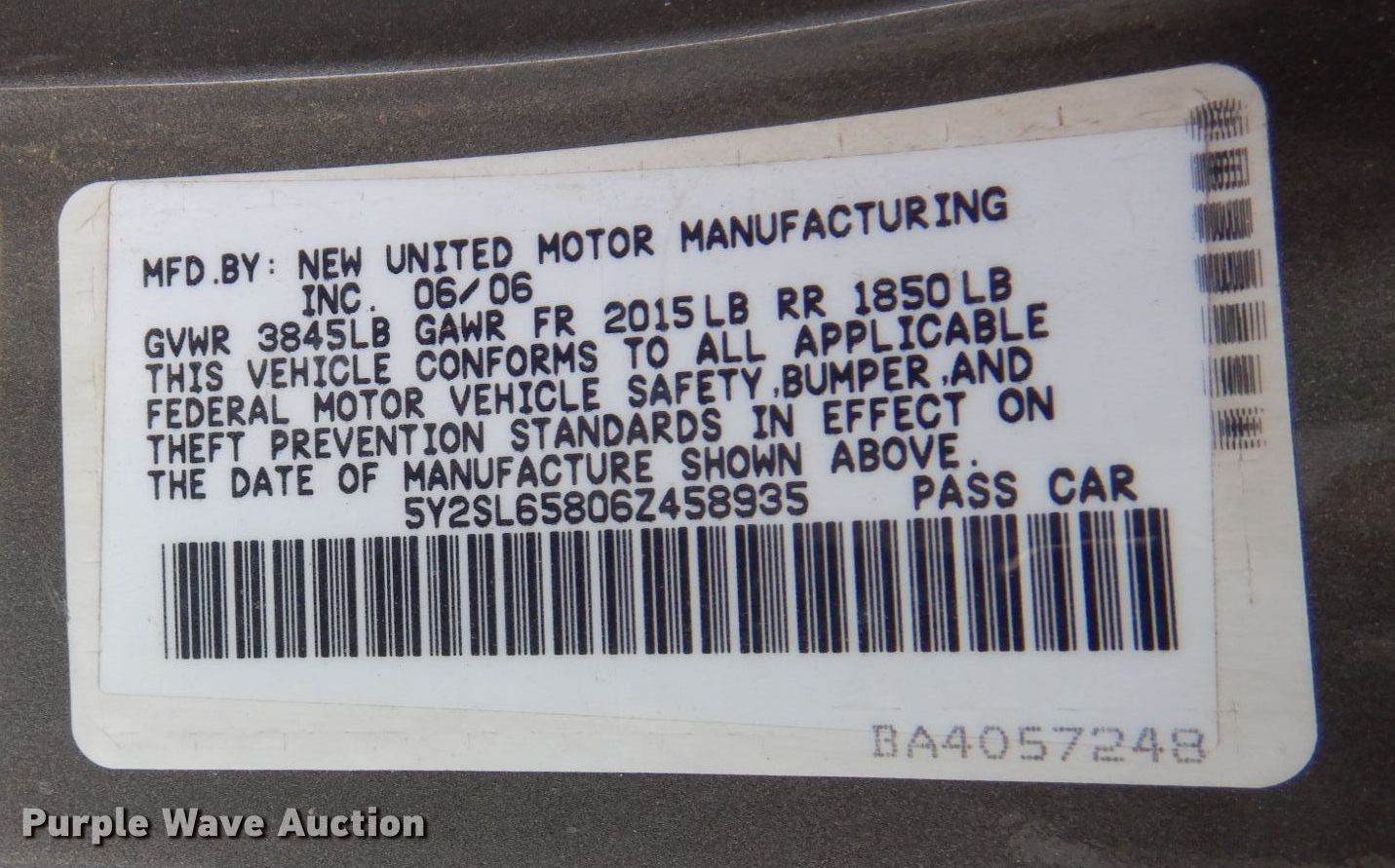 • VIN: 5Y2SL65806Z458935