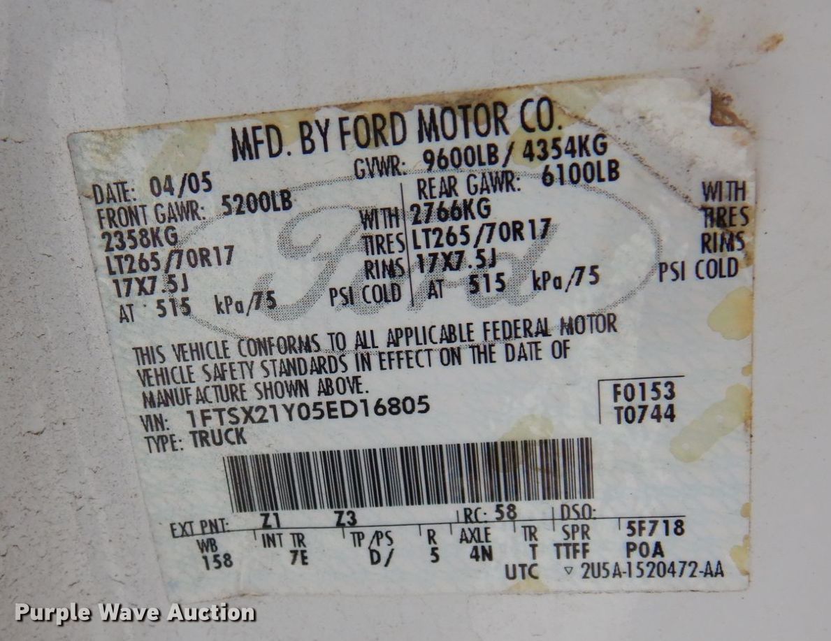 Purple Wave is selling a used 3/4 or 1 Ton Pickup or Van in Minnesota. This item is a 2005 Ford F250 Super Duty SuperCab pickup truck with the following: Miles: 140,992 on odometer, VIN: 1FTSX21Y05ED16805