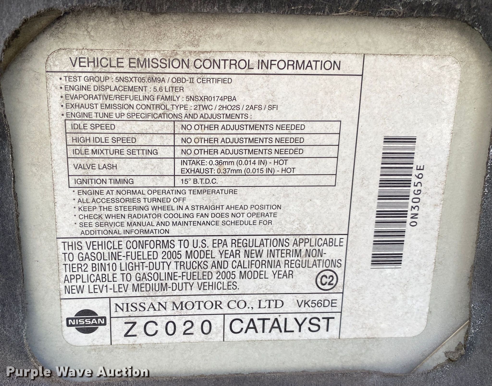 Take a look at this used 2005 Nissan Titan Crew Cab pickup truck being sold on March 15th, 2023 in the SOLD! March 15 Vehicles and Equipment Auction made by Nissan. Take a look at all of the item information below or take a look at similar auctions for Pickups and Vans.