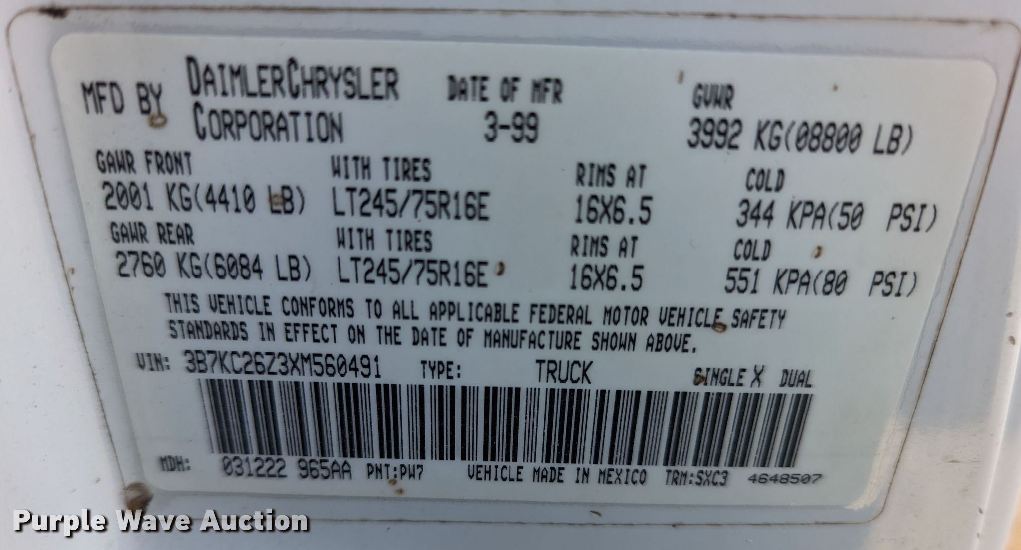 Purple Wave is selling a used 3/4 or 1 Ton Pickup or Van in Oklahoma. This item is a 1999 Dodge Ram 2500 pickup truck with the following: Miles: 139,812 on odometer, VIN: 3B7KC26Z3XM560491