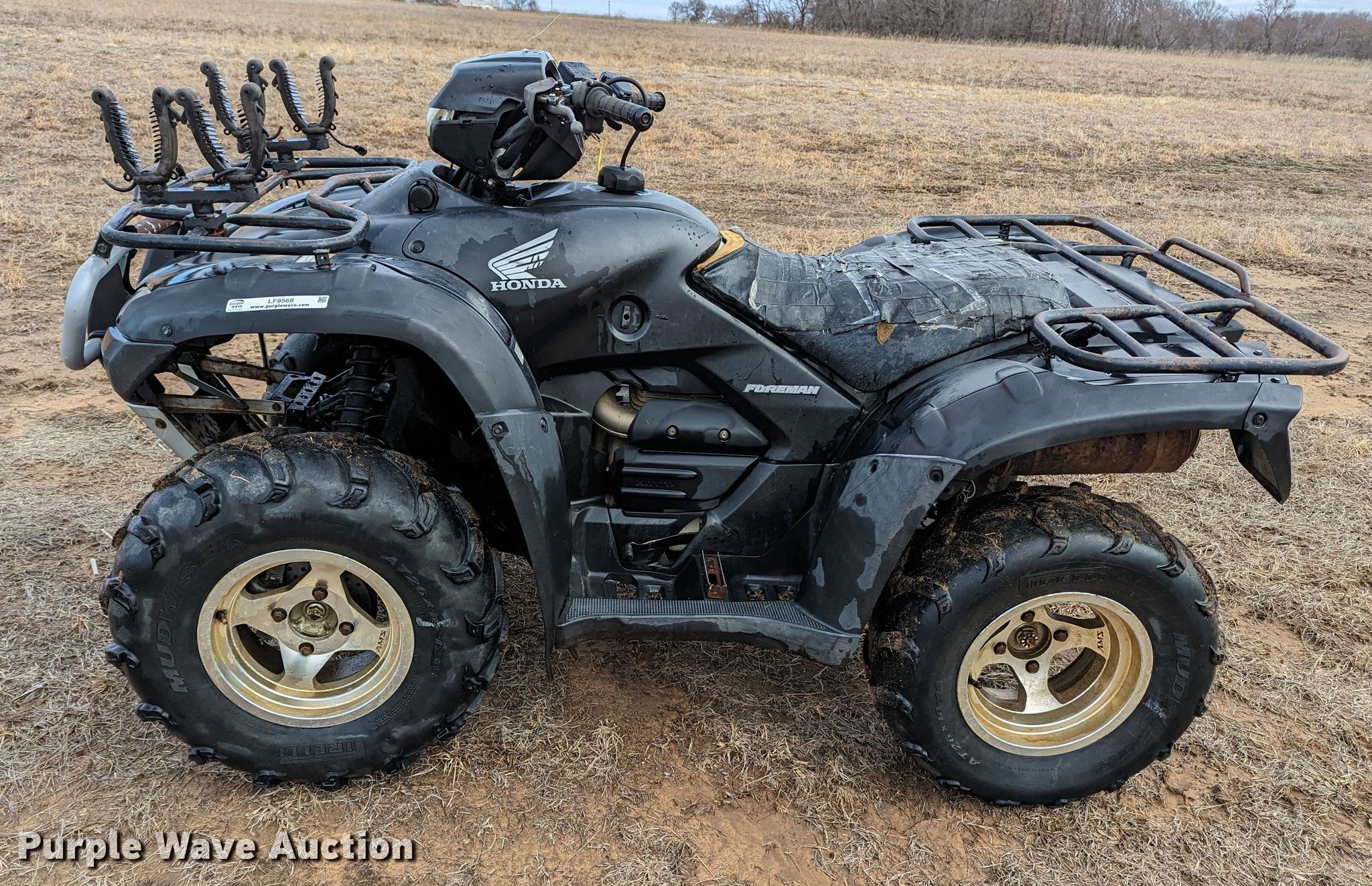 Purple Wave is selling a used ATV in Oklahoma. This item is a 2007 Honda Foreman ATV with the following: Miles: 3,627 on odometer, Hours: 1,028 on meter, VIN: 1HFTE310074203980, Claim # 2-814093