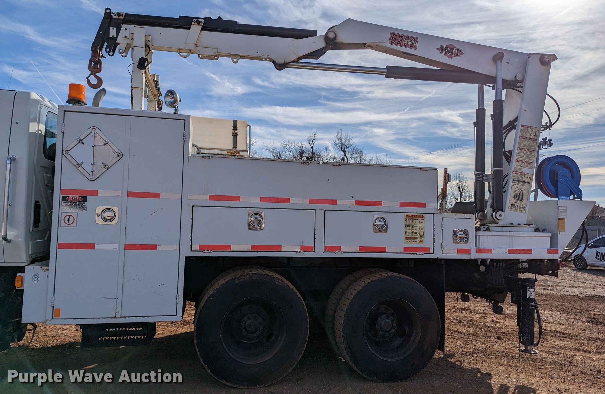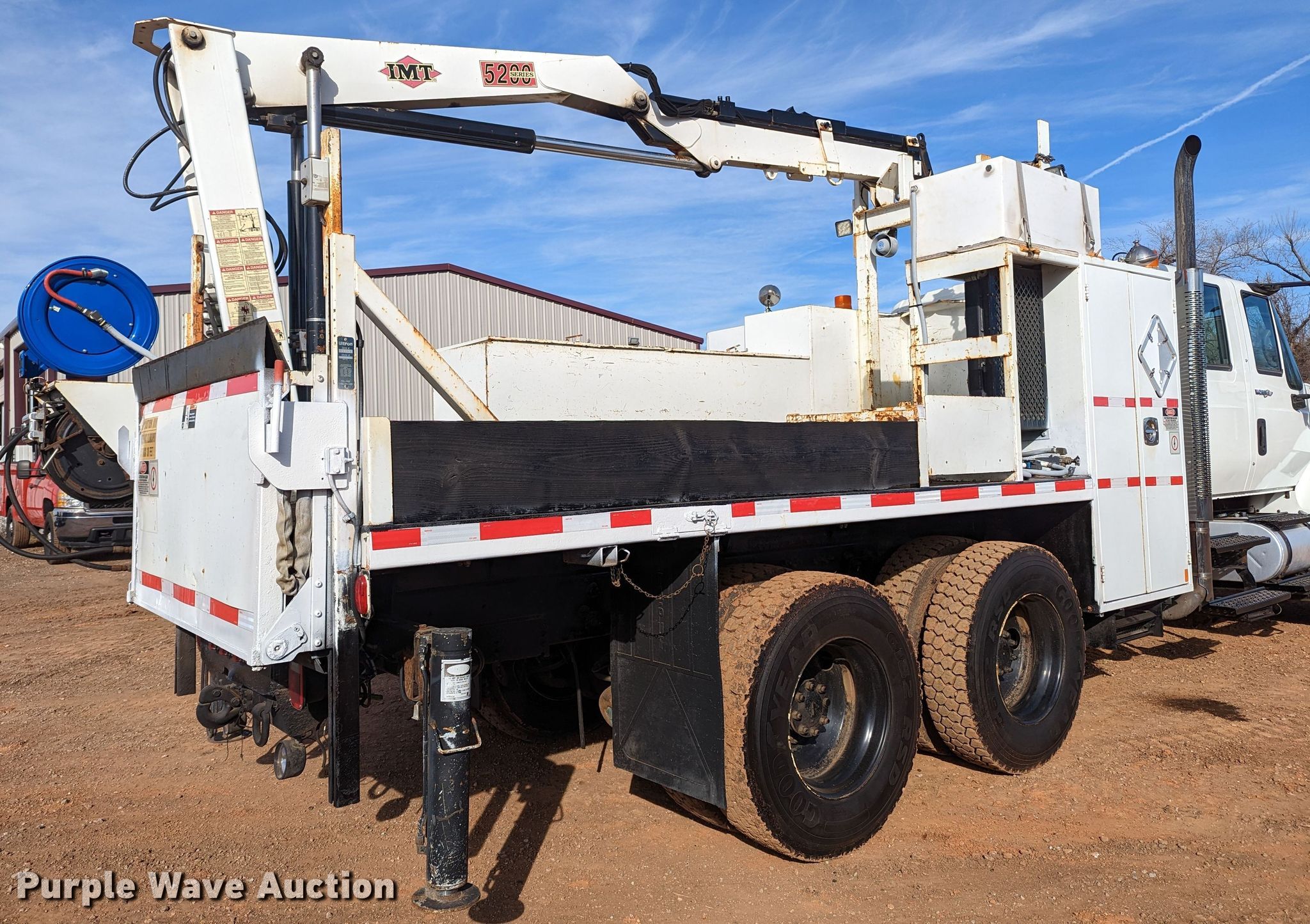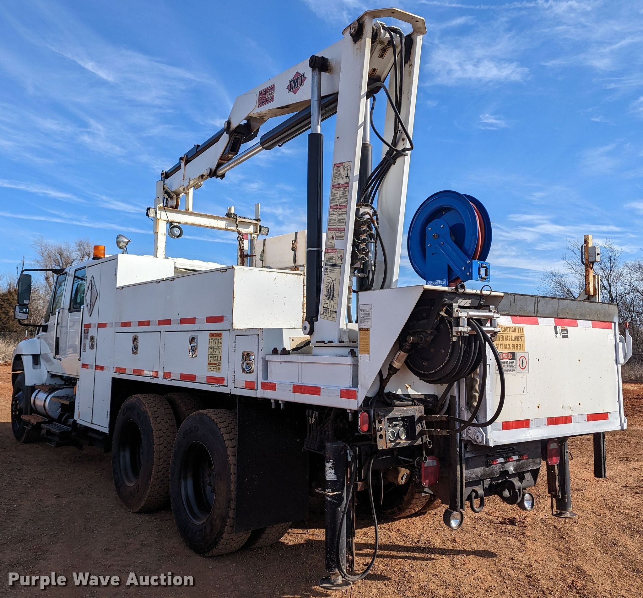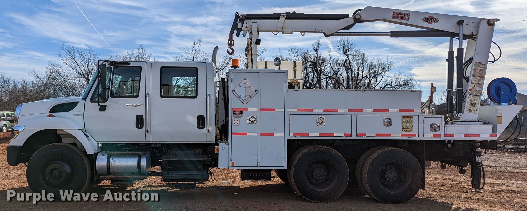 2009 International 7400 utility / service truck. Miles: 19,659 on odometer, Hours: 2,373 on meter, VIN: 1HTWGAAR99J110547. Engine International Maxxforce DT, Displacement: 7.6L, Cylinders: 6, Fuel type: Diesel. Transmission Eaton Fuller, Manual, Speed: 8. Chassis Axles: Tandem, Suspension: Spring, Brakes: Air, GVWR: 54,000 lbs. Interior AC, Heat, Cruise control, Brake controller. Features Bed 16' L x 96" W, Hose reels, Crane IMT 5200, Maximum boom length: 35' Maximum lift capacity: 8,100 lbs, Ultron end gate lift. Tires Size: 11R22.5. Oklahoma title. Seller is an Oklahoma licensed motor vehicle dealer. Title will be assigned and distributed by the dealer. Please contact the seller for distribution questions. 1401 Lakeshore Dr. Yukon, OK 73099