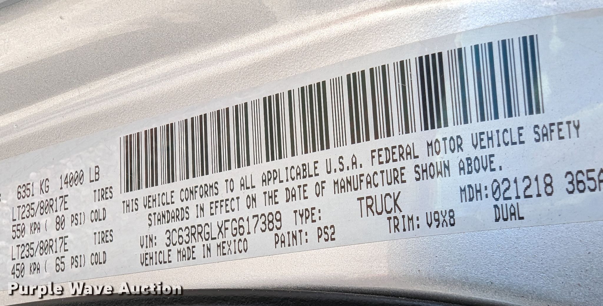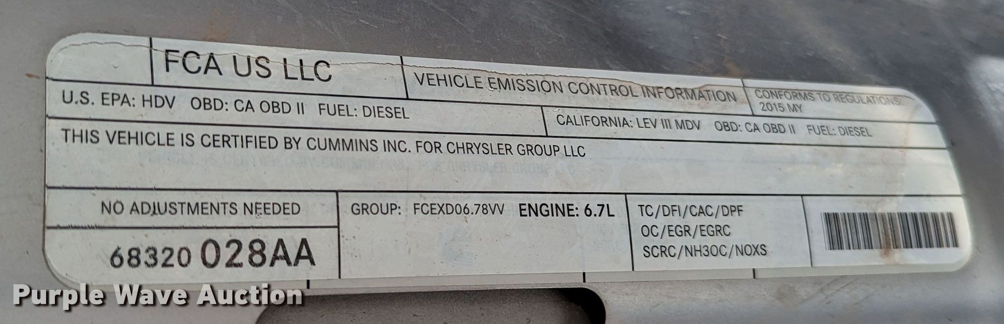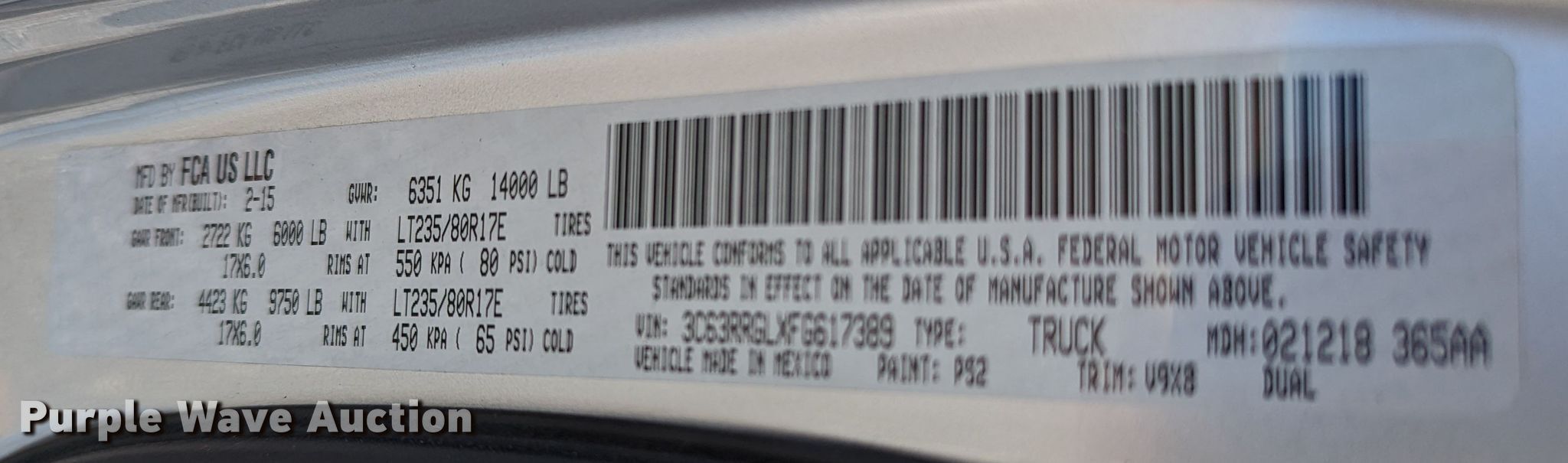 Purple Wave is selling a used 3/4 or 1 Ton Pickup or Van in Oklahoma. This item is a 2015 Dodge Ram 3500HD Crew Cab flatbed pickup truck with the following: Miles: 212,042 on odometer, VIN: 3C63RRGLXFG617389