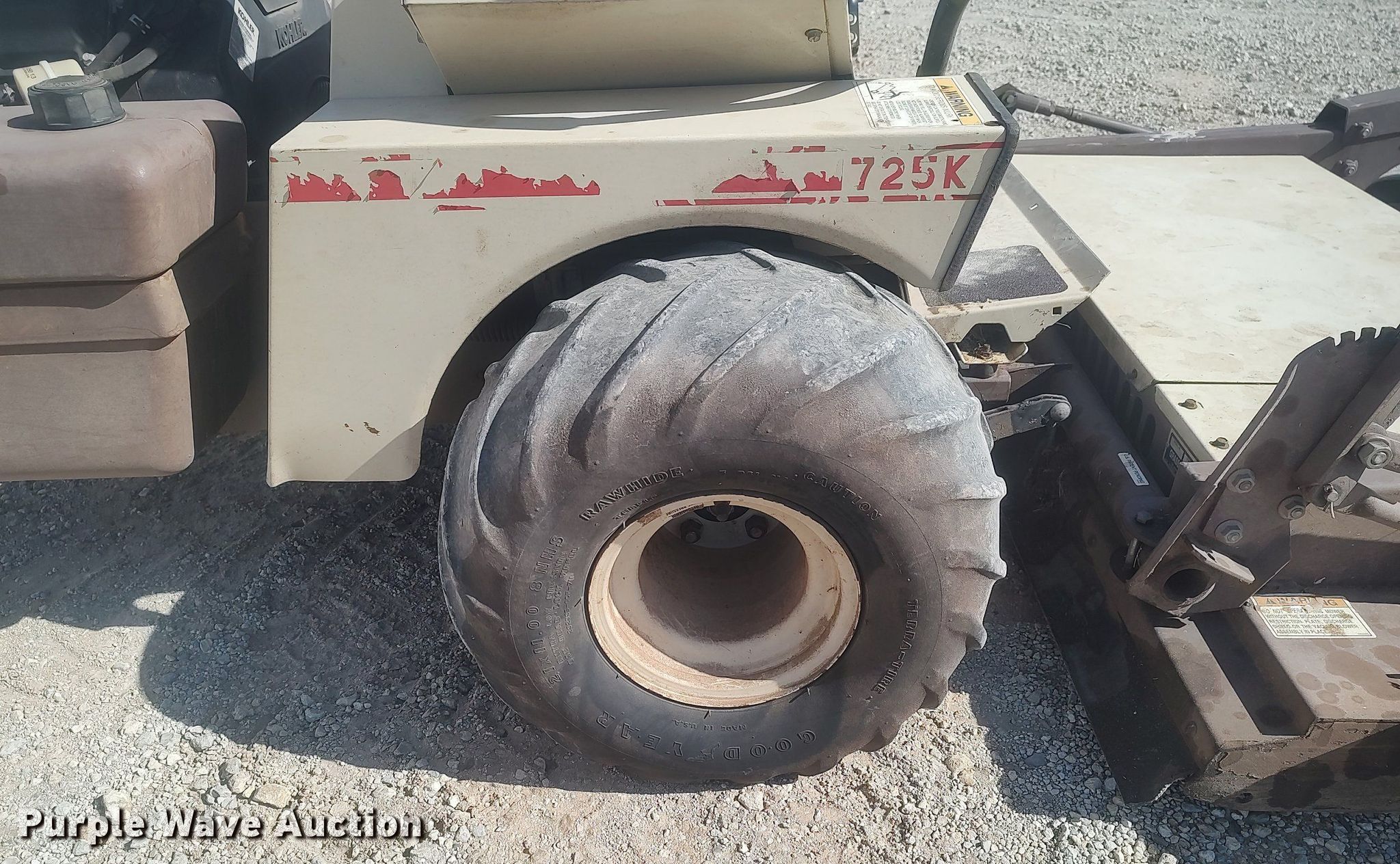 Grasshopper 725K ZTR lawn mower. Hours: 1,074 on meter, Cutting width: 60", Serial: 482367. Engine Kohler Command PRO, Displacement: 747 cc, Cylinders: 2, Fuel type: Gas. Transmission Hydrostatic. Tires Front: 9x3.50-4, Rear: 21x11.00-8. J7 LLC. Anthony, KS 67003