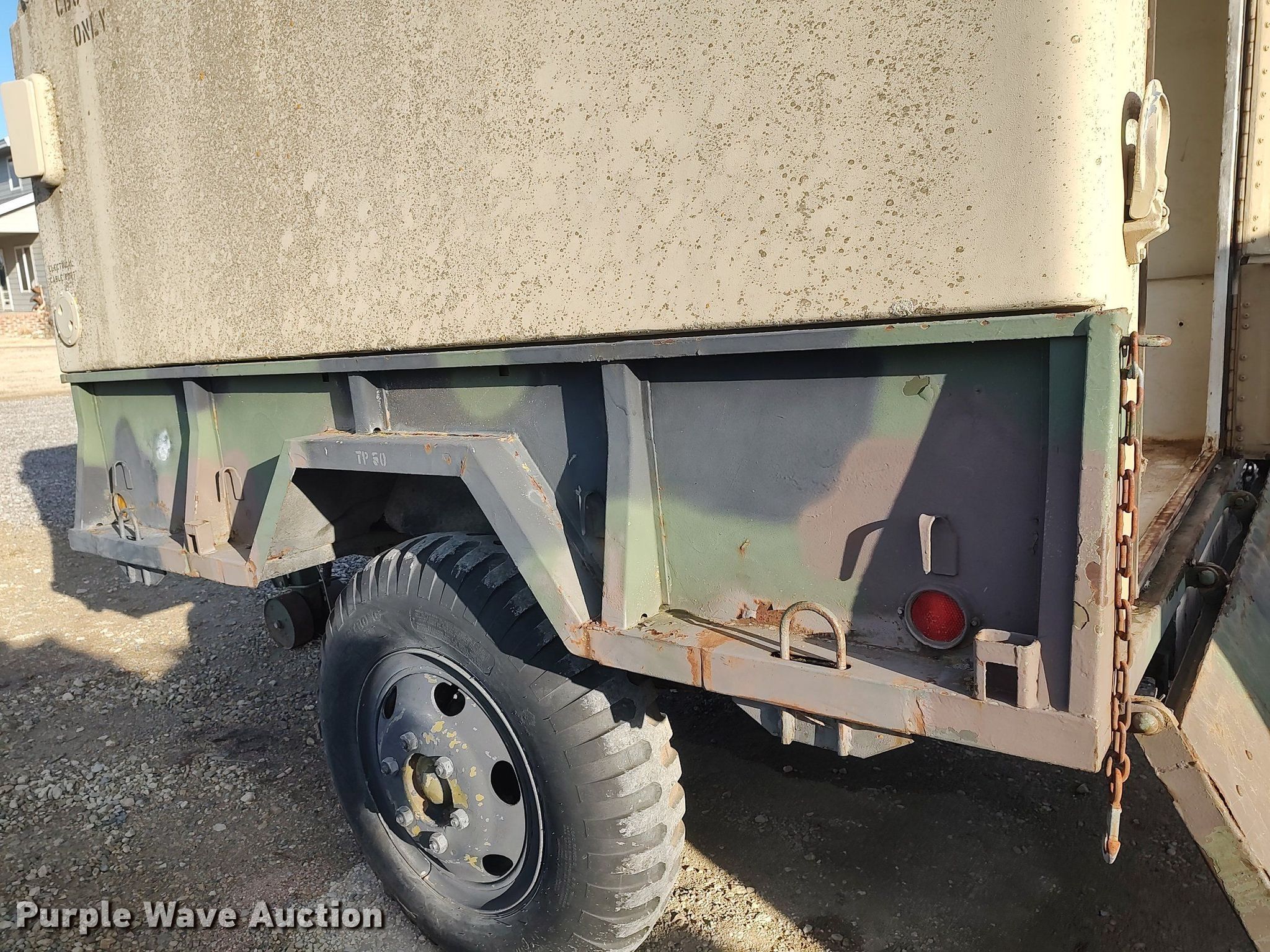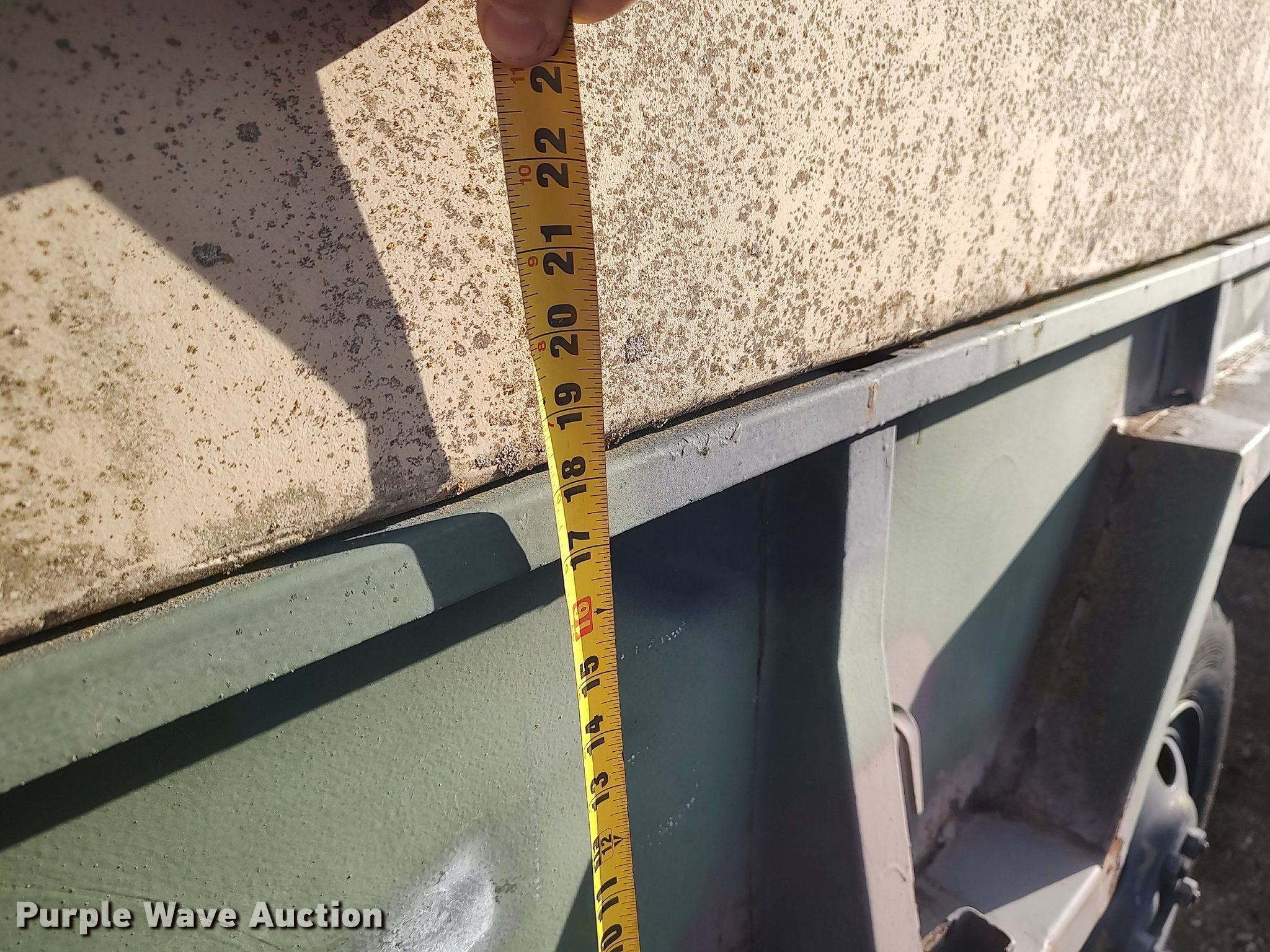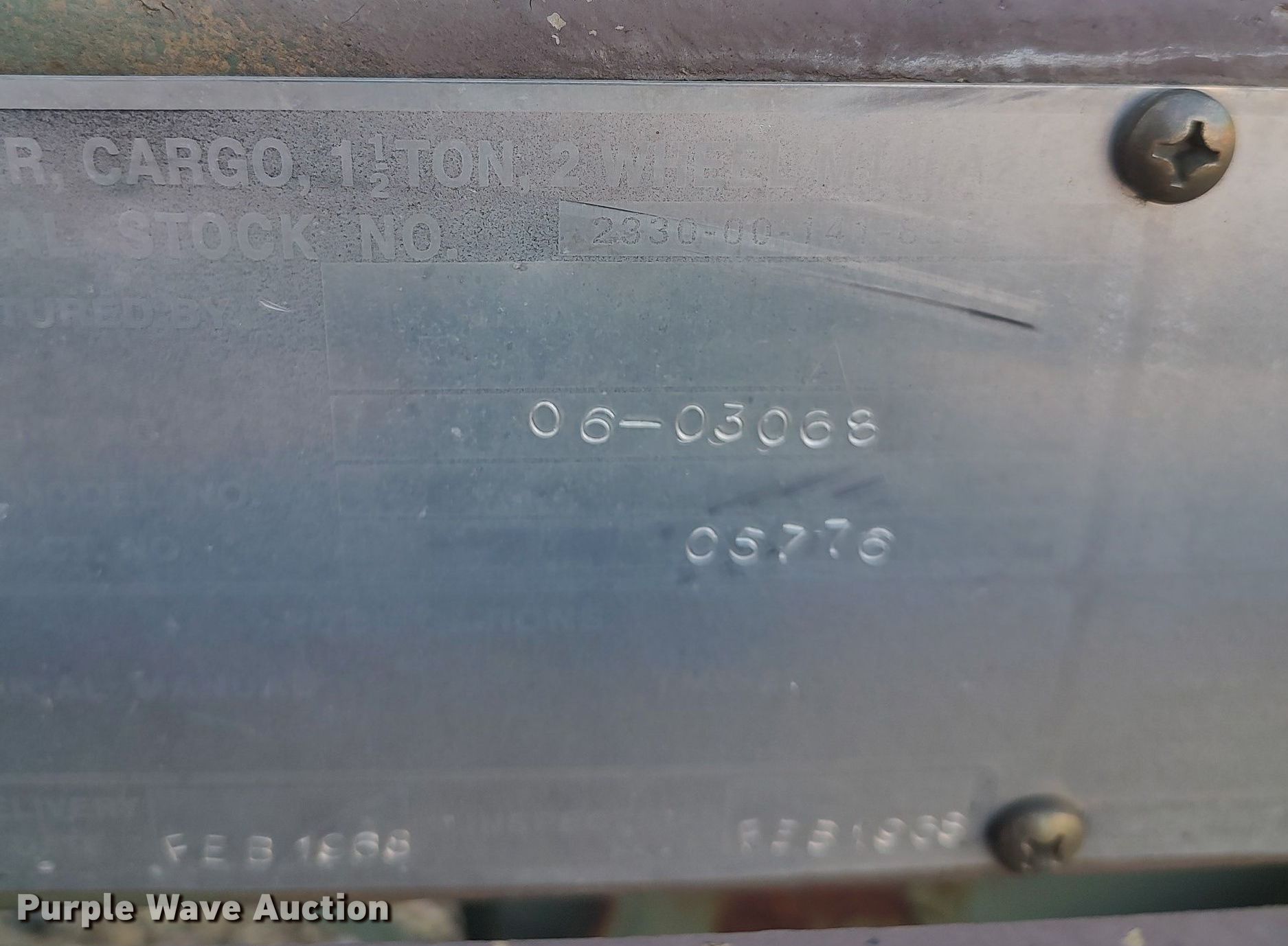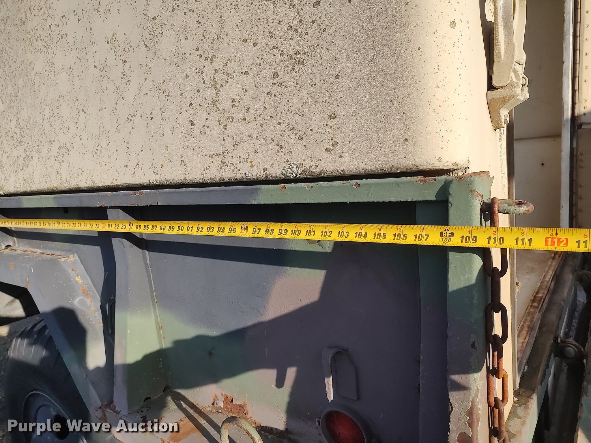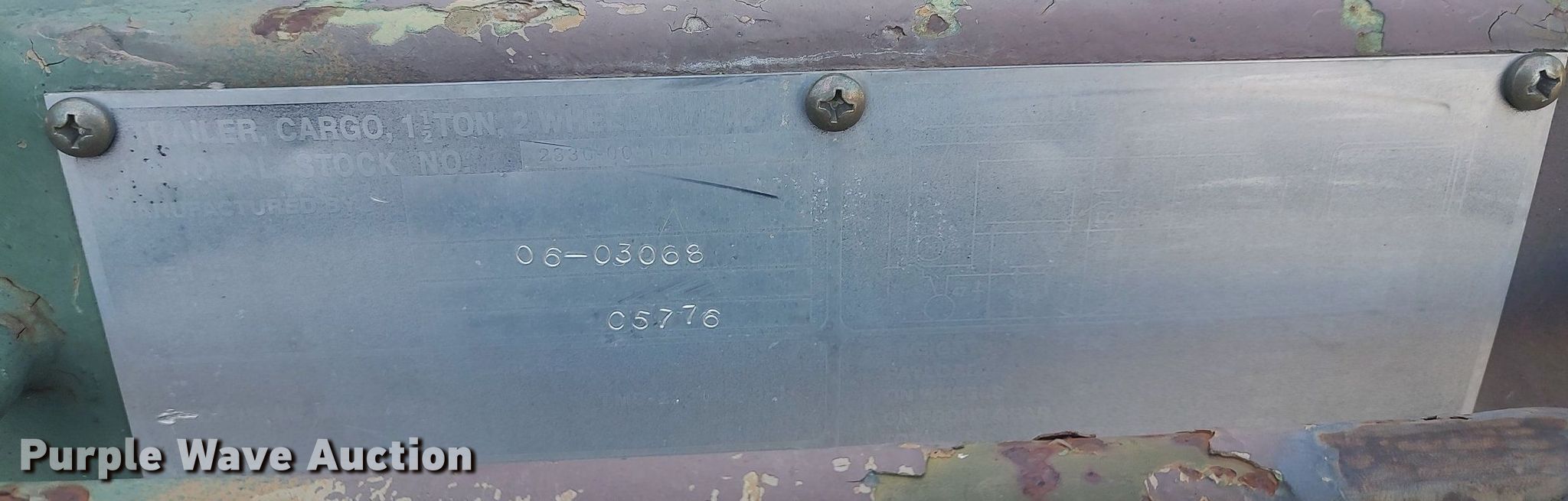 1968 enclosed cargo trailer. Dimensions. Body: 9' L x 76" W. Features Deck type: Steel. Chassis Hitch: Pintle, Suspension: Spring. Tires Steel wheels, Size: 9.00-20. Transfer of ownership documentation will be a bill of sale. 411 W. 119th St.. Clearwater, KS 67026