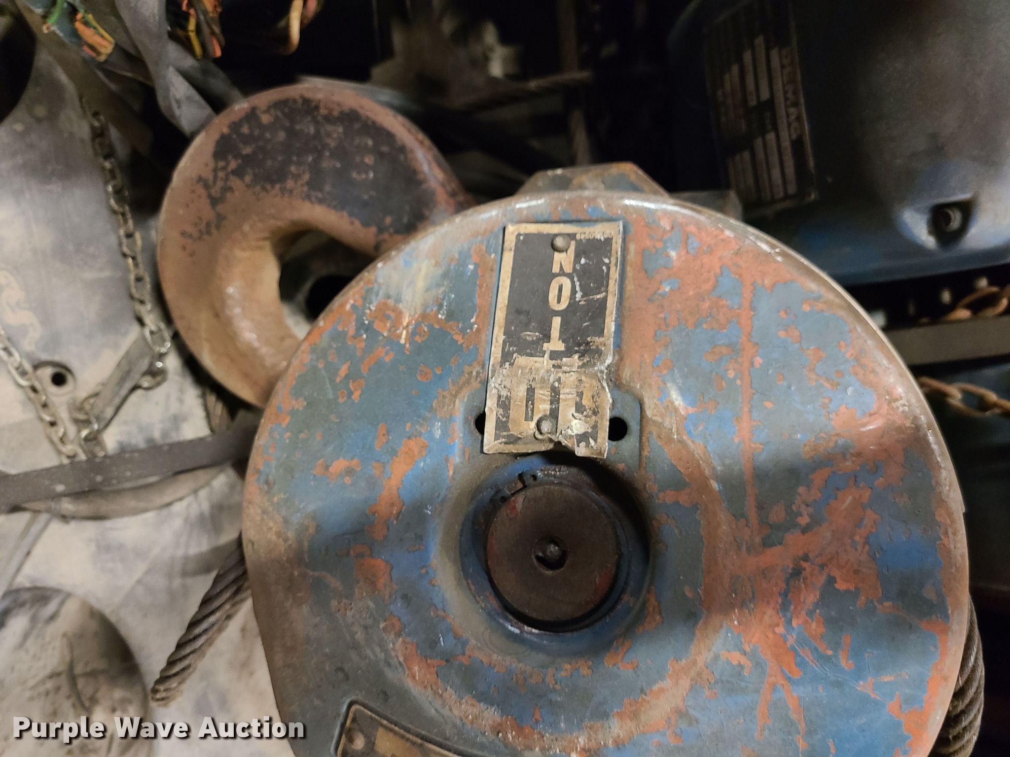 Demac hoist. Unit #: 862693, Capacity: 10 tons, Unknown operating condition. Warehouse One, Inc.. 7800 East 12th Street. Kansas City, MO 64126