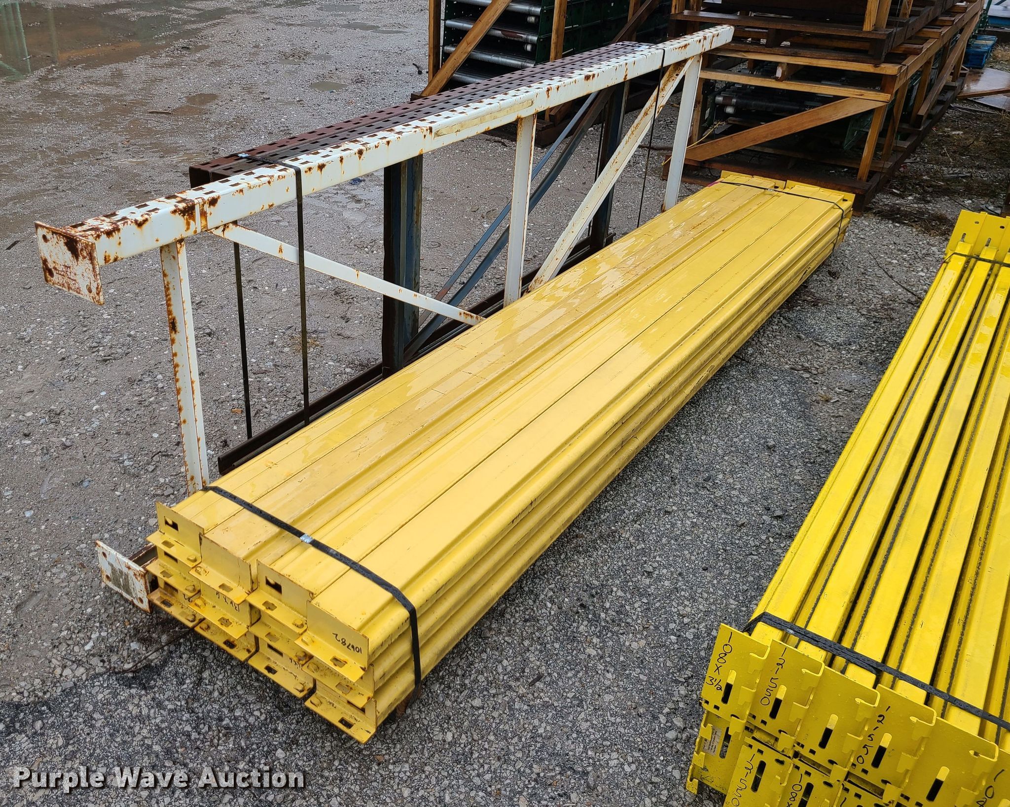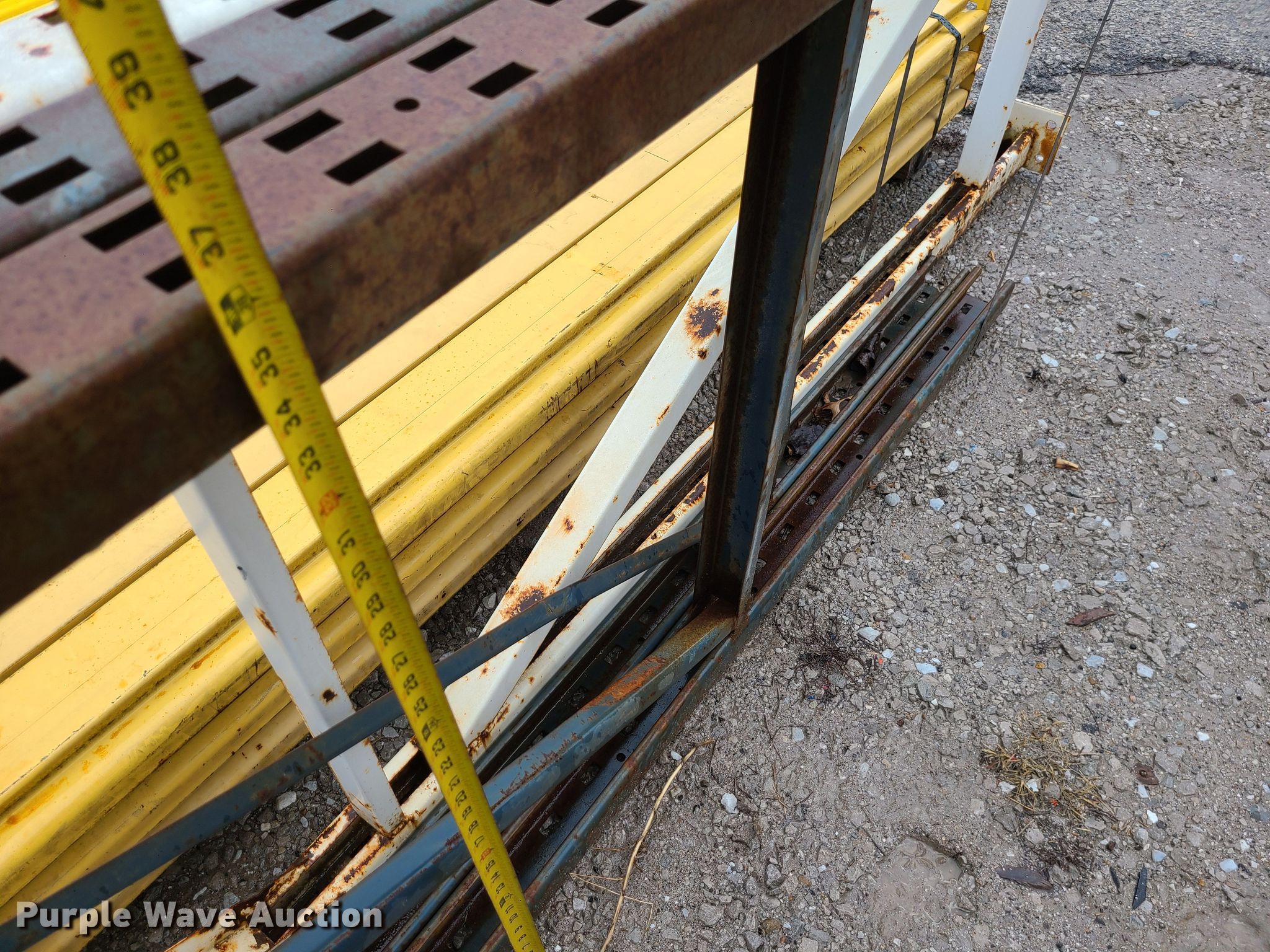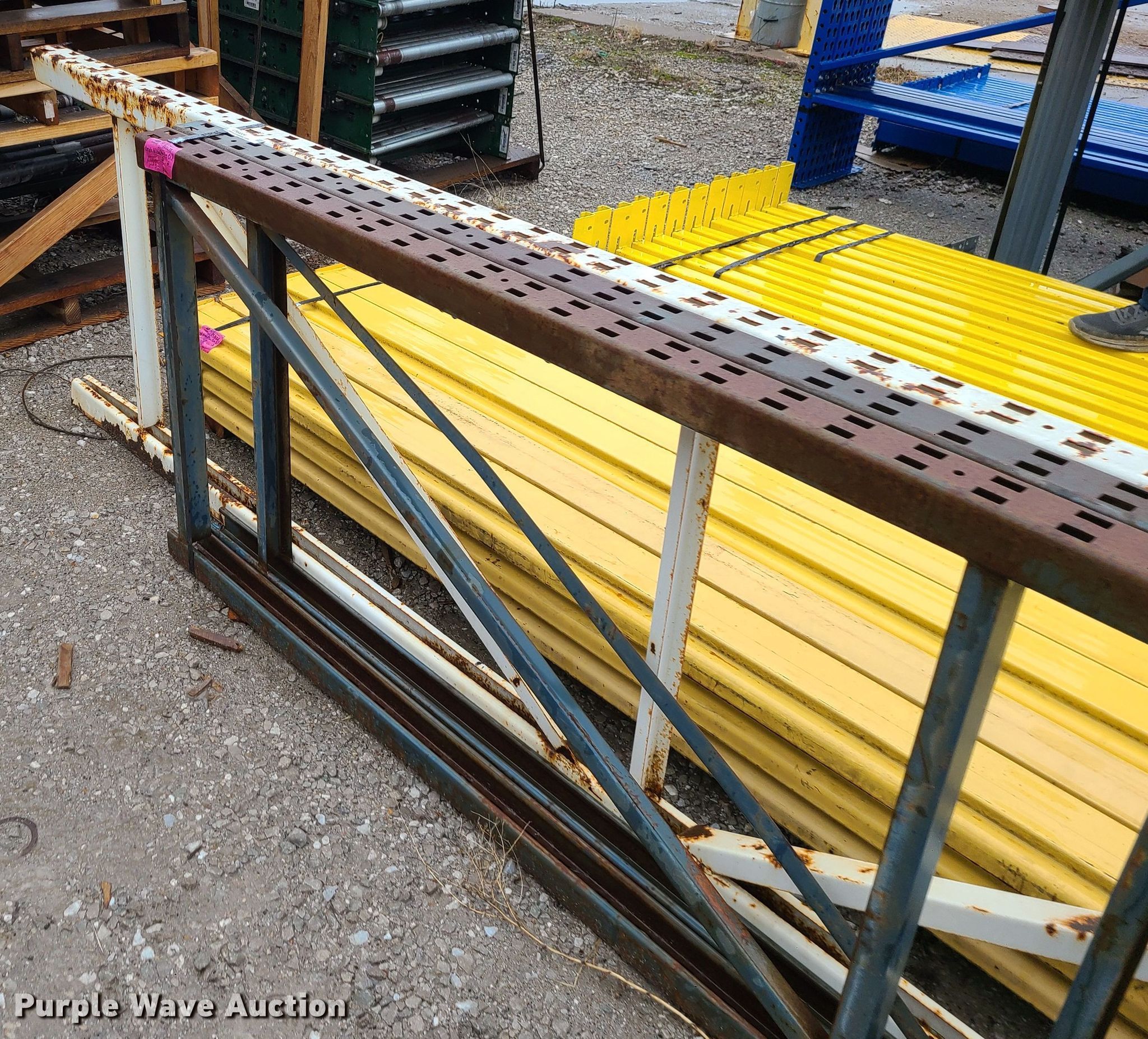 Purple Wave is selling a used Pallet Racking in Missouri. This item is a Pallet racking with the following: (12) 136" cross beams, (2) 36" x 8' uprights, 36" x 12' upright