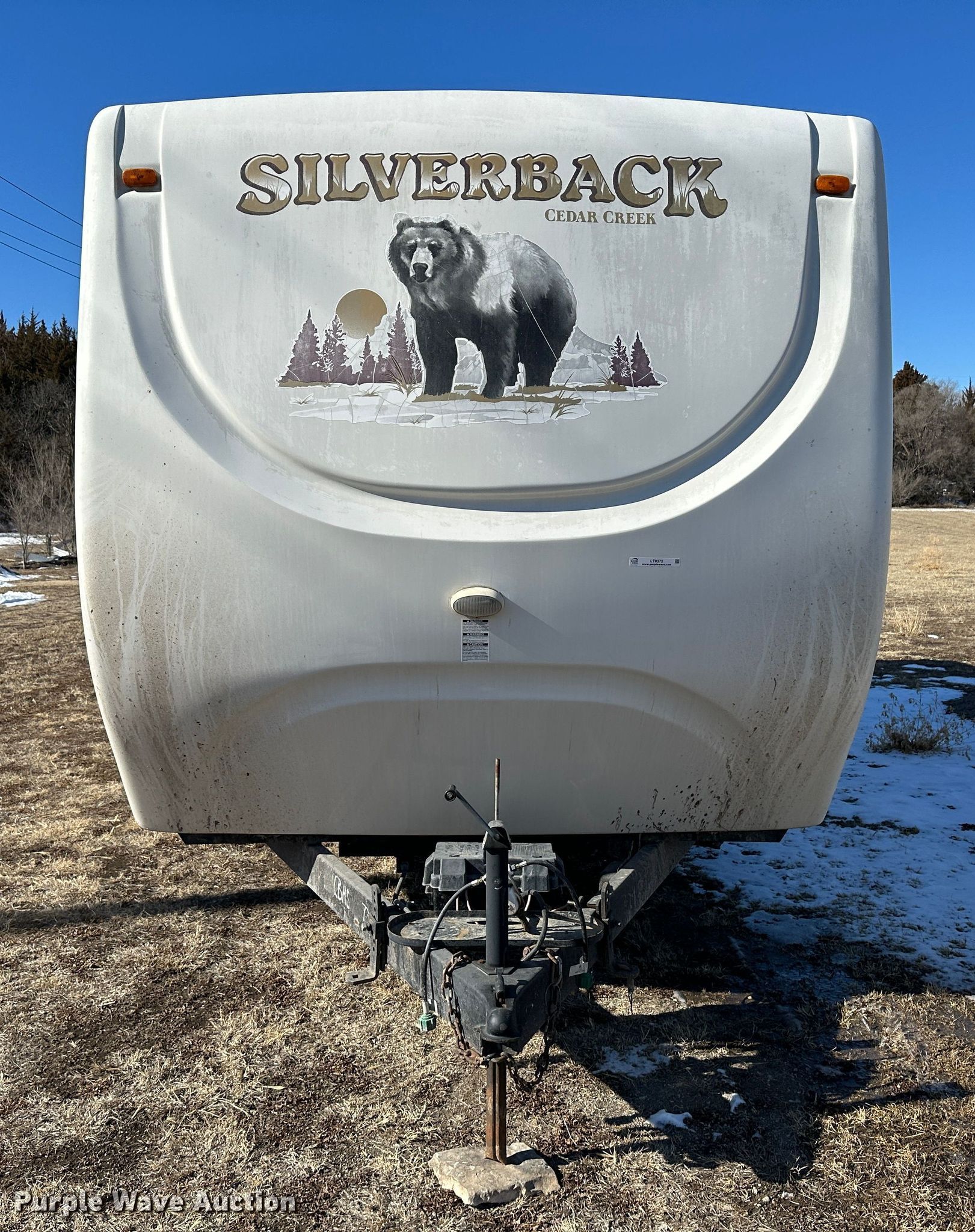 2007 Forest River Silverback camper. Camper length: 33', VIN: 4X4TCRG217P197319. Chassis Axles: Tandem, Suspension: Spring. Interior Kitchen: Sink, Refrigerator, Freezer, Microwave, Oven, Stove: Gas, Living room: Table, Couch, Bathroom, Beds: 3 Bed type: Queen, Sound system, Heater, AC units: 1. Features Slide outs: 1, Awnings: 1 Awning type: Manual, Ball hitch: 2 5/16". Tires Size: 235/85R16. Kansas title. Title distribution may be delayed up to 30 days from verification of funds. Guaranty State Bank. Glen Elder, KS 67446