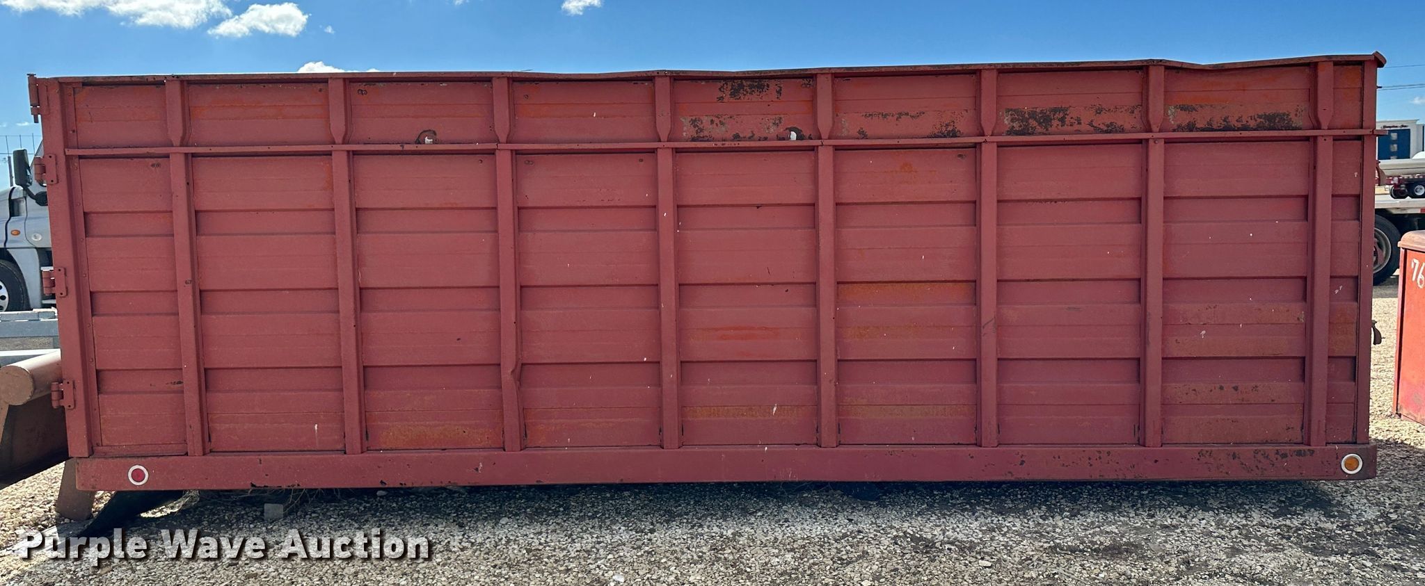 Purple Wave is selling a used Truck Part and Attach. in Kansas. This item is a Grain truck bed with the following: 18' 6" L x 94" W x 64" H