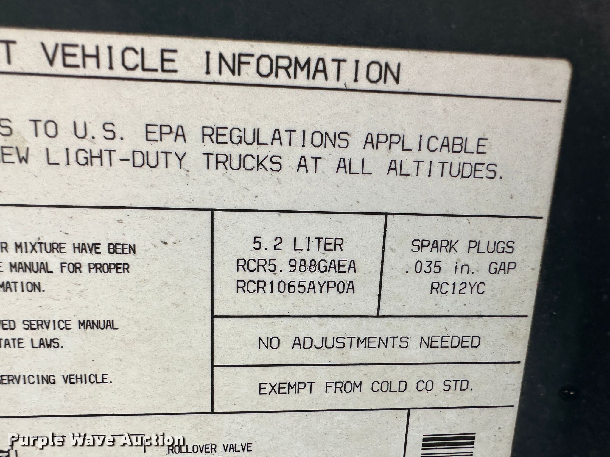 - Displacement: 5.2L V8 OHV