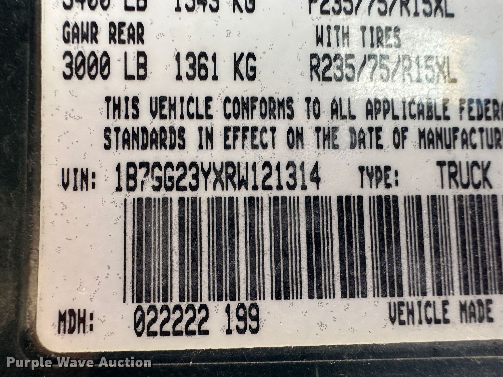 - VIN: 1B7GG23YXRW121314