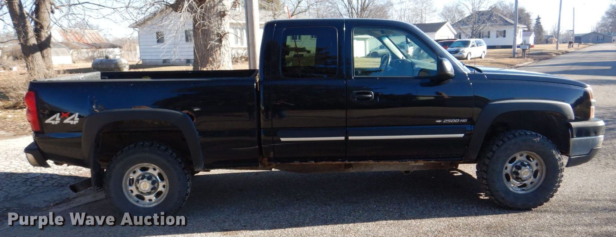 2004 Chevrolet Silverado 2500HD Ext. Cab pickup truck. Miles: 169,332 on odometer, VIN: 1GCHK29U34E261291. Engine Displacement: 6.0L V8 OHV, Cylinders: 8, Fuel type: Gas. Transmission Automatic, Four wheel drive. Interior AC, Heat, Seat: Heated, Power driver, Power windows, Power locks, Cruise control. Tires Front: 265/75R16. Notes Dash warning indicator: Check engine. Iowa title. Title distribution may be delayed up to 14 days from verification of funds. Michael Shipler. 600 Liberty St.. Batavia, IA 52533
