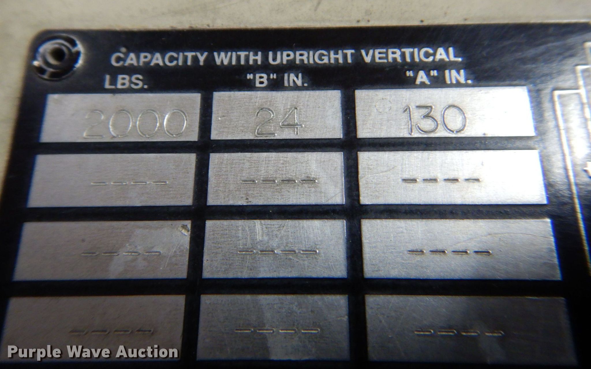 Crown 20MT forklift. Hours: 1,127 on meter, Serial: 1A149037. Electric Motor Phase: Single, Charger: Single phase. Features Maximum lift capacity: 2,000 lbs, Maximum lift height: 130", Mast stages: 2, Fork length: 48". Quality Equipment. 1415 W Washington St. Mount Pleasant, IA 52641