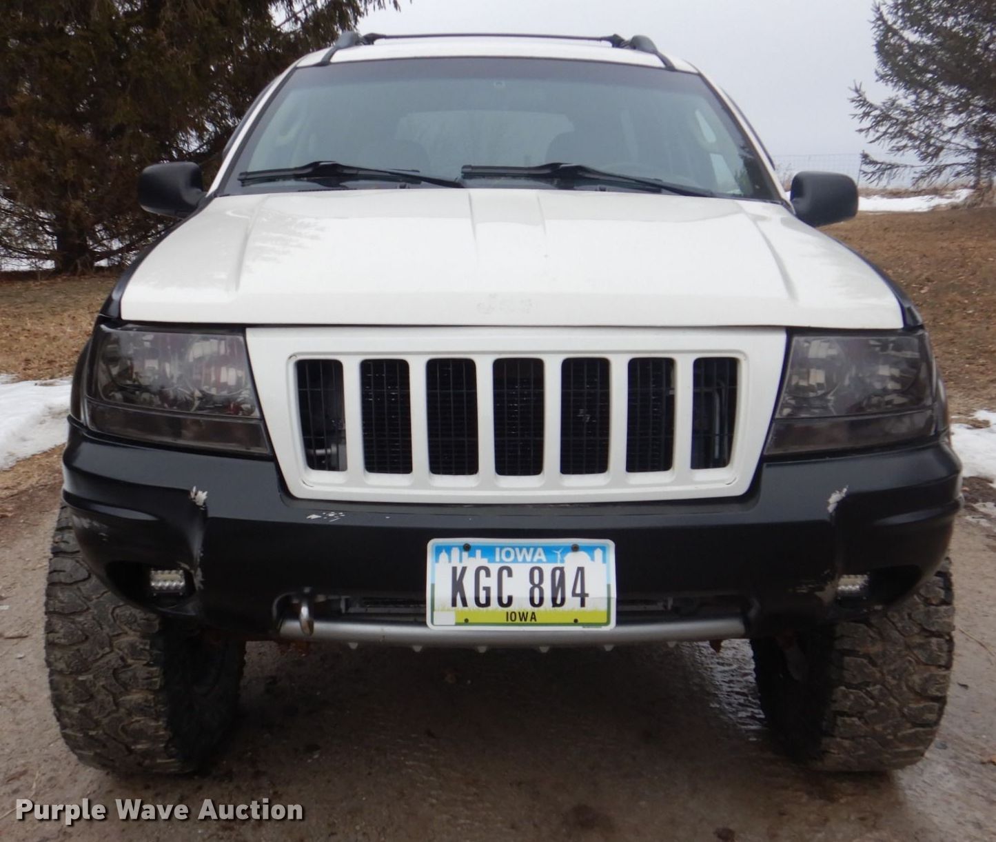 2004 Jeep Grand Cherokee SUV. Miles: 230,145 on odometer, VIN: 1J4GW48S94C279201. Engine Displacement: 4.0L L6 OHV, Cylinders: 6, Fuel type: Gas. Transmission Automatic, Four wheel drive. Interior AC, Heat, Seat: Power driver, Power passenger, Power windows, Power locks, Cruise control, Powered sunroof. Tires Size: 295/70R17. Notes Dead battery, Possible engine issues, noise, Non-operational power sunroof. Iowa title. Title distribution may be delayed up to 14 days from verification of funds. 3288 305th Street. Parnell, IA 52325