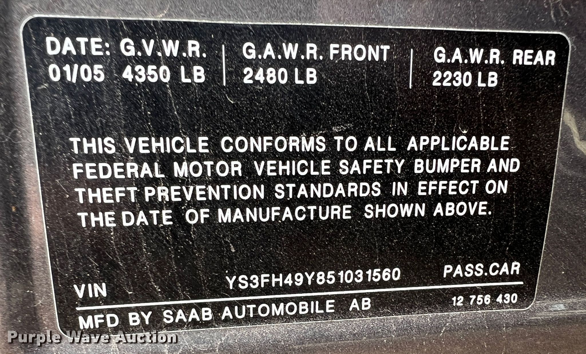 Purple Wave is selling a used Passenger Vehicle in Texas. This item is a 2005 Saab 9-3 Aero with the following: Miles: 136,142 on odometer, VIN: YS3FH49Y851031560